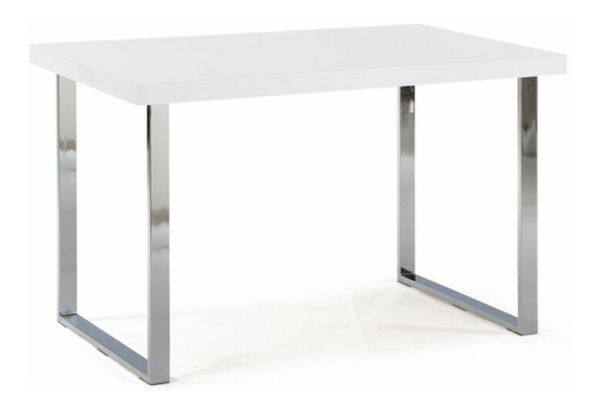 Designový stůl má pevnou podstavu. Použitý materiál je MDF bílá extra vysoký lesk HG a chrom. Tento stůl dodáváme v demontu.