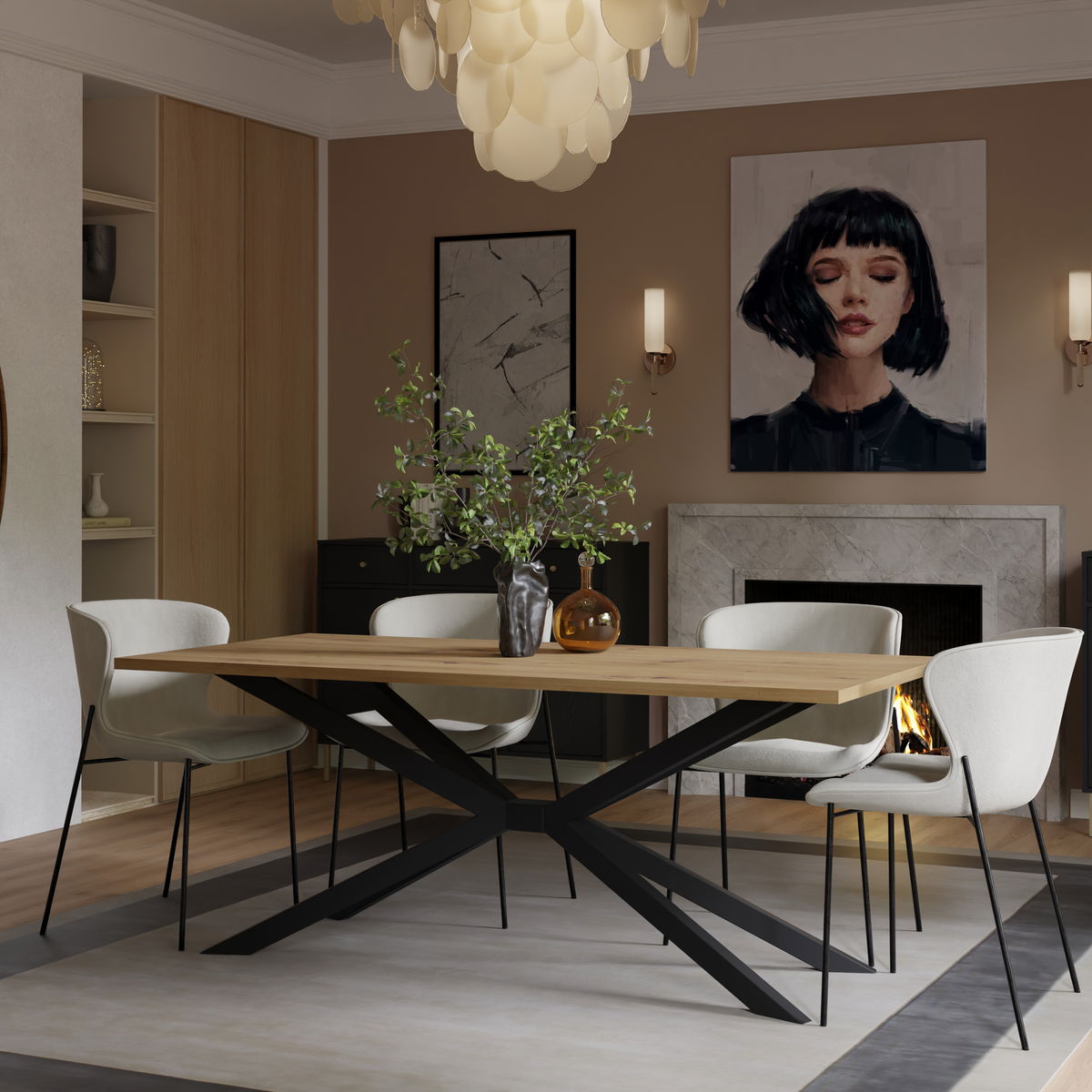 Tampos je návrhem pro ty, kteří si cení moderní elegance a solidního zpracování. Stůl je upevněn na odolném, matném černém kovovém rámu, který zaručuje nejen výjimečnou odolnost, ale také ucelený, expresivní tvar. Minimalistický design dokonale doplňuje současné trendy v interiéru – od loftů až po moderní obytné prostory. Deska stolu o tloušťce 28 mm dodává tomuto kusu solidní charakter a zároveň zajišťuje pohodlí při každodenním používání. Dostupné ve třech barevných variantách – dub artisan, dub lancelot a bílá – vám umožňují dokonale sladit stůl s vaším individuálním stylem interiéru. Deska stolu o rozměrech 1850 x 900 mm nabízí funkční prostor, zatímco výška stolu 750 mm zajišťuje ergonomický komfort při práci i setkáních. Tampos není jen stůl – je to vědomá volba, která dodává interiéru charakter a stává se jeho ústředním bodem.