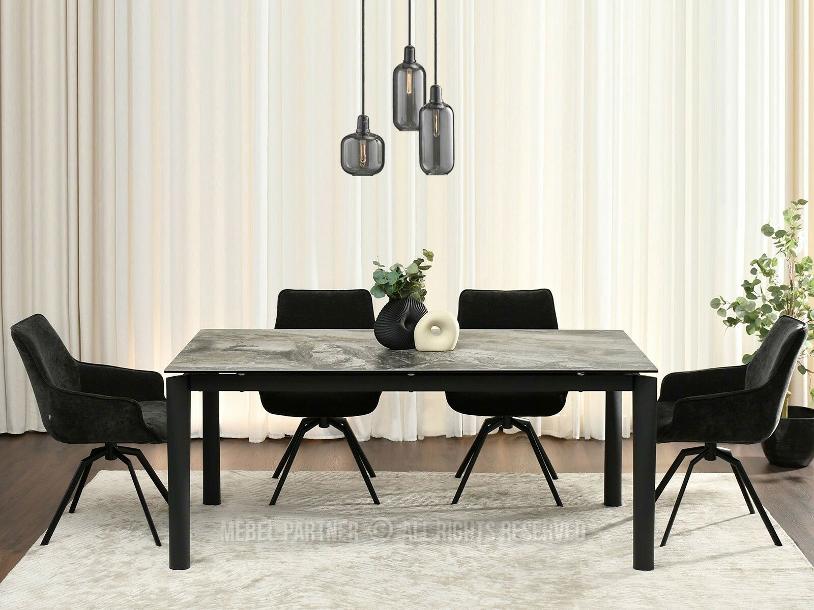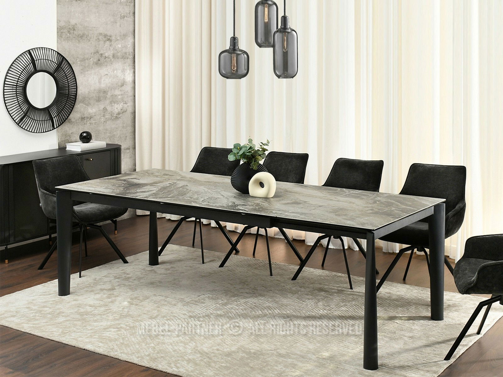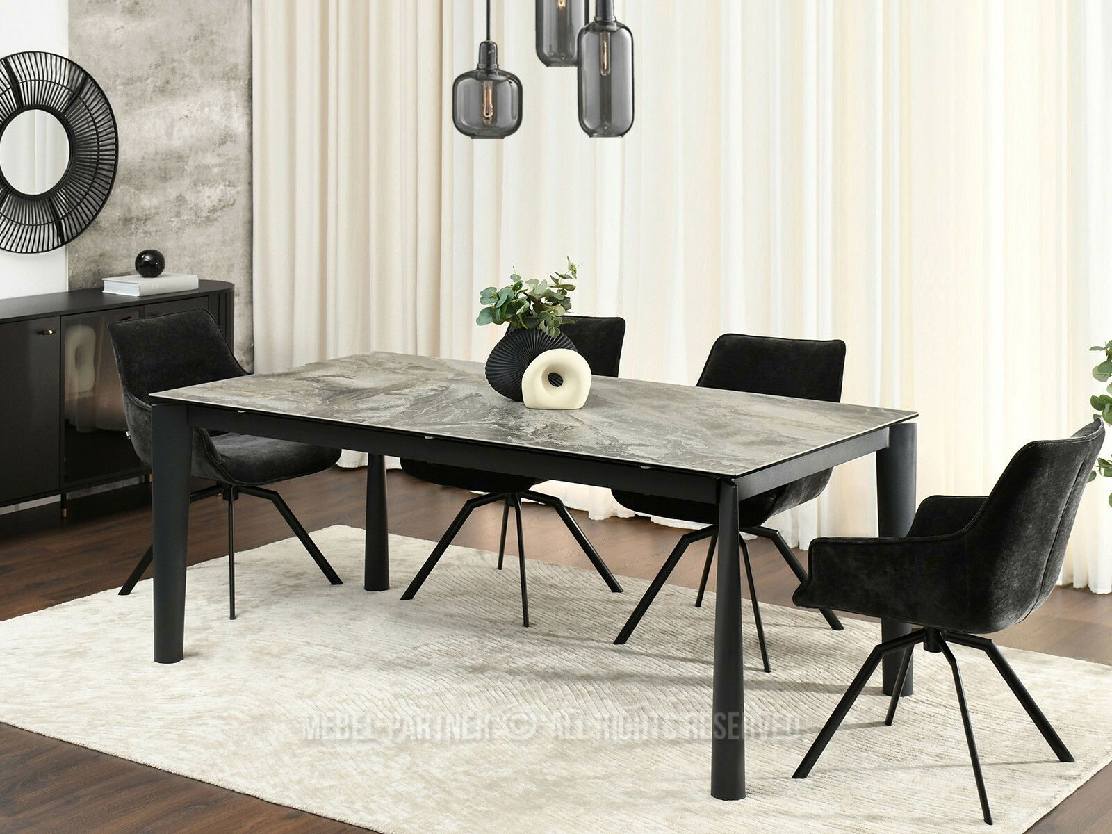 Jídelní stůl Telefonico (mramor + černá)