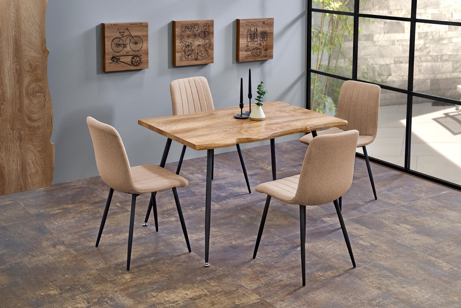 ZobrazitJídelní stůl Tentar je ideálním řešením pro vaše jídelní prostory. Tento stůl je vyroben z kvalitního dubového dřeva v přírodním odstínu a černé ocelové konstrukce. Má výšku 77 cm a hloubku 80 cm, což z něj činí dokonalou volbu pro 4 osoby. Deska stolu je vyrobena z MDF laminátu, který zaručuje odolnost vůči poškození a snadné čištění. Nohy jsou vyrobeny z práškově lakované oceli, což zajišťuje dlouhou životnost a odolnost vůči korozi. Tento elegantní stůl se skvěle hodí do každého moderního interiéru a bude sloužit jako dokonalý základ pro vaše rodinné a přátelské setkání.