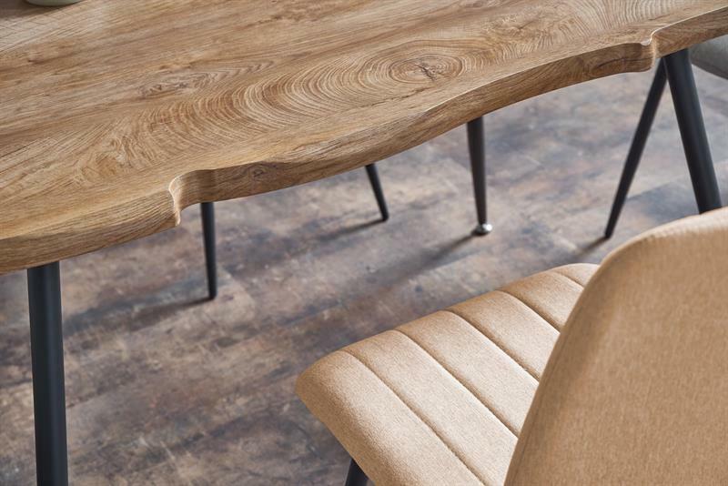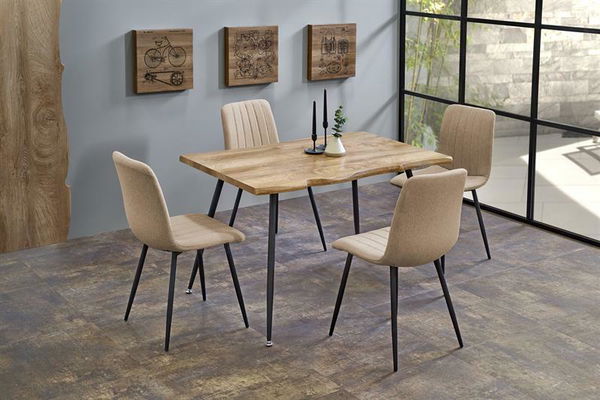 Jídelní stůl Tentar je ideálním řešením pro vaše jídelní prostory. Tento stůl je vyroben z kvalitního dubového dřeva v přírodním odstínu a černé ocelové konstrukce. Má výšku 77 cm a hloubku 80 cm, což z něj činí dokonalou volbu pro 4 osoby. Deska stolu je vyrobena z MDF laminátu, který zaručuje odolnost vůči poškození a snadné čištění. Nohy jsou vyrobeny z práškově lakované oceli, což zajišťuje dlouhou životnost a odolnost vůči korozi. Tento elegantní stůl se skvěle hodí do každého moderního interiéru a bude sloužit jako dokonalý základ pro vaše rodinné a přátelské setkání.