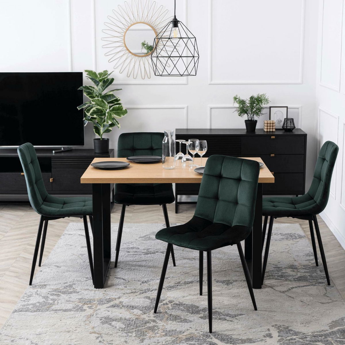 Jídelní stůl Varon (dub + černá) (pro 6 osob)