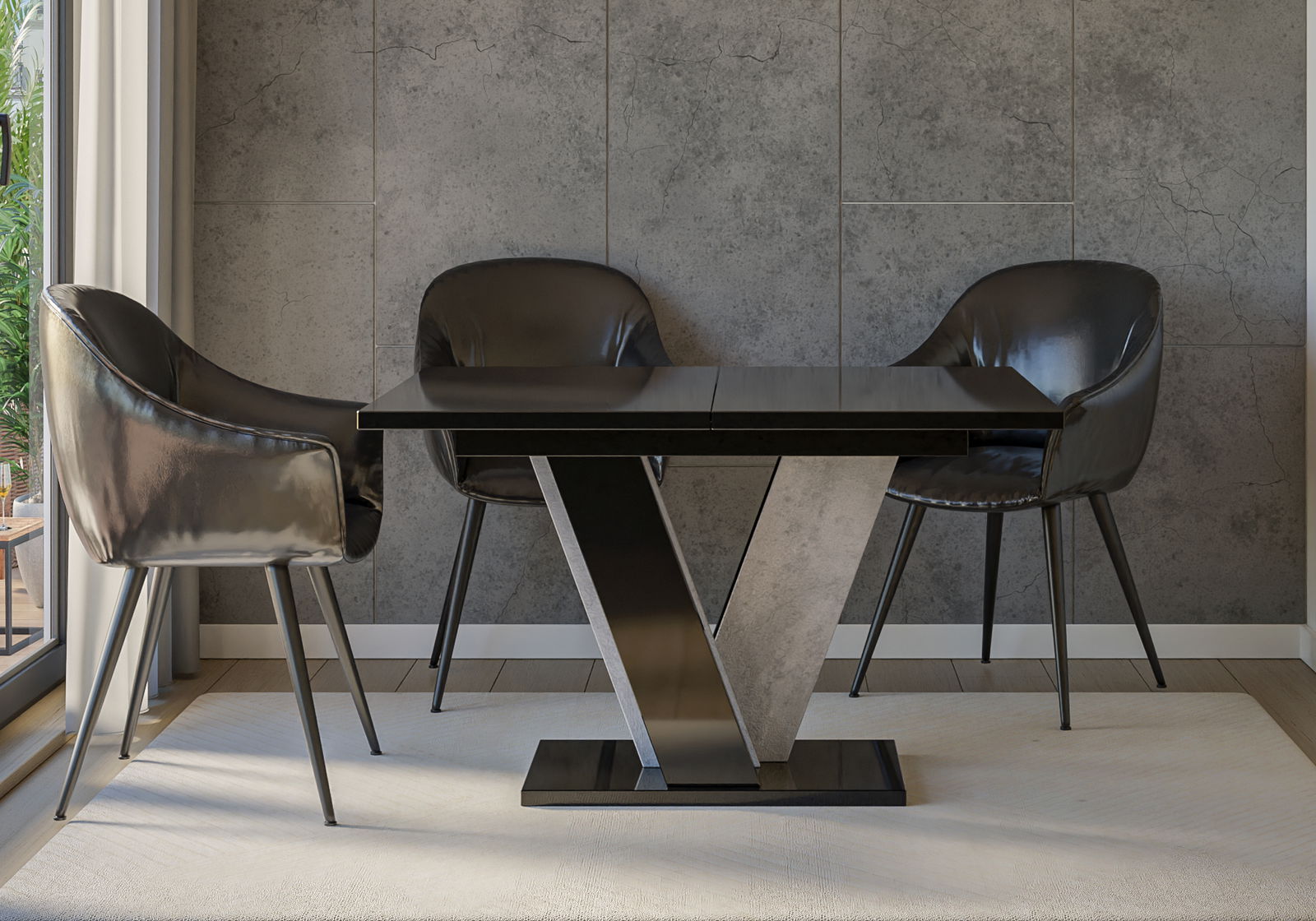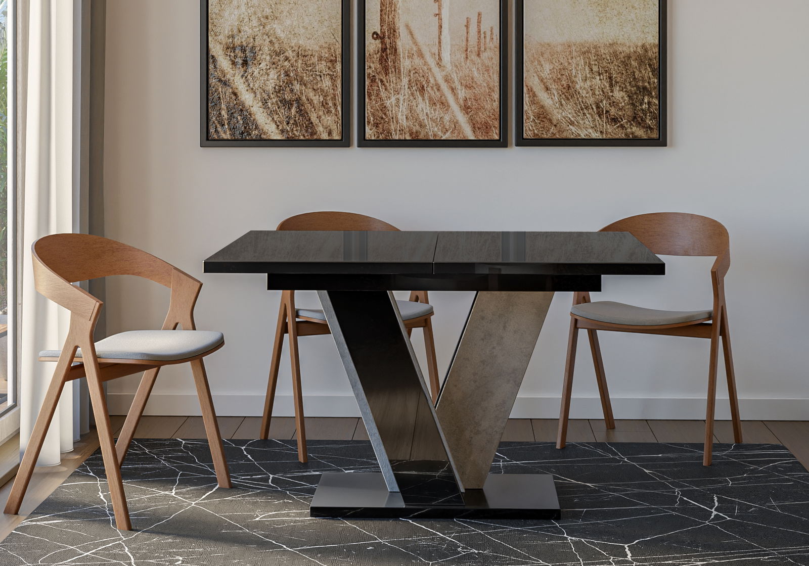 Jídelní stůl Venag (lesk černý + kámen) (pro 4 až 6 osob)