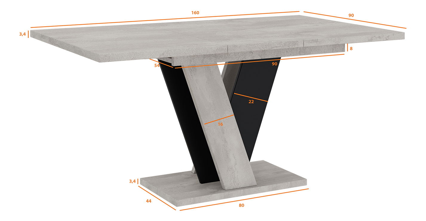 ZobrazitJídelní stůl Venag v kombinaci světle šedé a černé barvy s rozměrnými vlastnostmi 75x120-160x90 cm je ideálním řešením pro rodiny se 4 až 6 členy. Stůl je vyroben z kvalitního materiálu K350 Concrete Flow, který zaručuje stabilitu a dlouhou životnost produktu. Díky svým rozměrným vlastnostem poskytuje dostatek prostoru pro pohodlné jídlo a pohodlí při společenských akcích. Svým moderním designem a barevnou kombinací dokáže stůl odpovídat vkusu každého zákazníka.