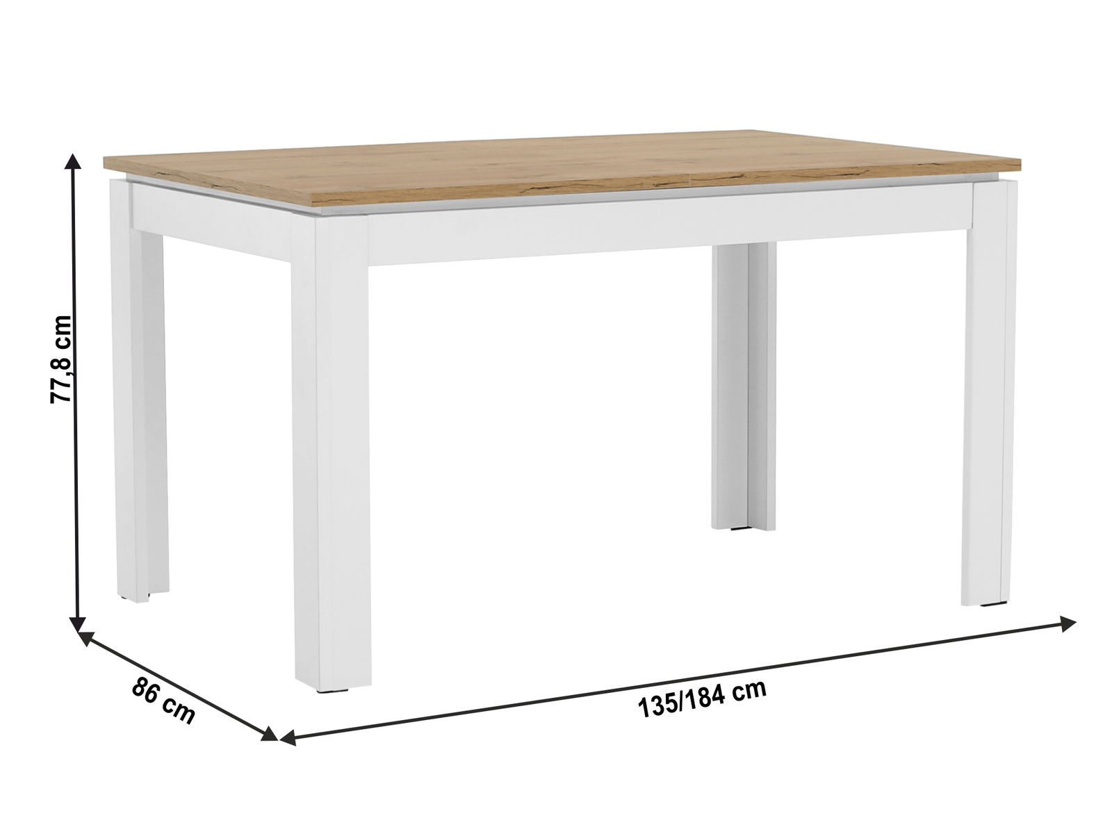 Jídelní stůl Vilgi (pro 4 až 6 osob) (bílá + dub wotan)