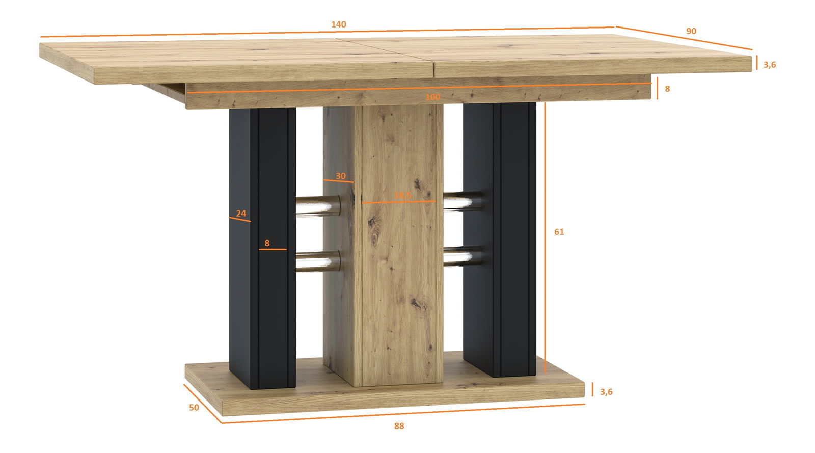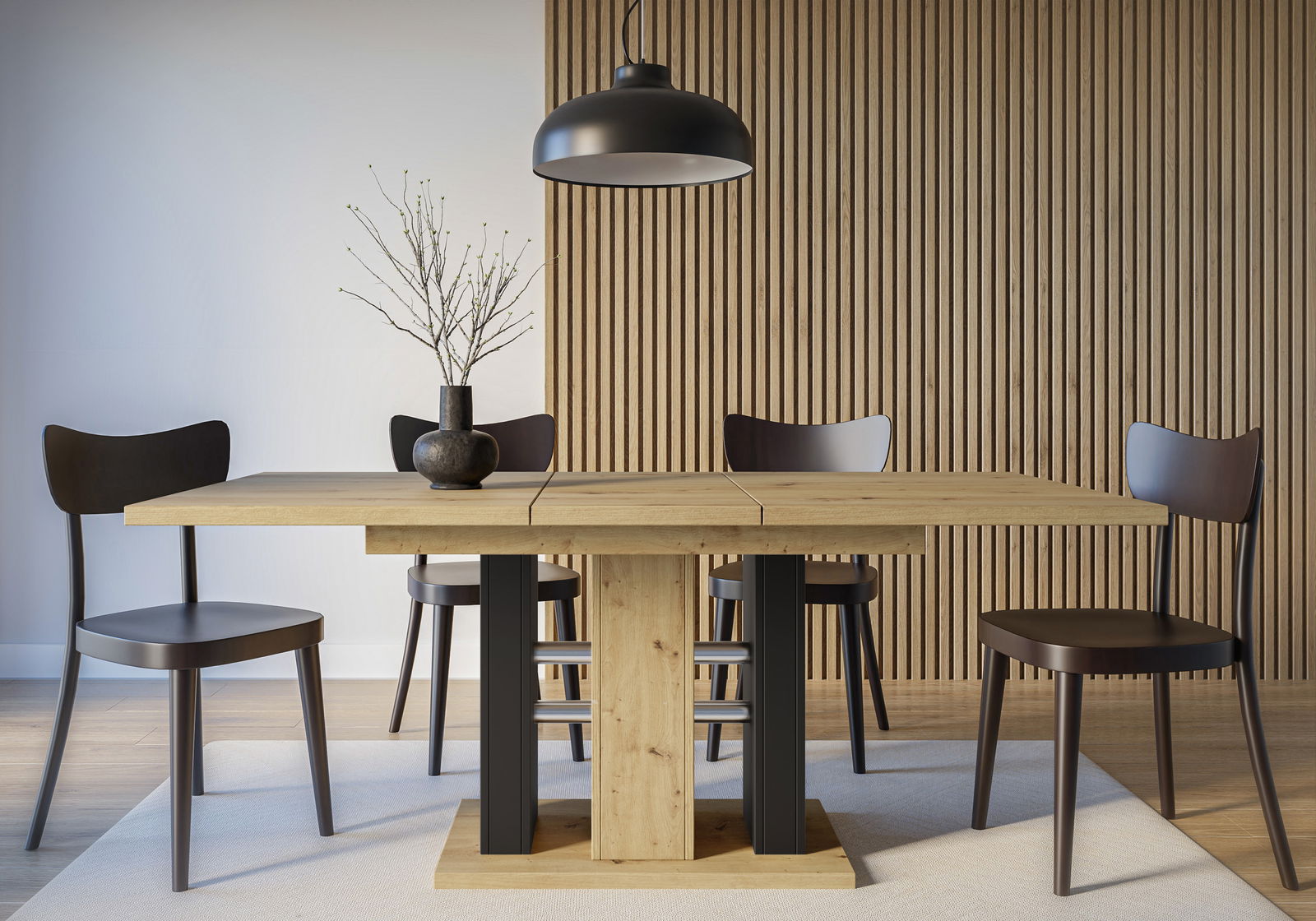 ZobrazitJídelní stůl Wamo (Artisan + Černá) je funkční a elegantní kus nábytku, který zkrášlí vaši jídelnu. Stůl pojme 6 až 8 osob a jeho výška 75 cm zaručuje pohodlné stolování. S rozměry 140-180 cm na šířku a 90 cm na hloubku poskytuje dostatek místa pro servírování a jídlo. Tento stůl je vyroben z kvalitního materiálu v kombinaci s černou barvou, které dokonale ladí s moderním interiérem. Jeho jedinečný design a precizní zpracování dělají z Jídelního stolu Wamo dokonalou volbu pro každého, kdo hledá vkusný a praktický kus nábytku pro svoji jídelnu.