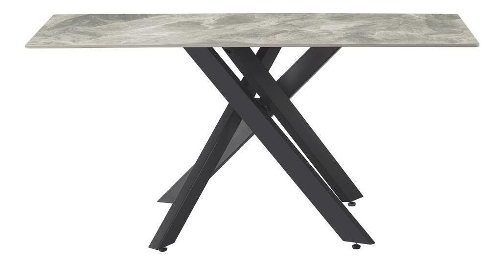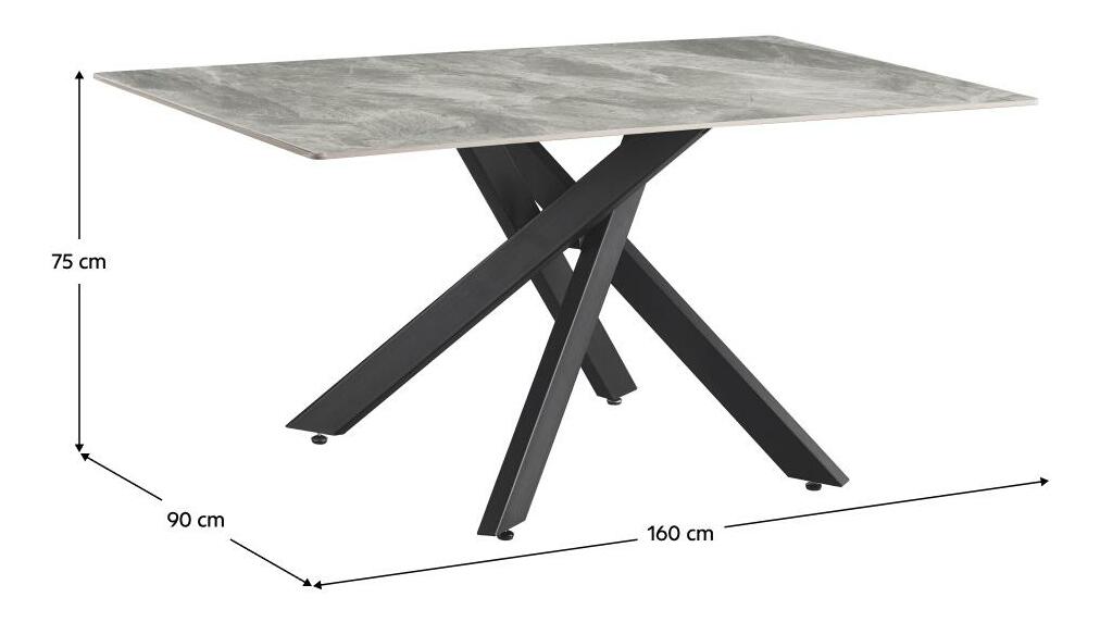 Tento elegantní jídelní stůl kombinuje keramiku a kov, čímž vytváří moderní a sofistikovaný vzhled. Vrchní deska, která je tlustá 1,2 cm, je zhotovena z kombinace keramiky a kovu, s nádherným mramorovým vzorem, který dodává stolu luxusní nádech. Konstrukce nohou je kovová, což zajišťuje pevnost a stabilitu stolu. Stůl má obdélníkový tvar a není rozkládací, což jej činí ideálním pro menší až středně velké prostory. S maximální nosností 25 kg je dostatečně robustní pro každodenní použití. Tento stůl je perfektní volbou pro ty, kdo hledají stylový a praktický nábytek s moderním designem a nádechem luxusu.