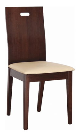 Luxus, který si můžete dovolit. Nádherná masivní dřevěná jídelní židle Abril z bukového dřeva vyrobena v provedení ořech se sedákem v provedení ekokůže béžová. Opěrka má navrchu oválný otvor pro úchop. Výška sezení je 48,5 cm.