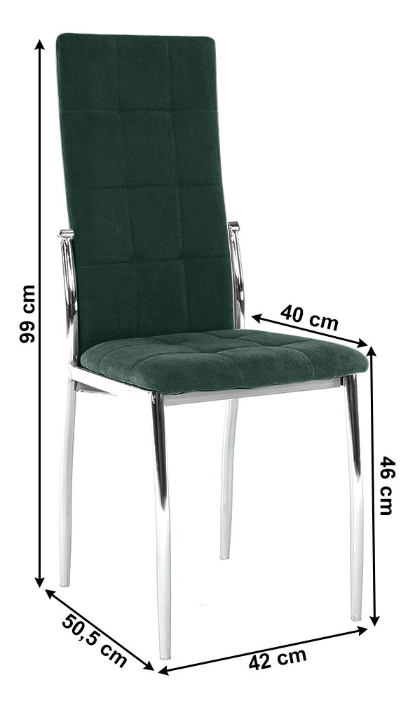 Jedinečná, pohodlná židle Adore v moderním designu, která vám zpříjemní společné posezení s rodinou. Pevná kovová konstrukce v chromovém provedení je doplněna měkkým sedátkem ve smaragdově látce. Stejně měkké je i opěradlo, které se pyšní dekorativním prošitím.