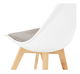 Designově zajímavá jídelní židle má bílou plastovou opěrku s ergonomickým tvarem a extra měkkým sezením v provedení šedá. Nohy jsou vyrobeny z kvalitního bukového dřeva.