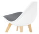 Designově zajímavá jídelní židle má bílou plastovou opěrku s ergonomickým tvarem a extra měkkým sezením v provedení šedá. Nohy jsou vyrobeny z kvalitního bukového dřeva.