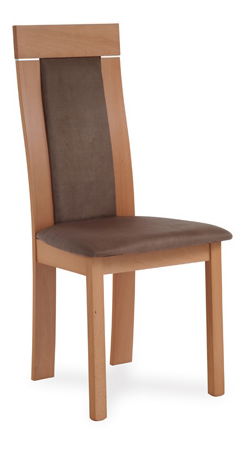 Dřevěná jídelní židle v provedení buk s čalouněným sedákem v hnědém odstínu.