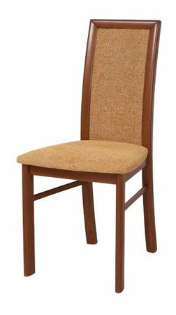 Židle se zajímavým a elegantním designem. Vysoké opěradlo má dřevěný rám po okrajích. Opěrka a sedadlo židle jsou čalouněné látkou. Židle je vhodným doplňkem do jídelen alebo kuchyní.