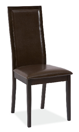 Velmi pěkná židle C-56 v tmavě-hnědém barevném provedení je potažena koženkou a dřevěný rám je také v tmavém barevném provedení. Židle je celá vyrobena ze dřeva.