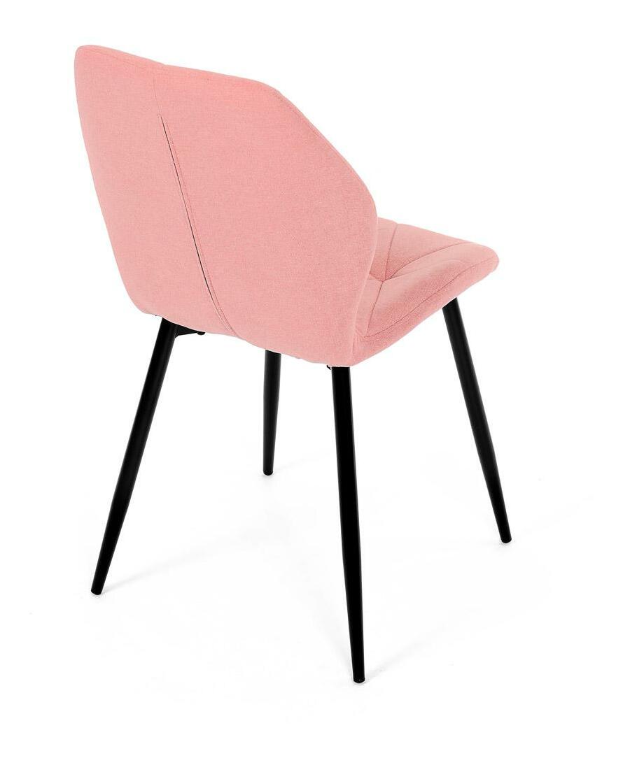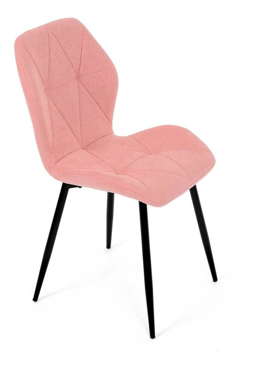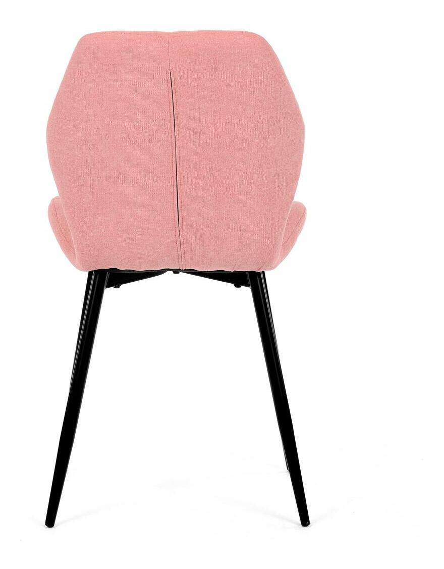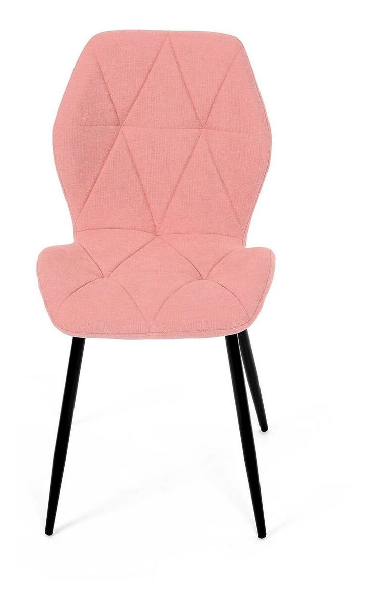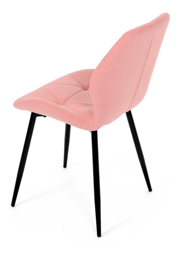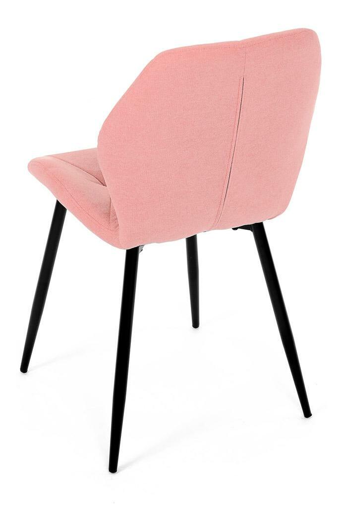 Tato moderní jídelní židle v jemné růžové barvě je skvělým doplňkem každého interiéru. Díky svému elegantnímu designu a pohodlnému čalounění je ideální volbou pro Vaši jídelnu, kuchyni nebo pracovní prostor. Židle je čalouněna kvalitní látkou, která je měkká na dotek a zároveň odolná proti opotřebení. Ergonomicky tvarovaný sedák a opěradlo s dekorativním prošíváním poskytují vysoký komfort i při delším sezení. Židle stojí na pevných kovových nohách v černém provedení, které zajišťují stabilitu a dlouhou životnost. Nohy jsou elegantně zkosené, což dodává židli moderní vzhled a zajišťuje pevnou stabilitu.