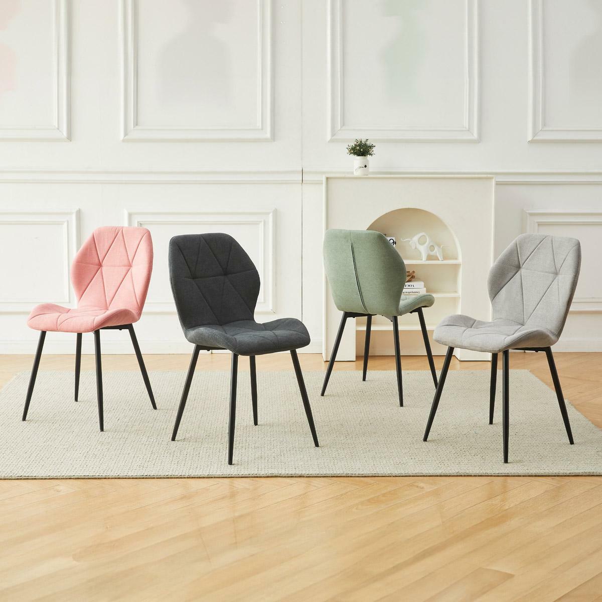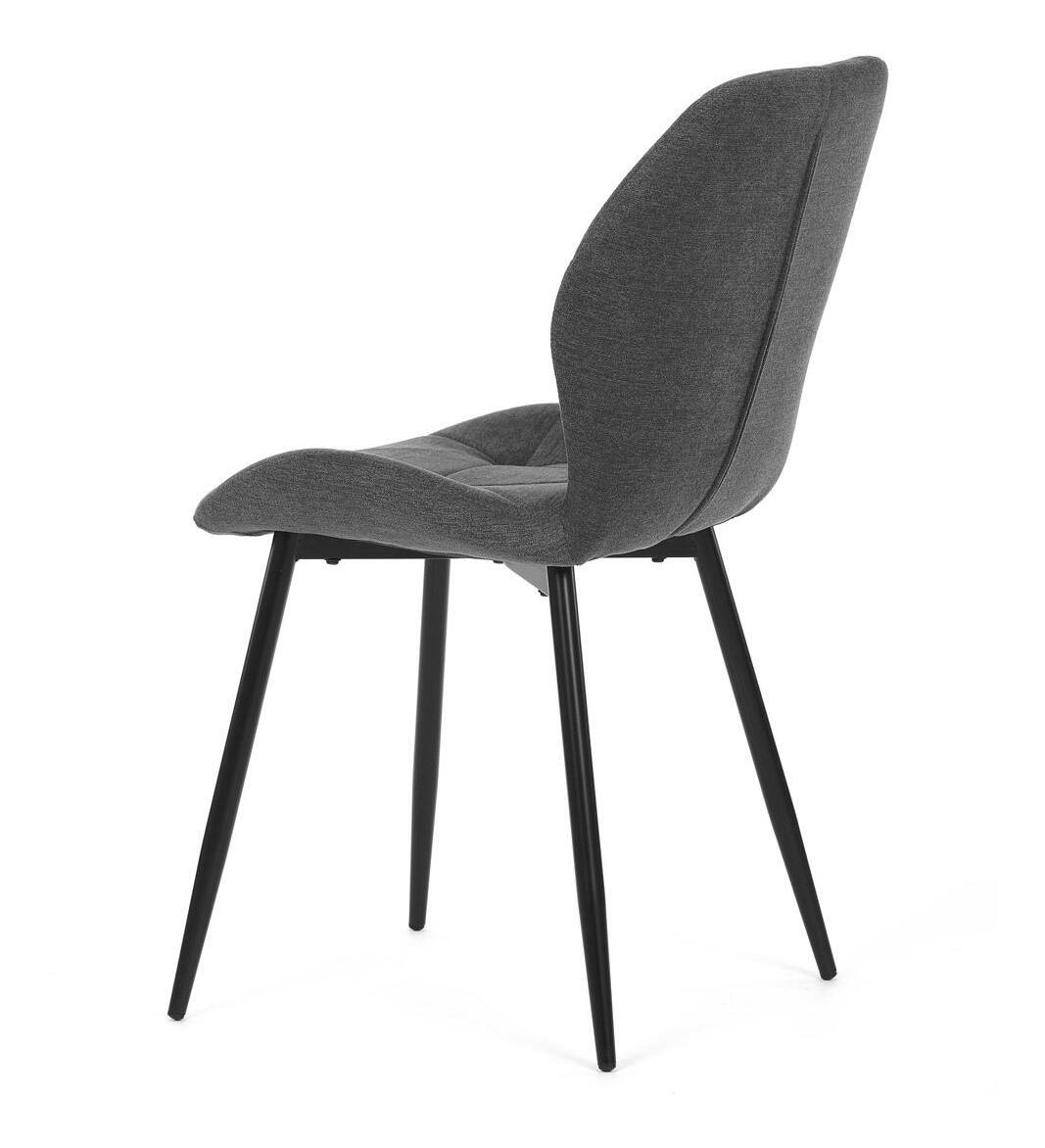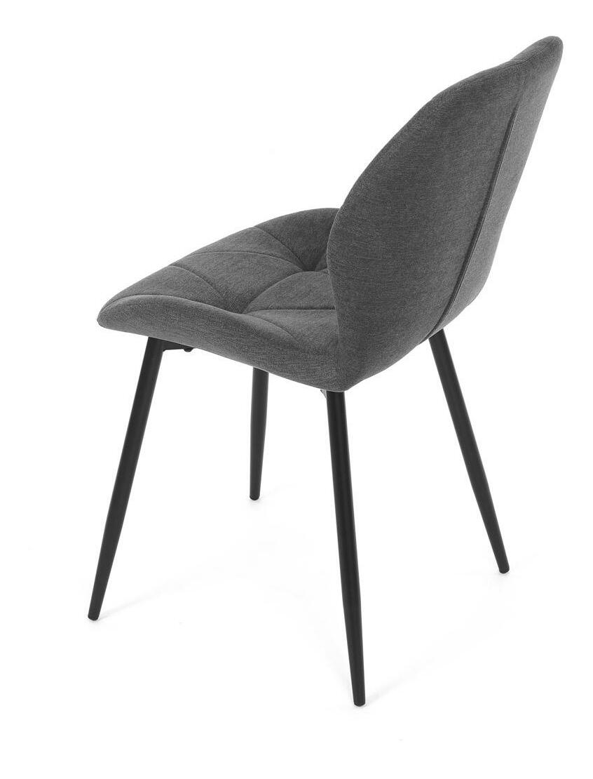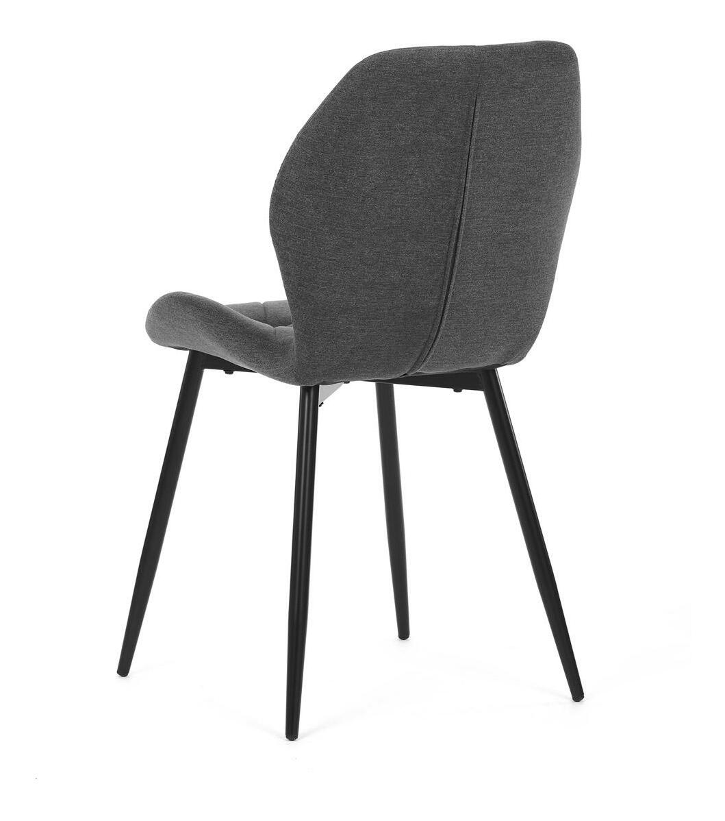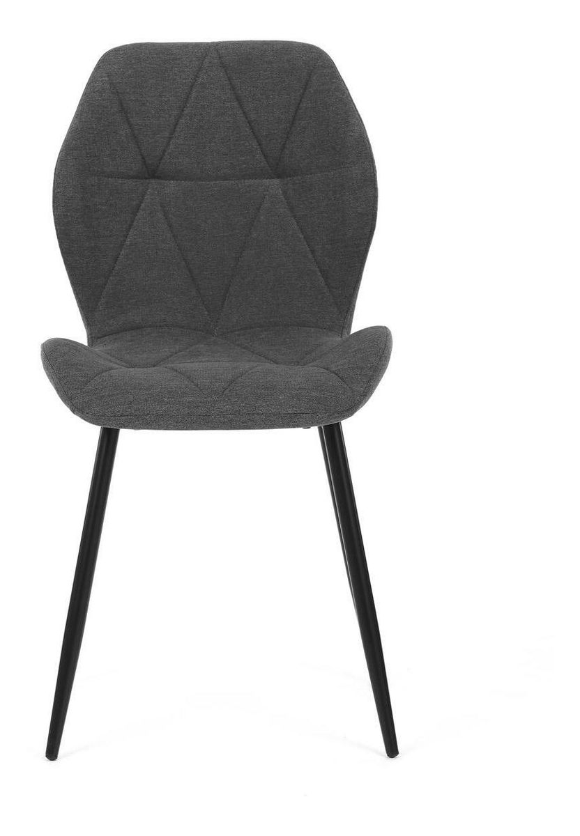 Tato moderní jídelní židle v tmavě šedé barvě je skvělým doplňkem každého interiéru. Díky svému elegantnímu designu a pohodlnému čalounění je ideální volbou pro Vaši jídelnu, kuchyni nebo pracovní prostor. Židle je čalouněna kvalitní tmavě šedou látkou, která je měkká na dotek a zároveň odolná proti opotřebení. Ergonomicky tvarovaný sedák a opěradlo s dekorativním prošíváním poskytují vysoký komfort i při delším sezení. Židle stojí na pevných kovových nohách v černém provedení, které zajišťují stabilitu a dlouhou životnost. Nohy jsou elegantně zkosené, což dodává židli moderní vzhled a zajišťuje pevnou stabilitu.