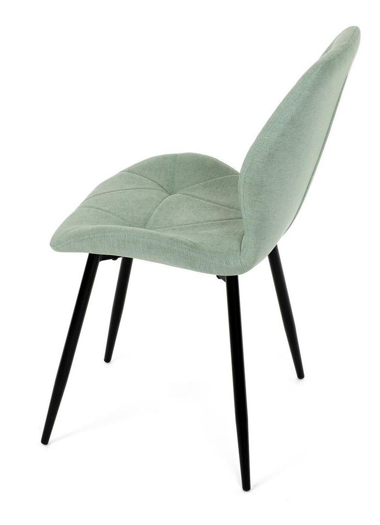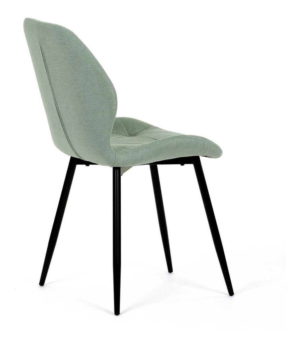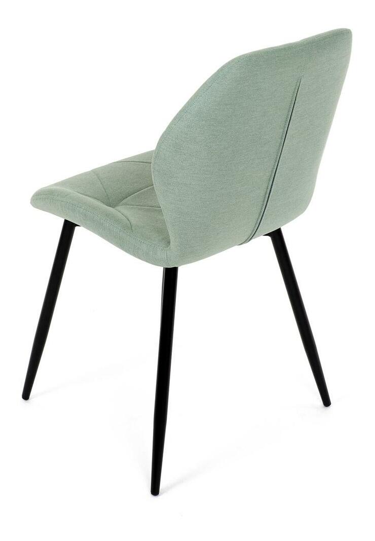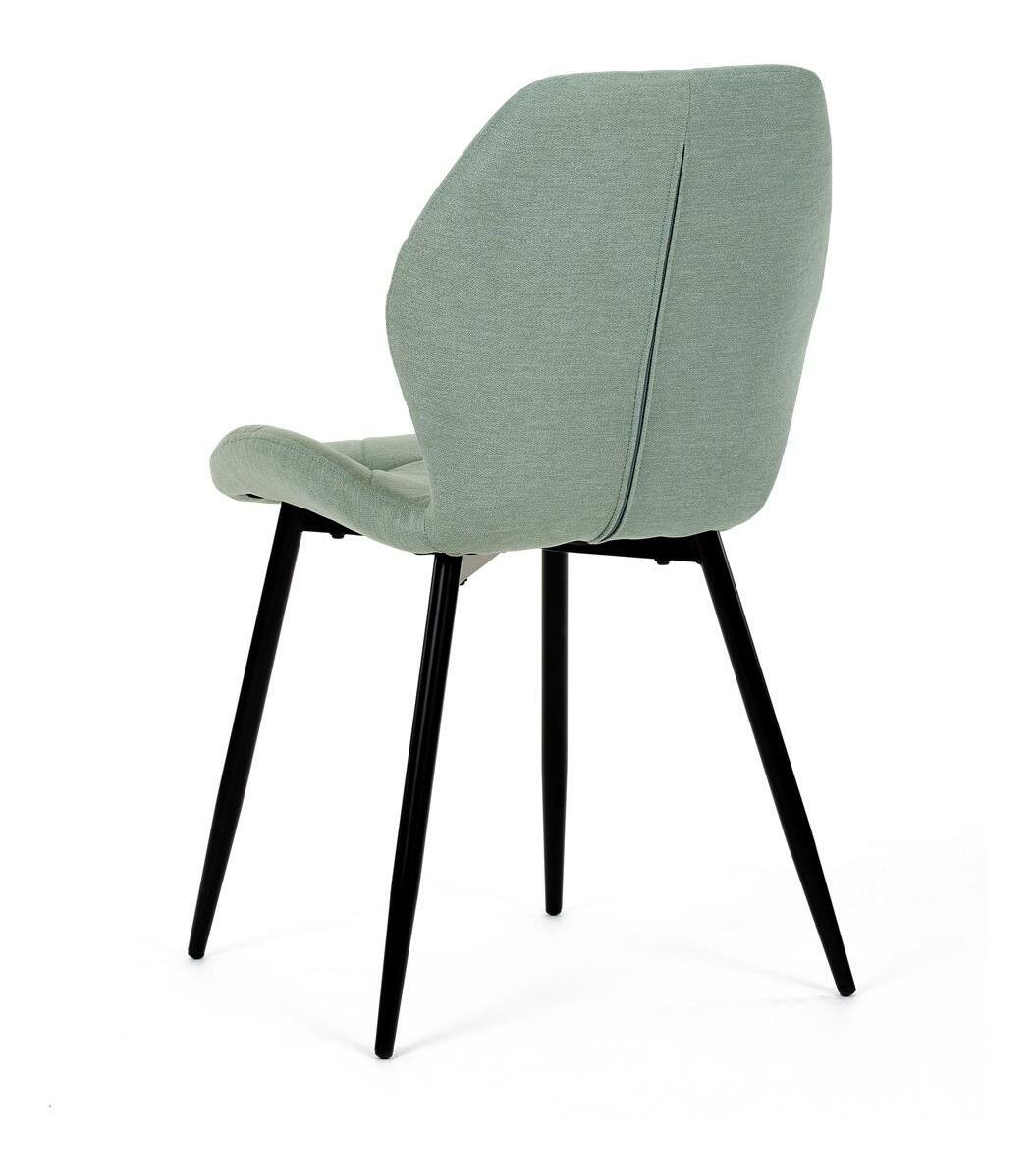 Tato moderní jídelní židle v jemně zelené barvě je skvělým doplňkem každého interiéru. Díky svému elegantnímu designu a pohodlnému čalounění je ideální volbou pro Vaši jídelnu, kuchyni nebo pracovní prostor. Židle je čalouněna kvalitní látkou, která je měkká na dotek a zároveň odolná proti opotřebení. Ergonomicky tvarovaný sedák a opěradlo s dekorativním prošíváním poskytují vysoký komfort i při delším sezení. Židle stojí na pevných kovových nohách v černém provedení, které zajišťují stabilitu a dlouhou životnost. Nohy jsou elegantně zkosené, což dodává židli moderní vzhled a zajišťuje pevnou stabilitu.