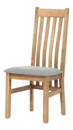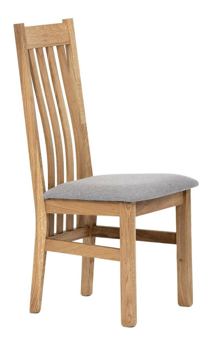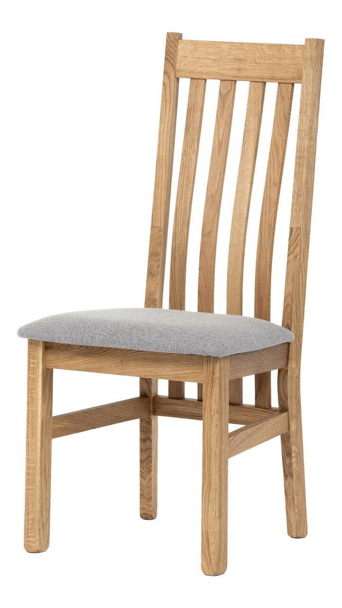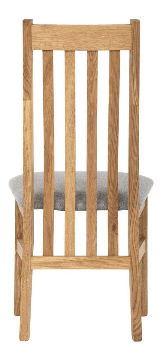 Dřevěná jídelní židle z masivního dubového dřeva je demonstrací dokonalé řemeslné práce. Zaujme nejen svým rustikálním stylem, ale také perfektním zpracováním. Styl vychází z minimalistického severského designu, v temnějším nádechu přírodního odstínu. Tato barevnost skvěle vykreslí léta dubu a podtrhne její provedení. Čisté linie a vysoce kvalitní řemeslné zpracování dřevěného masivu nastavuje okouzlující akcenty a podtrhuje útulnou atmosféru v interiéru. Tato židle Vás zve nejen na odpočinek, ale rozjímání s rodinou i přáteli, kde oceníte ergonomicky tvarované vzpěry opěradla, kopírující zakřivení páteře. Pohodlný sedák je potažen odolnou látkou z polyesterových vláken, ve stříbřitém barevném odstínu. Polstrování je kvalitní PU pěnou. O kvalitě potahové látky Vás jistě přesvědčí její parametry - gramáž 340 g/m2, martindale naprosto skvělých 80 cyklů a barevná stálost na světle je na stupni 5. Povrchová úprava dubové masivní konstrukce je tvrdovoskovým olejem, speciálně určeným pro dlouhodobé ošetření dřeva. Velkým bonusem této židle je její dodání v kompletně smontovaném stavu a se spoji lepenými (!). Tím odpadá nejen nepříjemné studium montážního návodu a následně také montáž, ale židle bude stále pevná a nehrozí, že budete muset v pravidelných cyklech utahovat povolené šrouby. Další pevnostní prvek slouží také trnože mezi nohama. Toto vše činí ze židle pevný a velmi trvanlivý celek s nosností až 140 kg. Elegantním prvkem bude v klasicky laděných interiérech společně s masivním dubovým stolem, ale také kombinace se stolem ve stylu Loft bude velmi zajímavá a nepřehlédnutelná.
