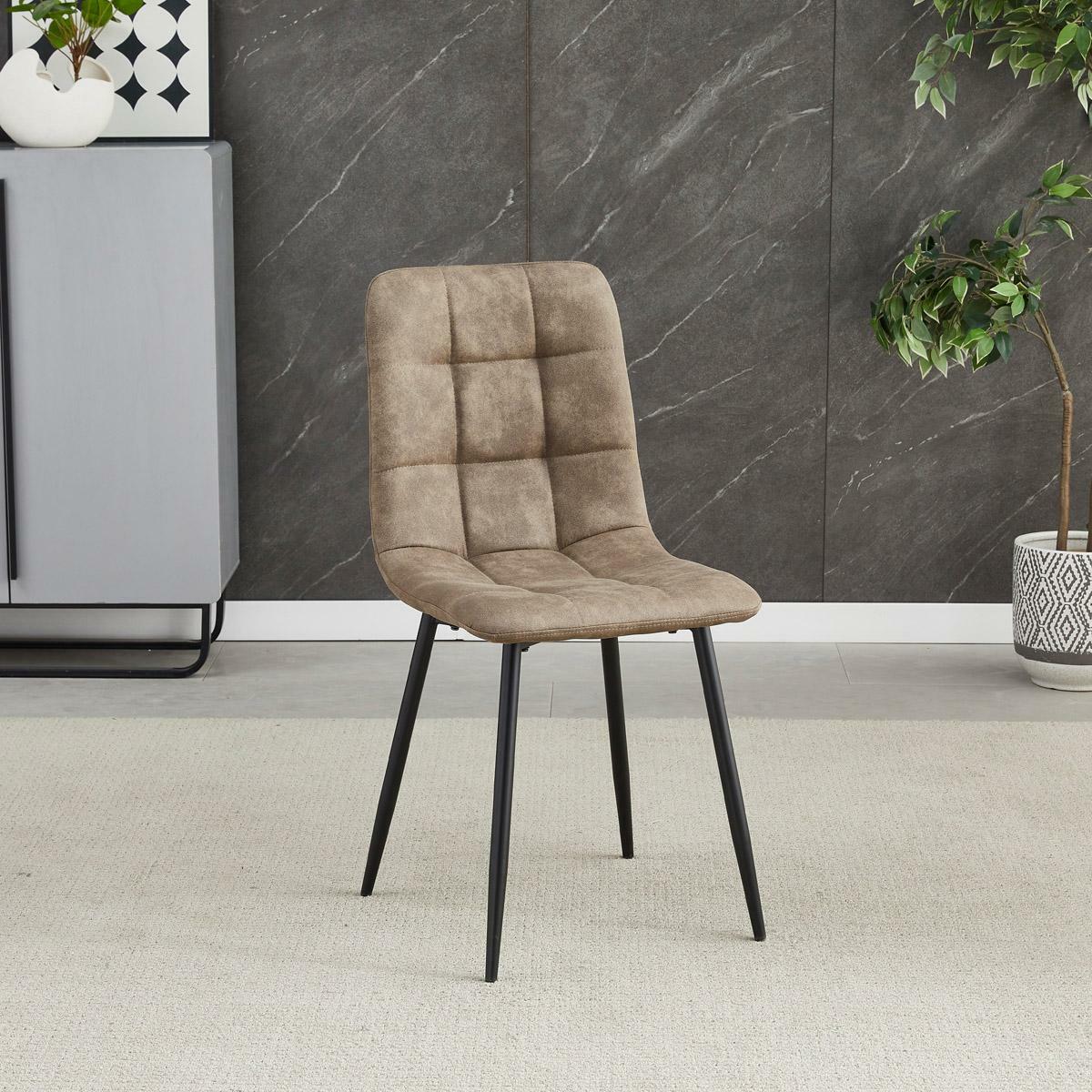 Jídelní židle v moderním industriálním stylu je skvělou volbou pro každou jídelnu. Potah z látky vintage v béžovém odstínu dodává nábytku osobitý charakter, zatímco elegantní čtvercové prošívání podtrhuje její vzhled. Černé kovové nohy poskytují stabilitu a ladí s minimalistickým designem. Komfort při sezení zajišťuje měkké polstrování z PU pěny, díky kterému je židle ideální jak pro každodenní používání, tak pro slavnostní chvíle.