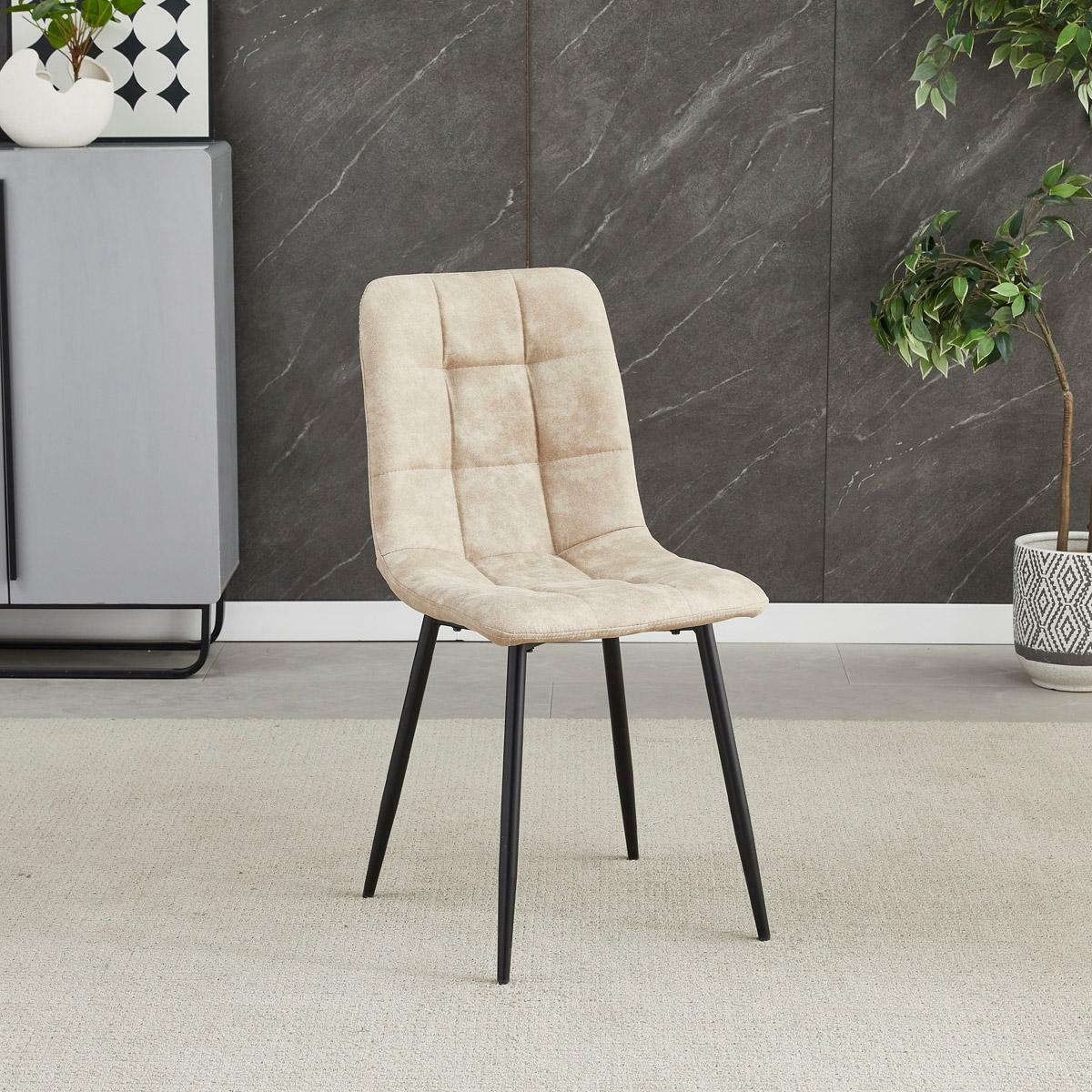 ZobrazitJídelní židle v moderním industriálním stylu je skvělou volbou pro každou jídelnu. Potah z látky vintage v krémovém odstínu dodává nábytku osobitý charakter, zatímco elegantní čtvercové prošívání podtrhuje její vzhled. Černé kovové nohy poskytují stabilitu a ladí s minimalistickým designem. Komfort při sezení zajišťuje měkké polstrování z PU pěny, díky kterému je židle ideální jak pro každodenní používání, tak pro slavnostní chvíle.