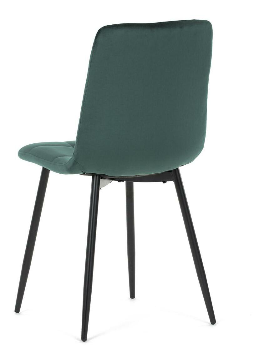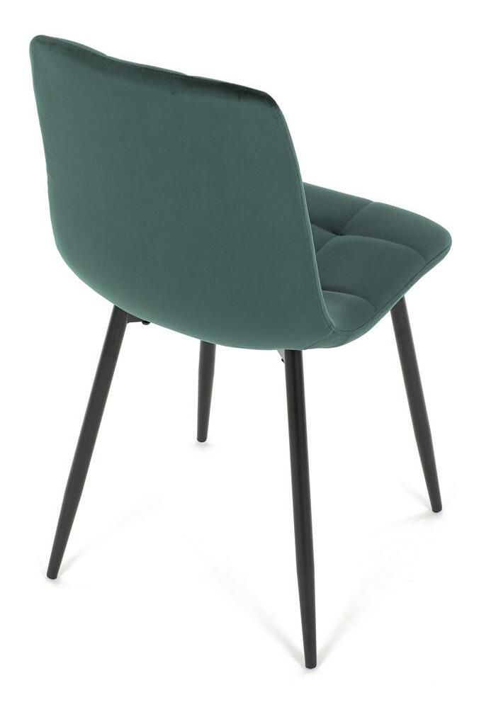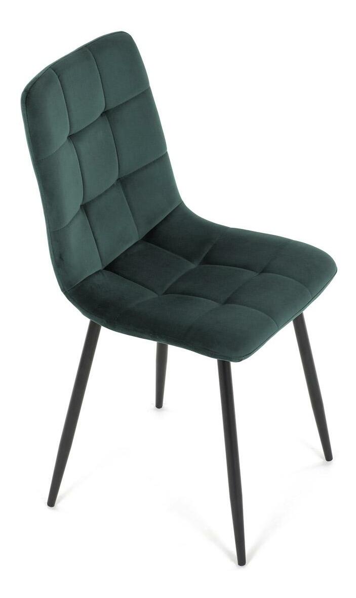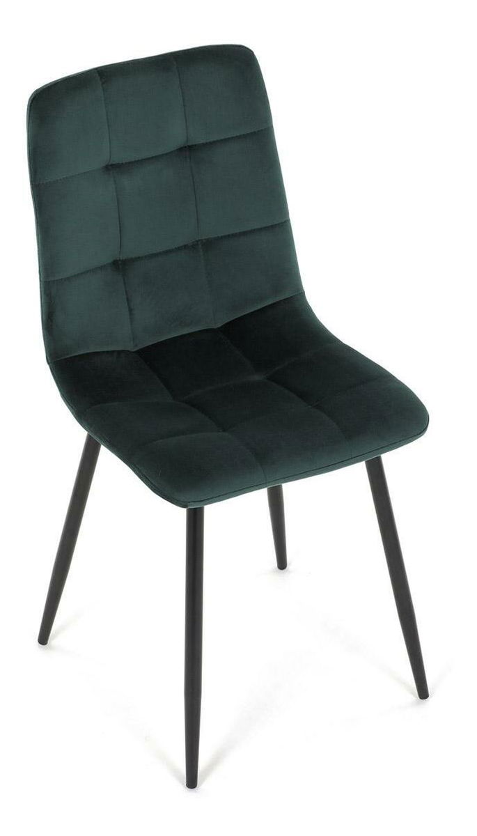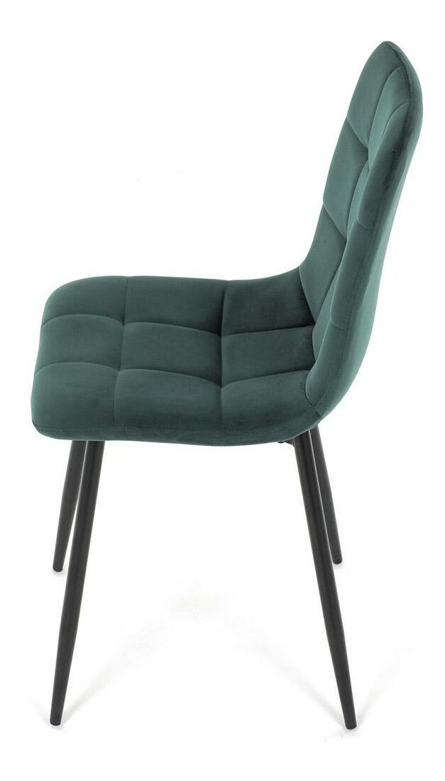 Jídelní židle v elegantní zelené barvě je ideální volbou pro stylové interiéry. Čalounění ze sametové látky působí luxusně a zajišťuje pohodlí při sezení. Decentní prošívání zdůrazňuje precizní zpracování, zatímco stabilní černé kovové nohy podtrhují minimalistický vzhled. posezení. Tato židle přináší harmonii mezi funkčností a moderním designem, který oživí každou jídelnu.