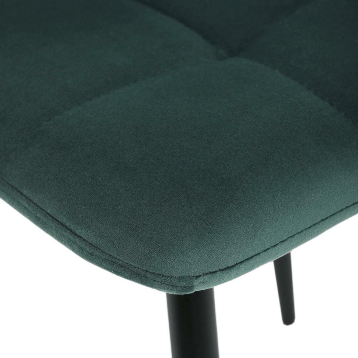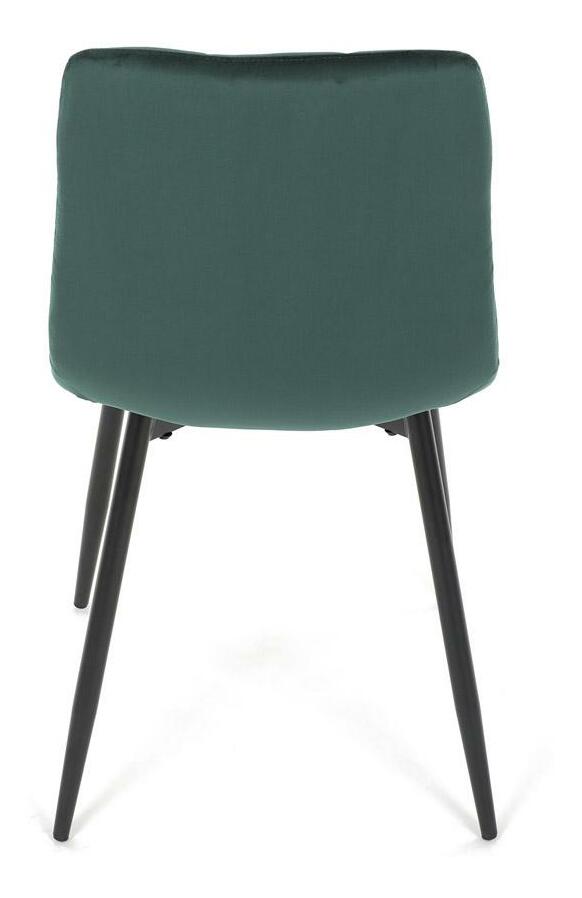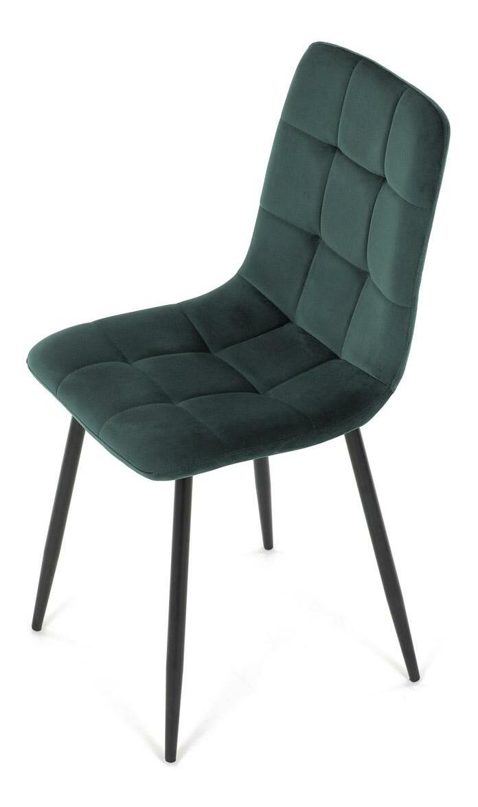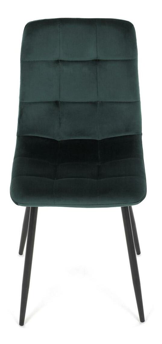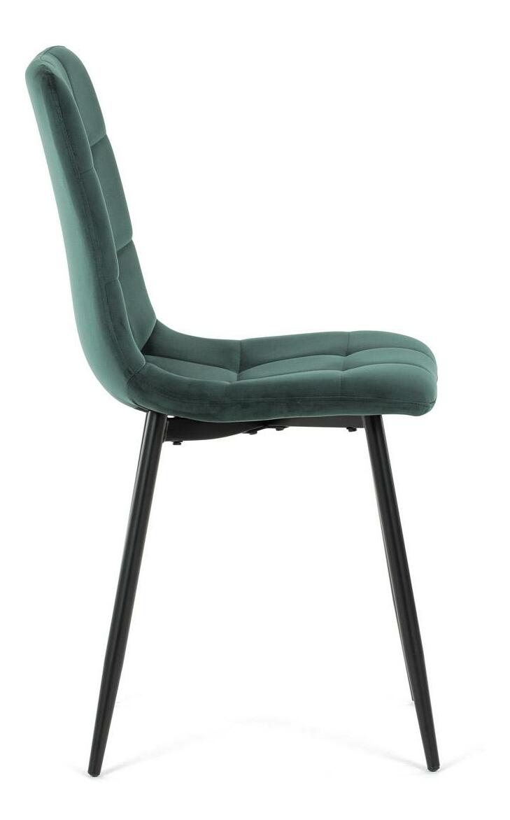 Jídelní židle v elegantní zelené barvě je ideální volbou pro stylové interiéry. Čalounění ze sametové látky působí luxusně a zajišťuje pohodlí při sezení. Decentní prošívání zdůrazňuje precizní zpracování, zatímco stabilní černé kovové nohy podtrhují minimalistický vzhled. posezení. Tato židle přináší harmonii mezi funkčností a moderním designem, který oživí každou jídelnu.
