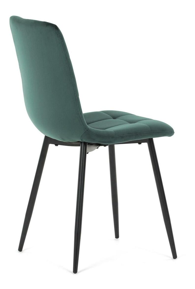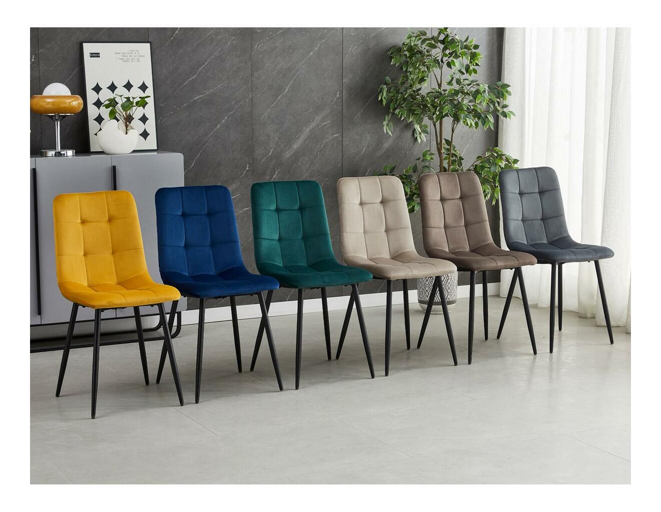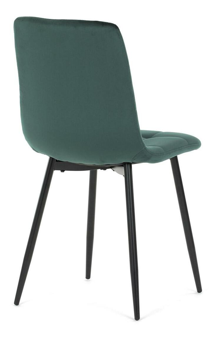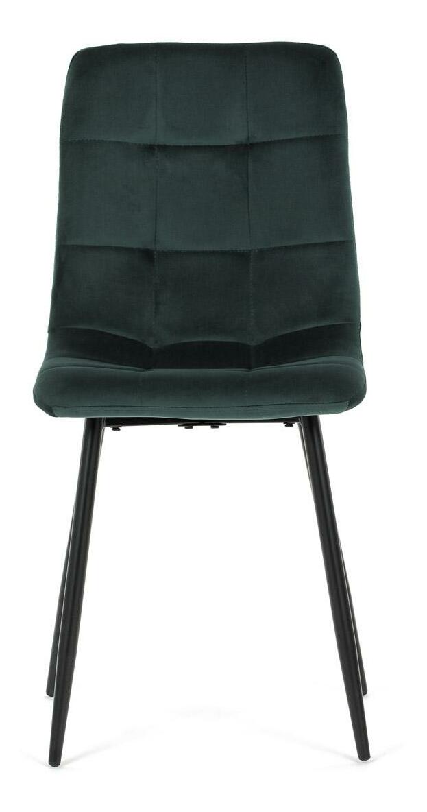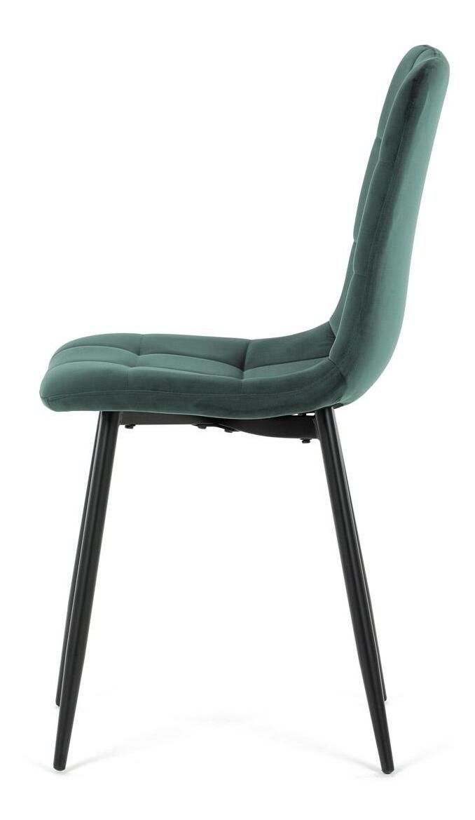 Jídelní židle v elegantní zelené barvě je ideální volbou pro stylové interiéry. Čalounění ze sametové látky působí luxusně a zajišťuje pohodlí při sezení. Decentní prošívání zdůrazňuje precizní zpracování, zatímco stabilní černé kovové nohy podtrhují minimalistický vzhled. posezení. Tato židle přináší harmonii mezi funkčností a moderním designem, který oživí každou jídelnu.