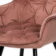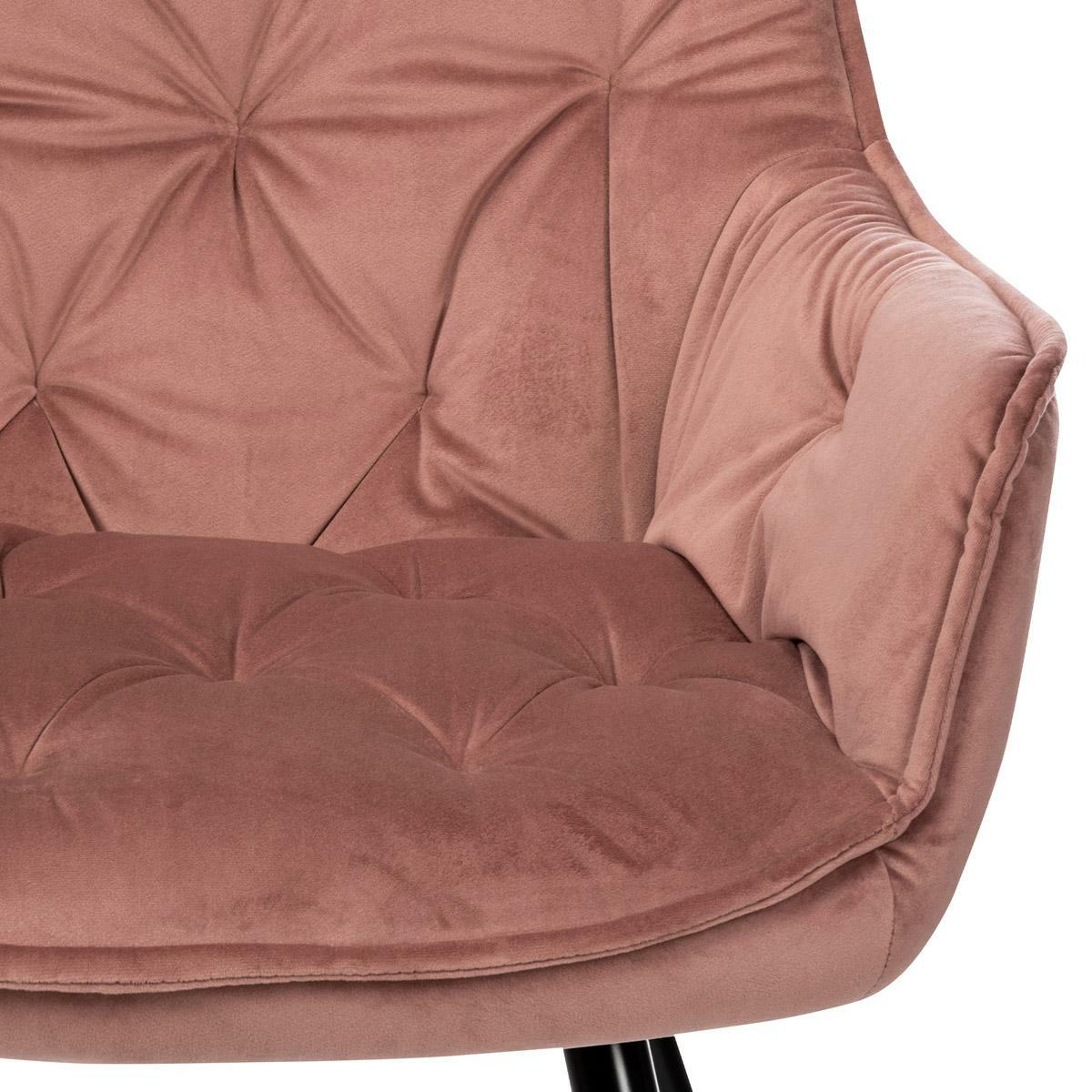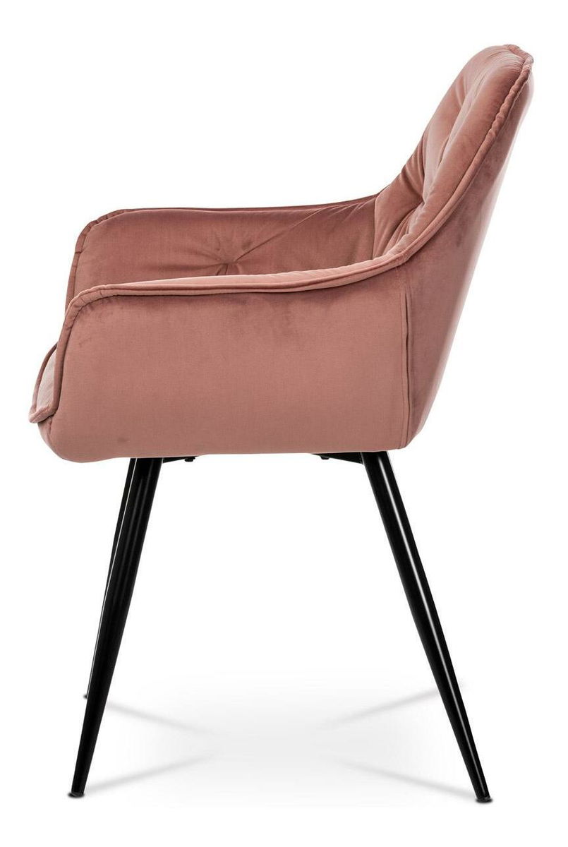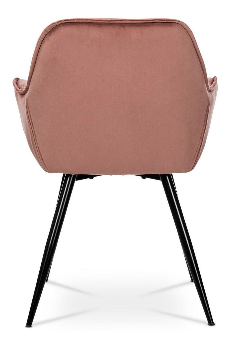 Díky svému dokonalému designu je tato židle v industriálním stylu nezaměnitelná a zároveň velmi pohodlná. Skořepina sedáku a opěradla má potah z kvalitní látky v trendy starorůžovém odstínu sametu. Polstrování je z PU pěny. Velice dekorativním prvkem je výrazné masivní čtvercové prošití sedacích částí v barvě potahu a paspule po obvodu celé skořepiny. Vybraná látka se také velmi dobře čistí. Stabilitu židle zajišťují čtyři kónické kovové nohy s kvalitním práškovým nástřikem v černé matné barvě. Ukončeny jsou černými plastovými kluzáky, zabraňující poškození tvrdých povrchů podlah. Tato provedení produkují z tohoto modelu židle skvělou volbu pro zařízení obývacích či jídelních, ale také zasedacích místností. Nosnost židle je 110 kg.