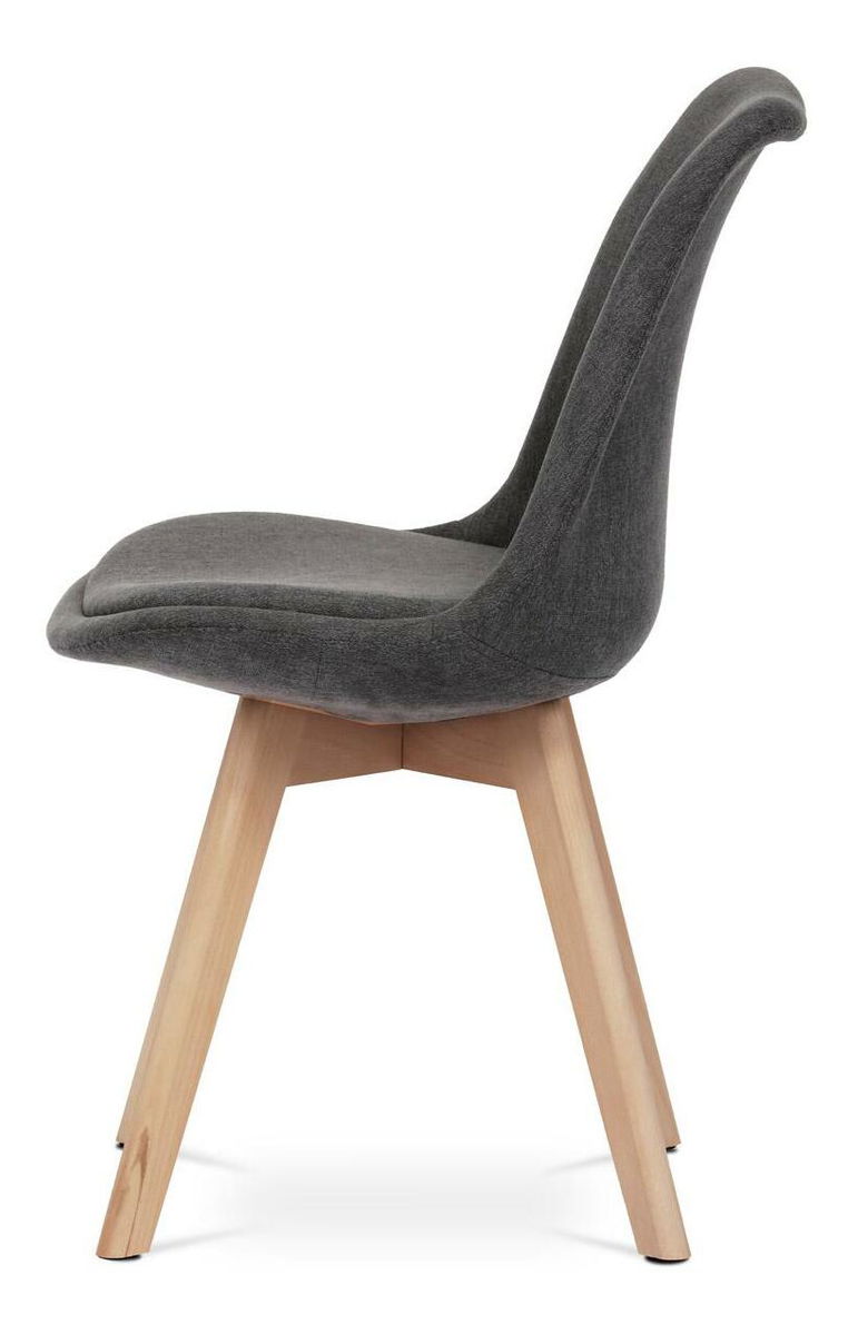 Jídelní židle s tvarovaným čalouněným korpusem v šedé barvě, vybavená pohodlným polstrovaným sedákem, který ladí s opěrkou. Nohy jsou vyrobeny z bukového masivu v přírodním odstínu, dodávající židli stabilitu a estetický kontrast. Židle je navržena s ohledem na pohodlí i styl, což ji činí ideální volbou pro moderní interiéry. Plastové kluzáky na nohou zajišťují ochranu podlahové krytiny před poškozením. Díky svému elegantnímu skandinávskému designu je vhodná do kuchyní, pracoven a obývacích pokojů.