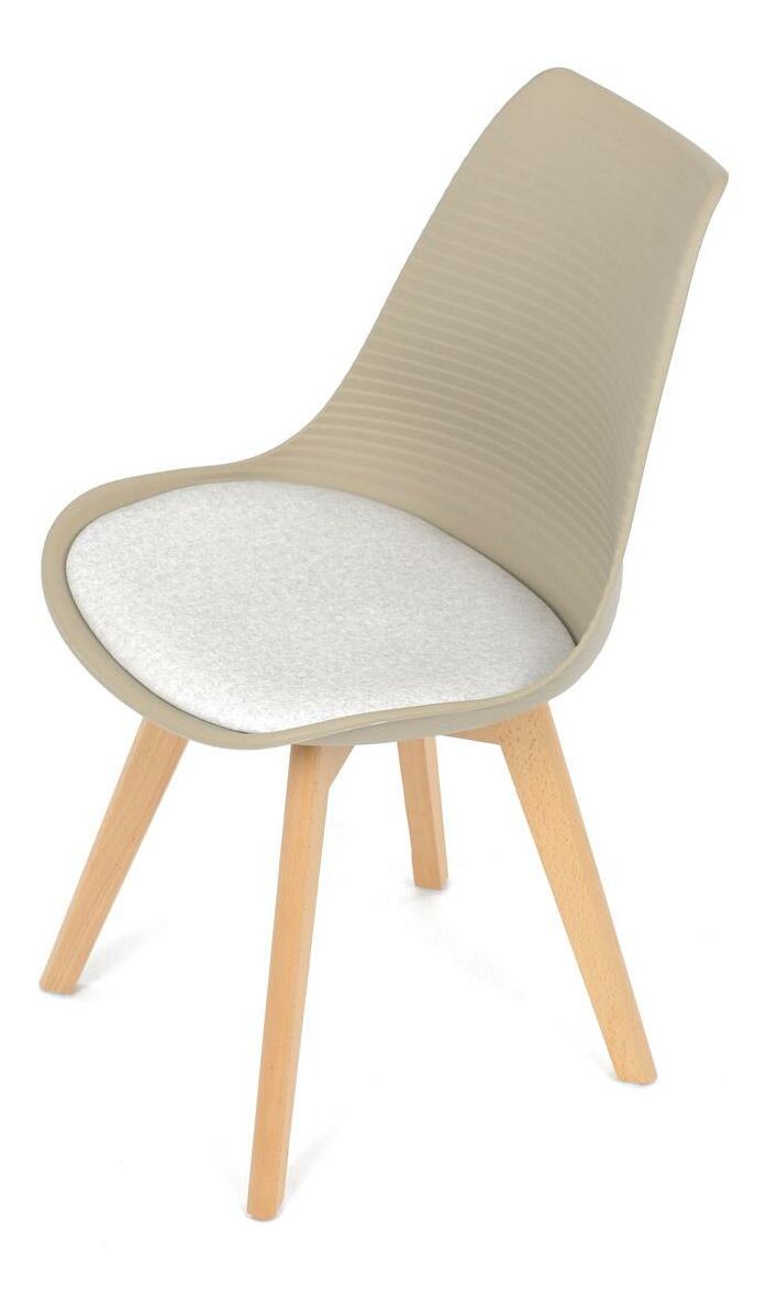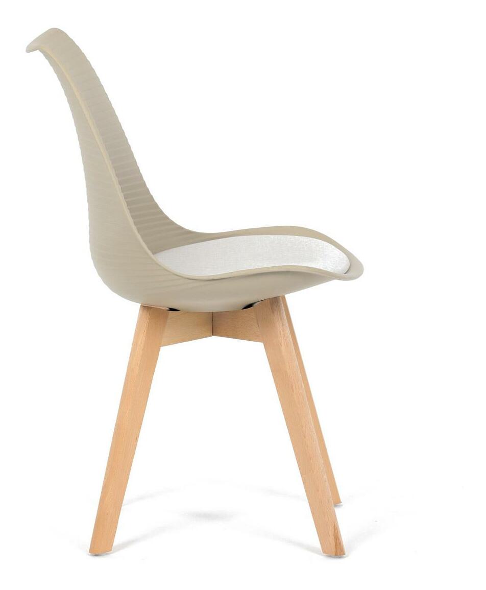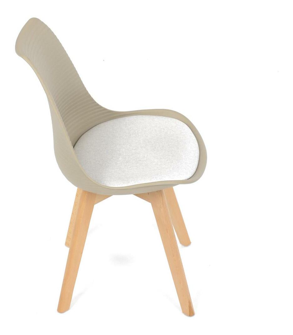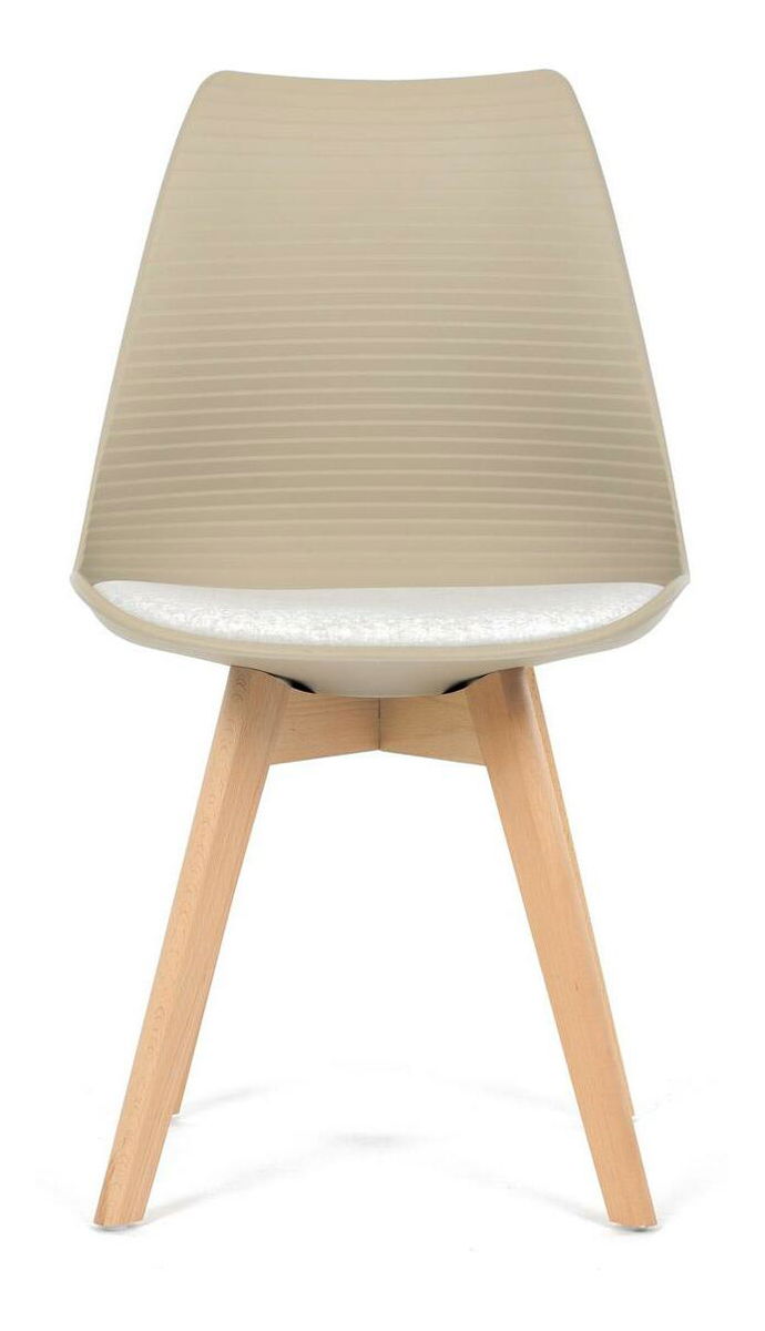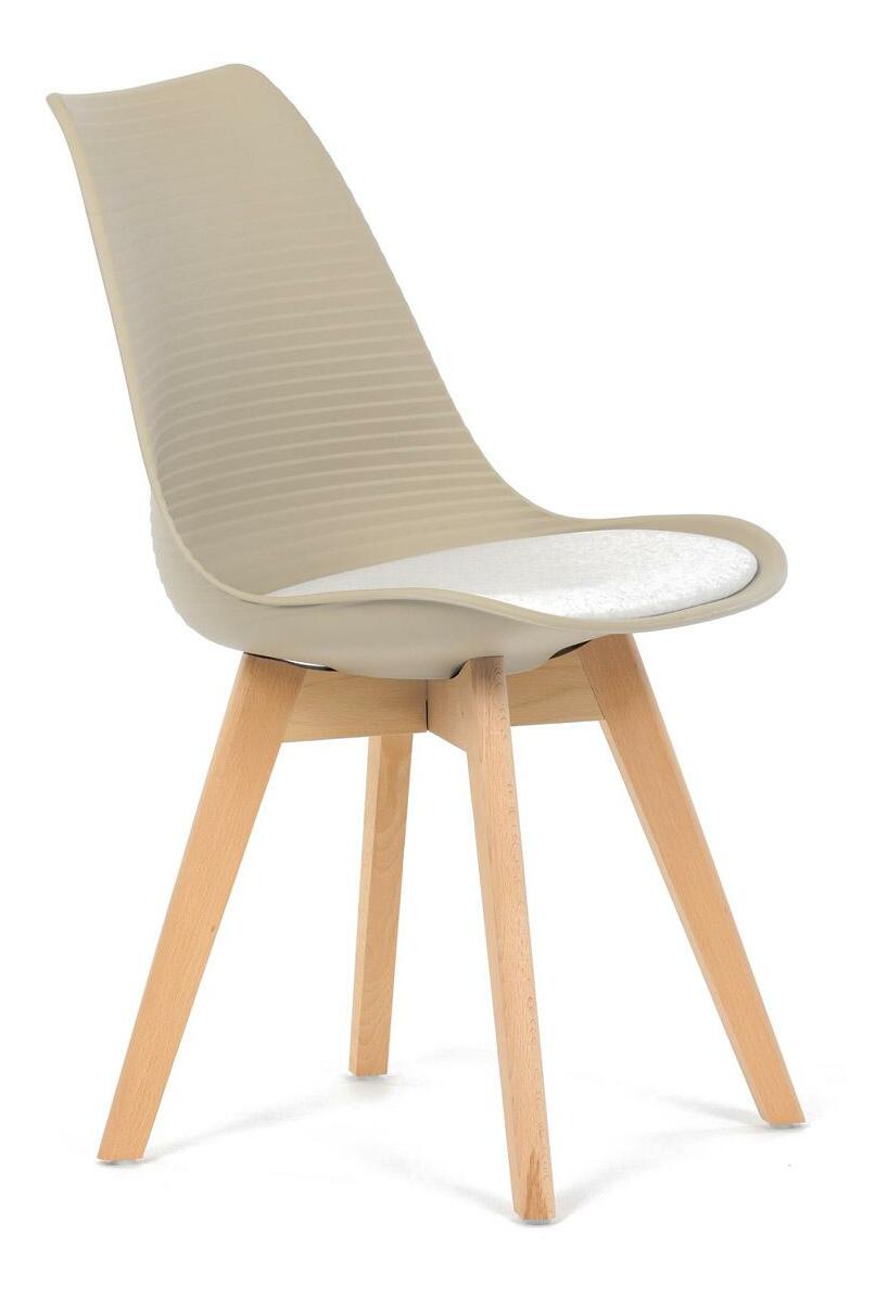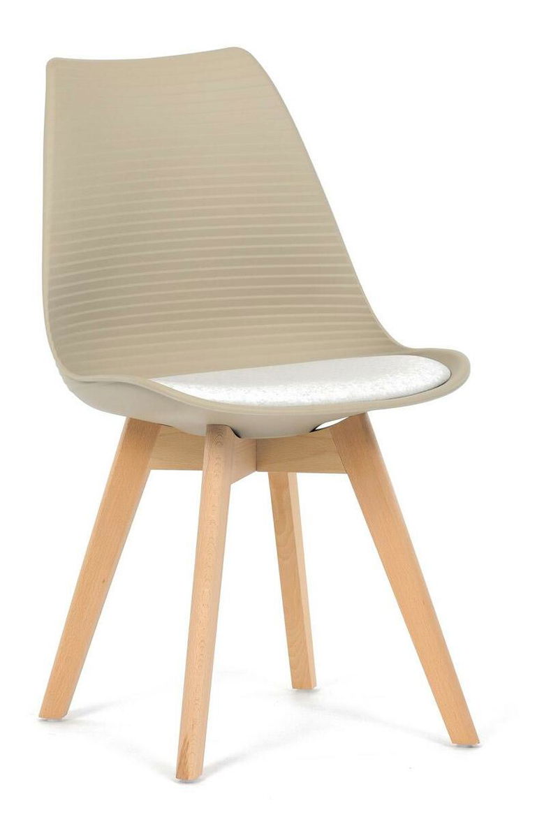 Jídelní židle v moderním skandinávském stylu kombinuje elegantní design s maximálním pohodlím. Plastový skořepinový sedák v krémové barvě s vodorovnými prolisy je doplněn o měkký polstrovaný podsedák potažený matným světle krémovým sametem, který zajišťuje příjemné sezení. Stabilní nohy z masivního dřeva dodávají židli přírodní vzhled a pevnost. Tato židle je ideální volbou do jídelny či kuchyně, kde oceníte její funkční i estetickou kvalitu.
