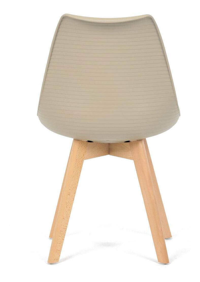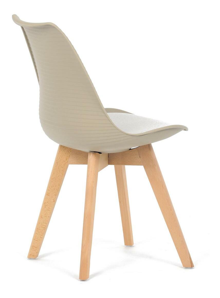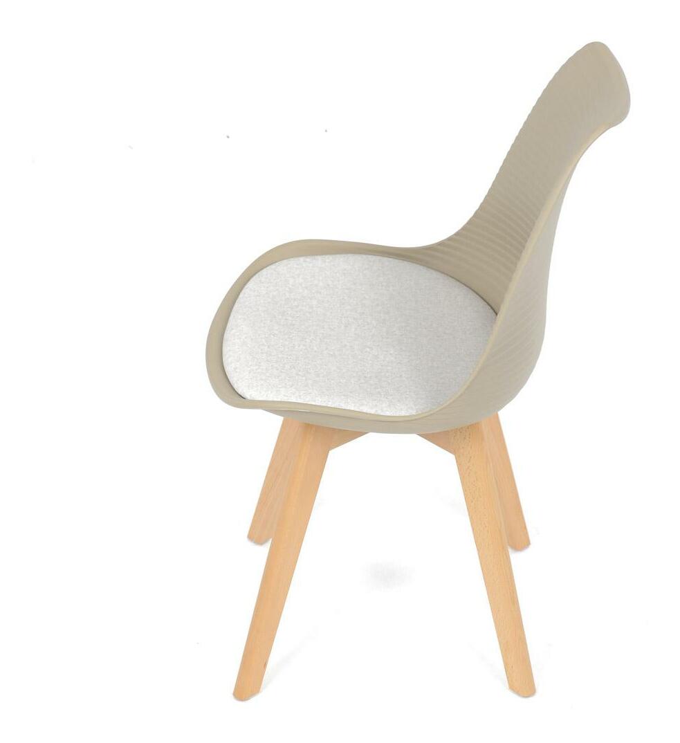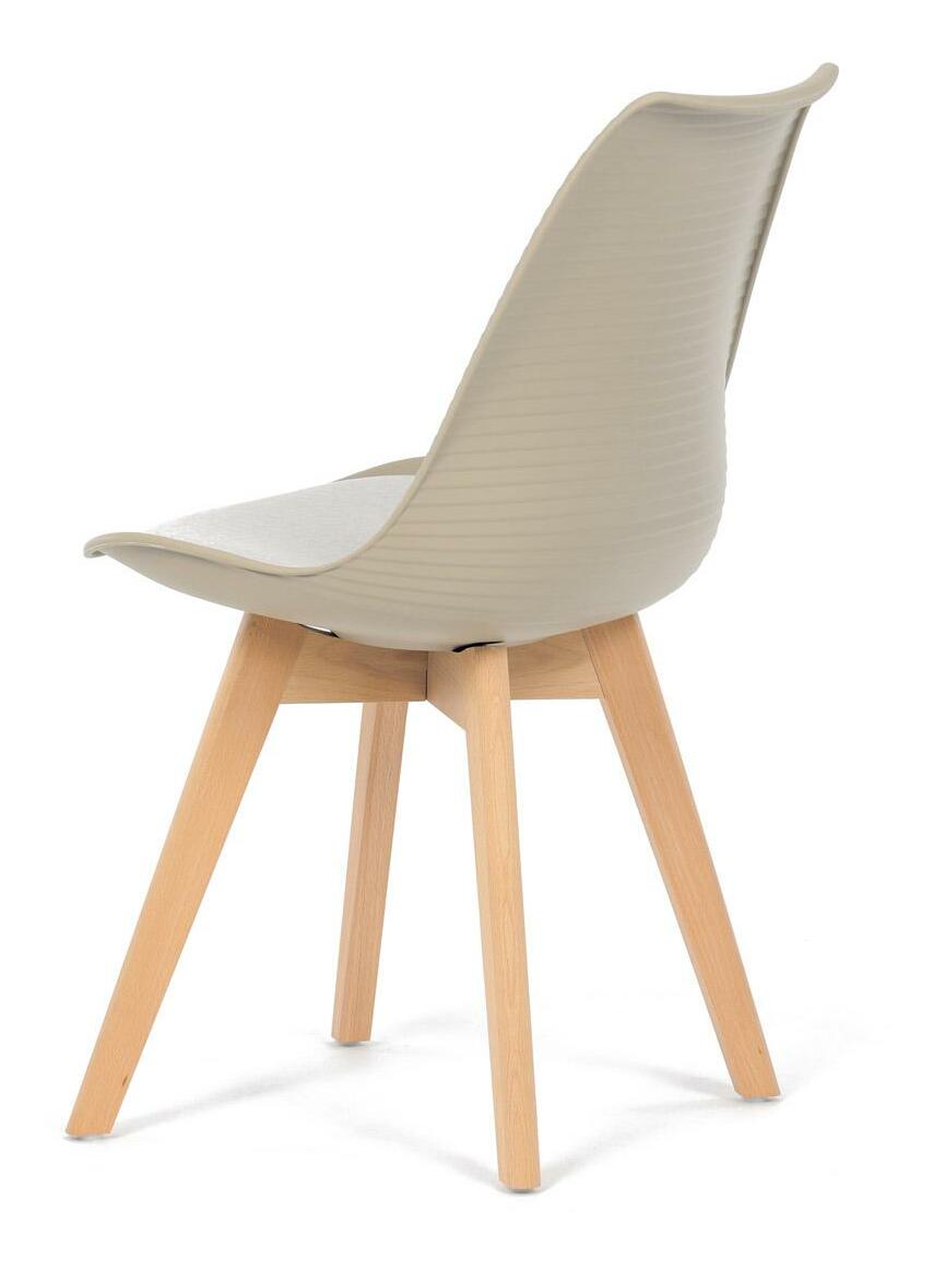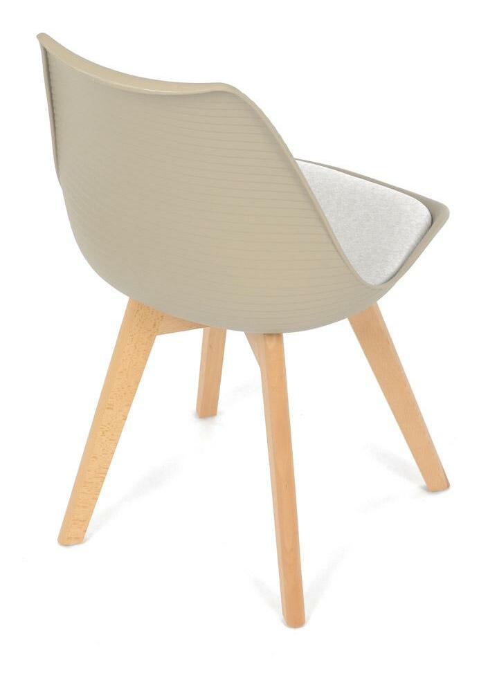 Jídelní židle v moderním skandinávském stylu kombinuje elegantní design s maximálním pohodlím. Plastový skořepinový sedák v krémové barvě s vodorovnými prolisy je doplněn o měkký polstrovaný podsedák potažený matným světle krémovým sametem, který zajišťuje příjemné sezení. Stabilní nohy z masivního dřeva dodávají židli přírodní vzhled a pevnost. Tato židle je ideální volbou do jídelny či kuchyně, kde oceníte její funkční i estetickou kvalitu.