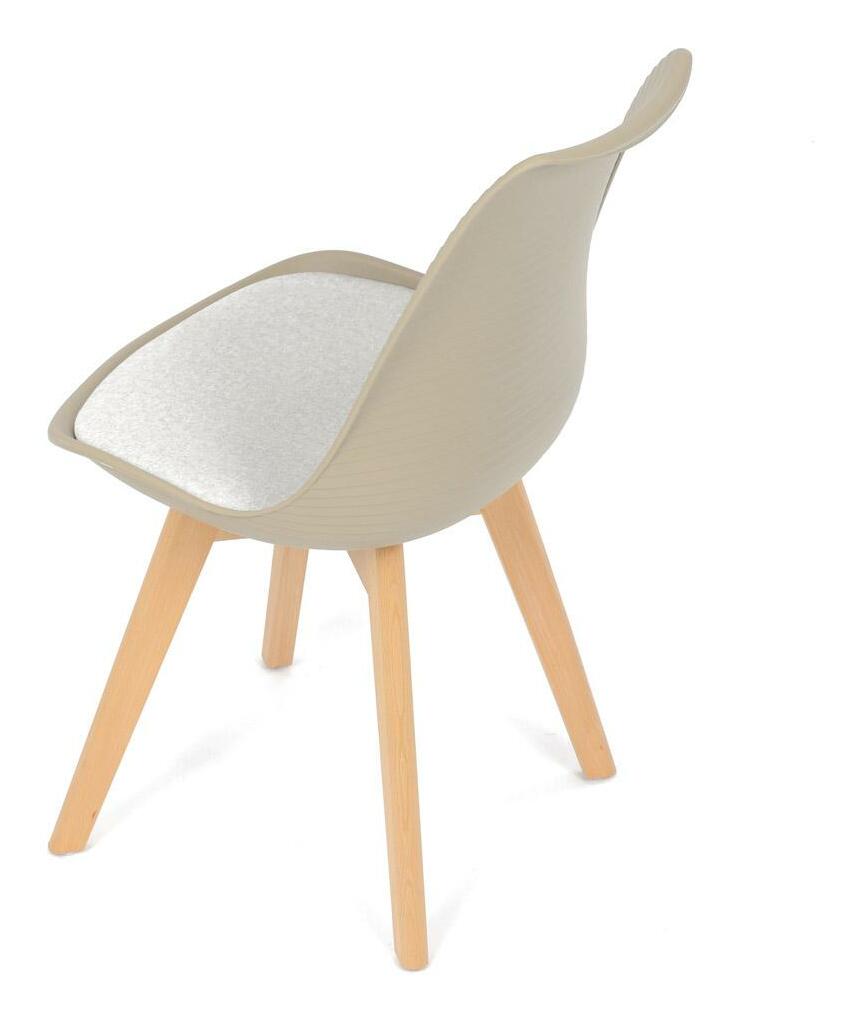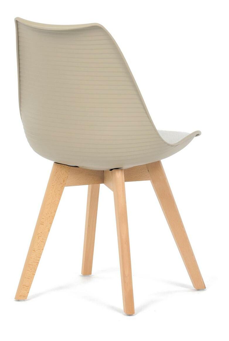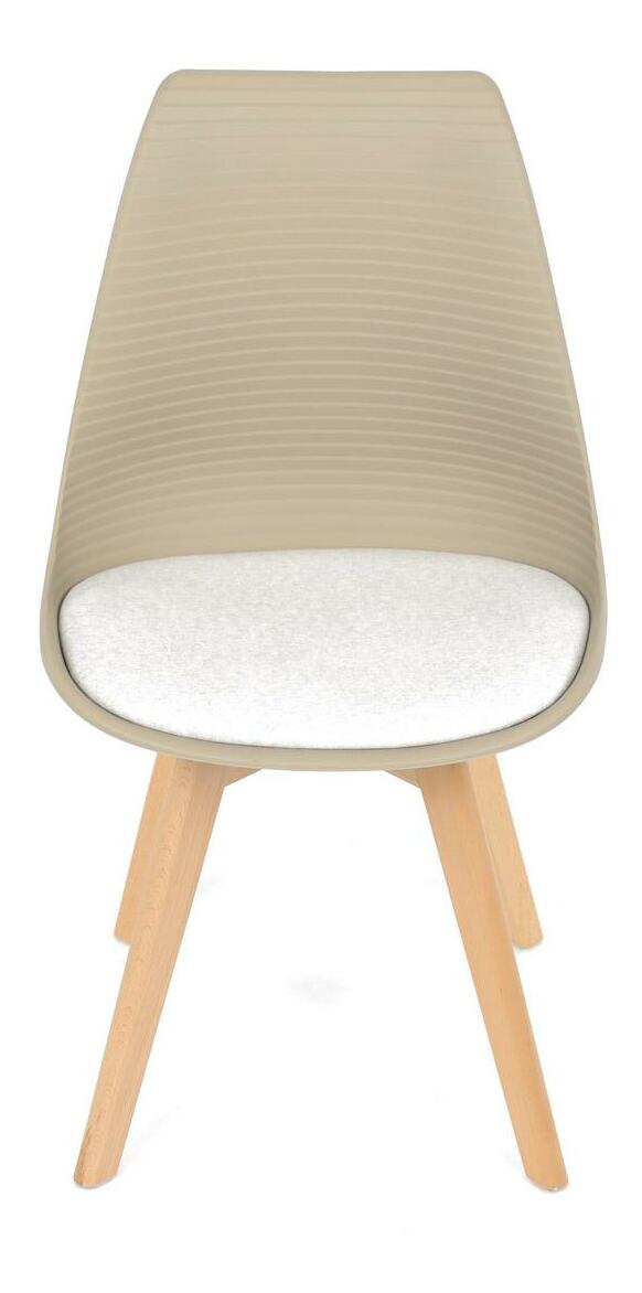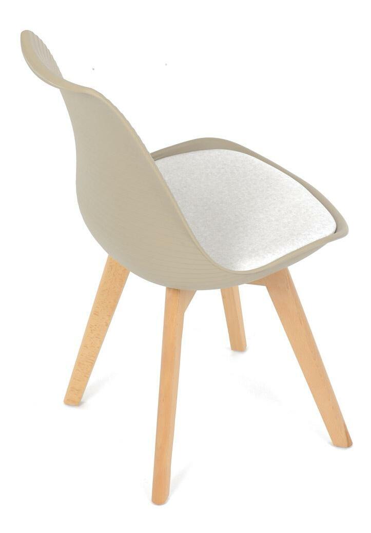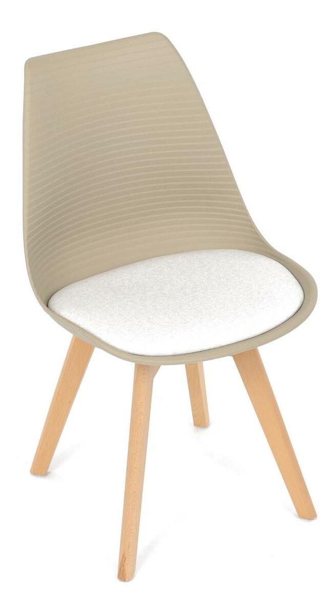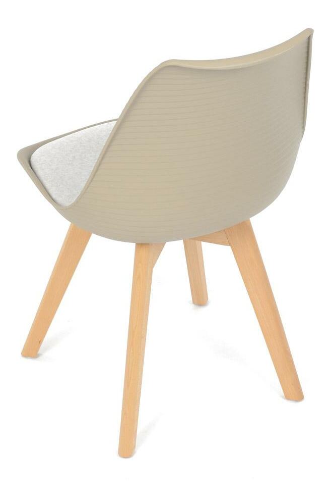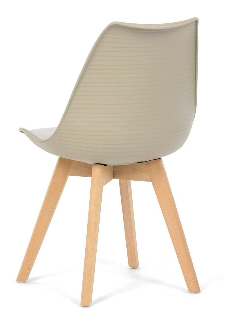 Jídelní židle v moderním skandinávském stylu kombinuje elegantní design s maximálním pohodlím. Plastový skořepinový sedák v krémové barvě s vodorovnými prolisy je doplněn o měkký polstrovaný podsedák potažený matným světle krémovým sametem, který zajišťuje příjemné sezení. Stabilní nohy z masivního dřeva dodávají židli přírodní vzhled a pevnost. Tato židle je ideální volbou do jídelny či kuchyně, kde oceníte její funkční i estetickou kvalitu.