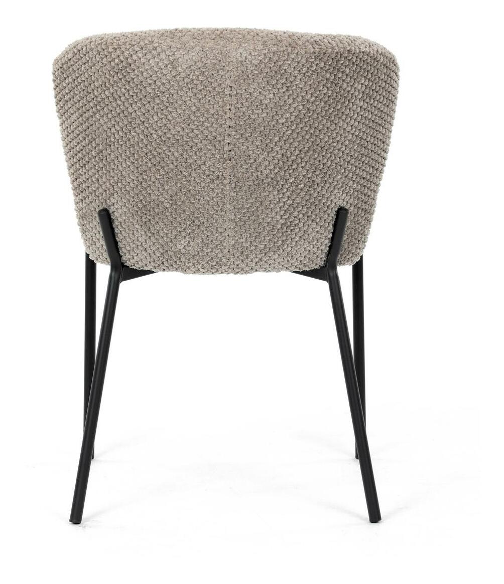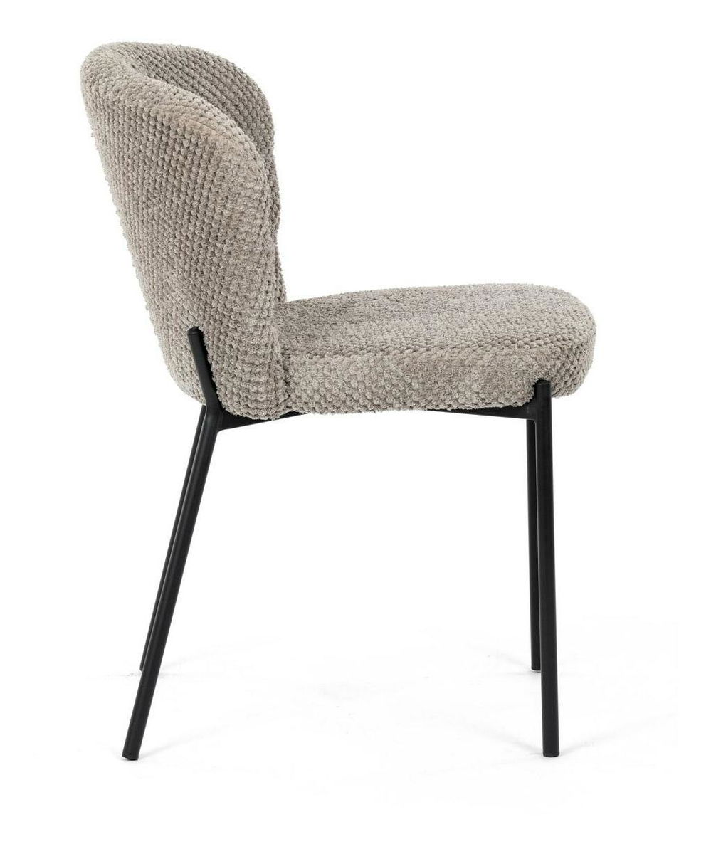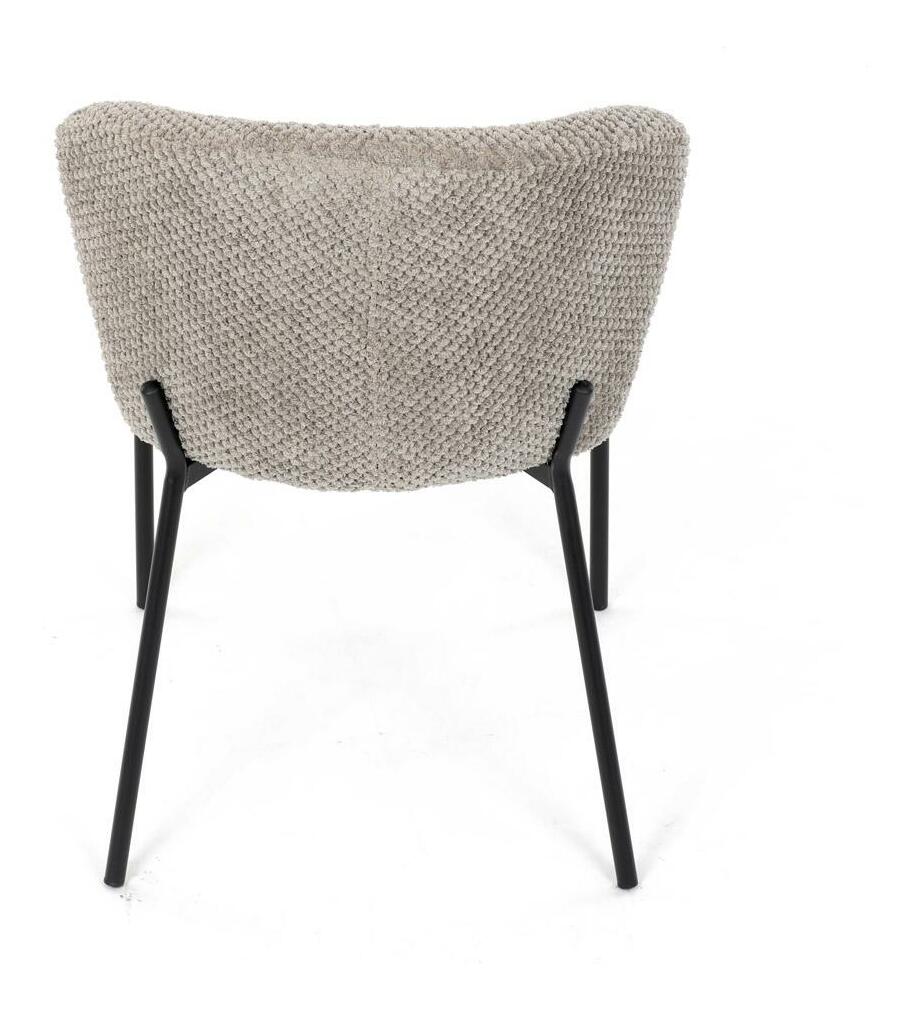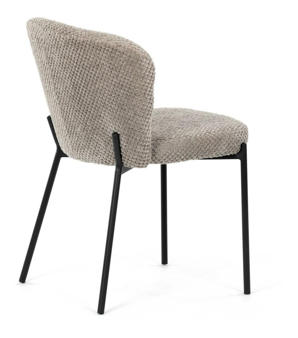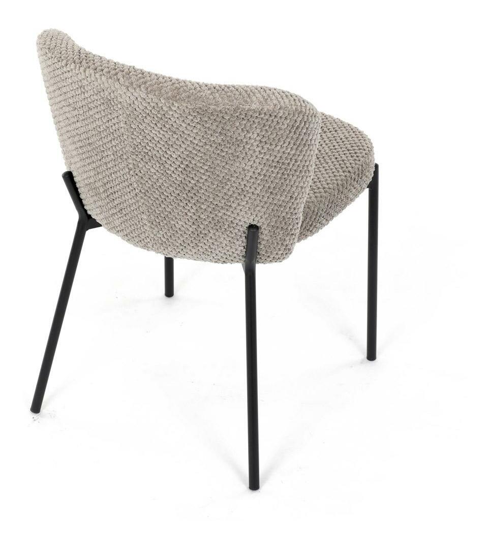 Jídelní židle spojuje eleganci s praktickými vlastnostmi. Čalounění z látky Bouclé je nejen moderní, ale také voděodolné a vhodné pro domácnosti s mazlíčky. Komfortní sedák a zaoblené opěradlo zajišťují pohodlné posezení při každém jídle. Stabilní kovové nohy s černým povrchem dodávají židli industriální vzhled, který snadno doplní váš interiér. Díky své lehké konstrukci a snadné údržbě je ideální volbou pro jídelny i kuchyně.
