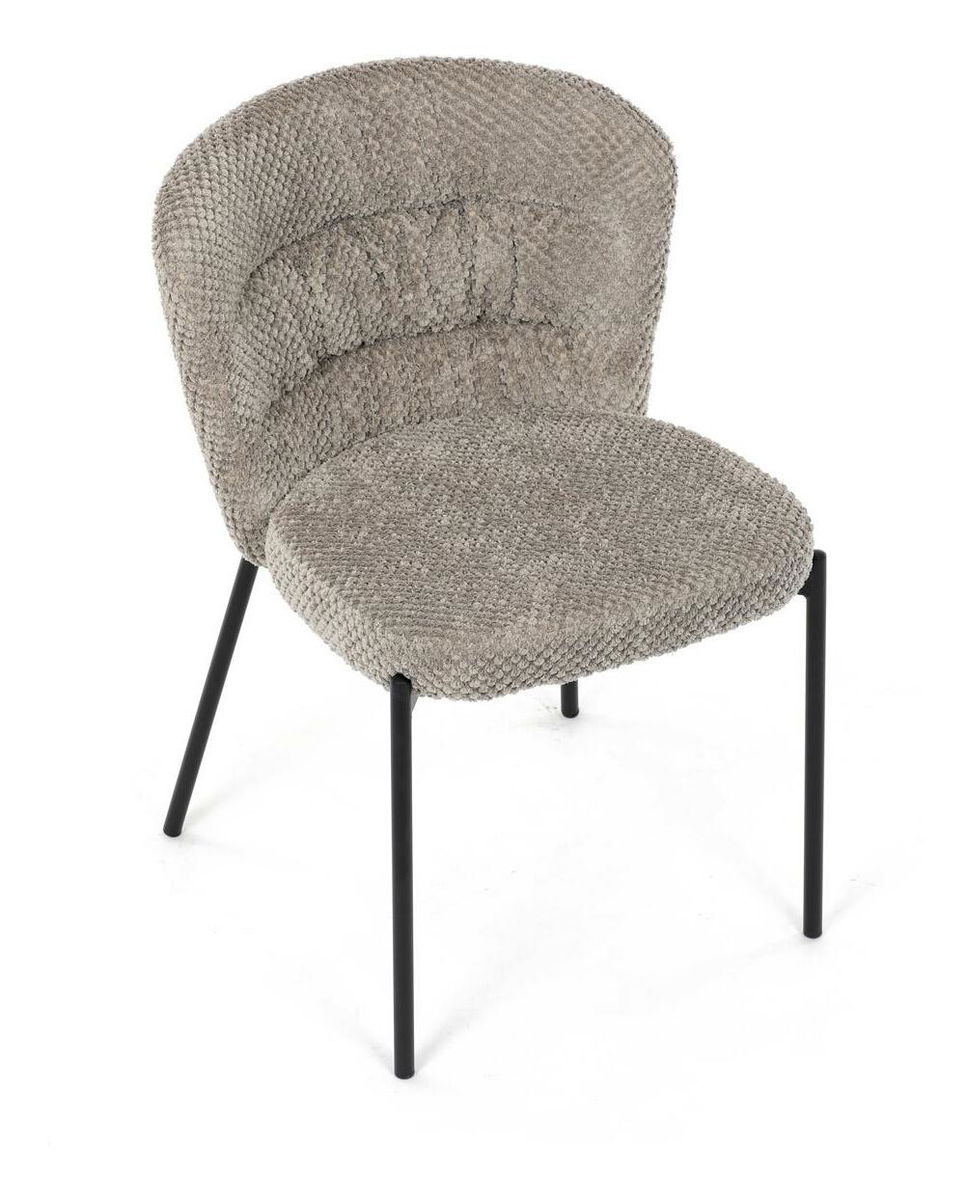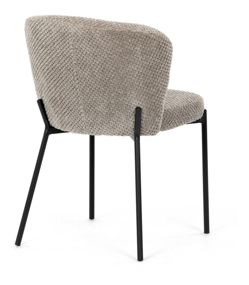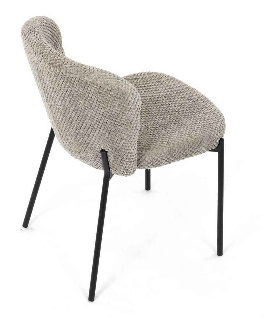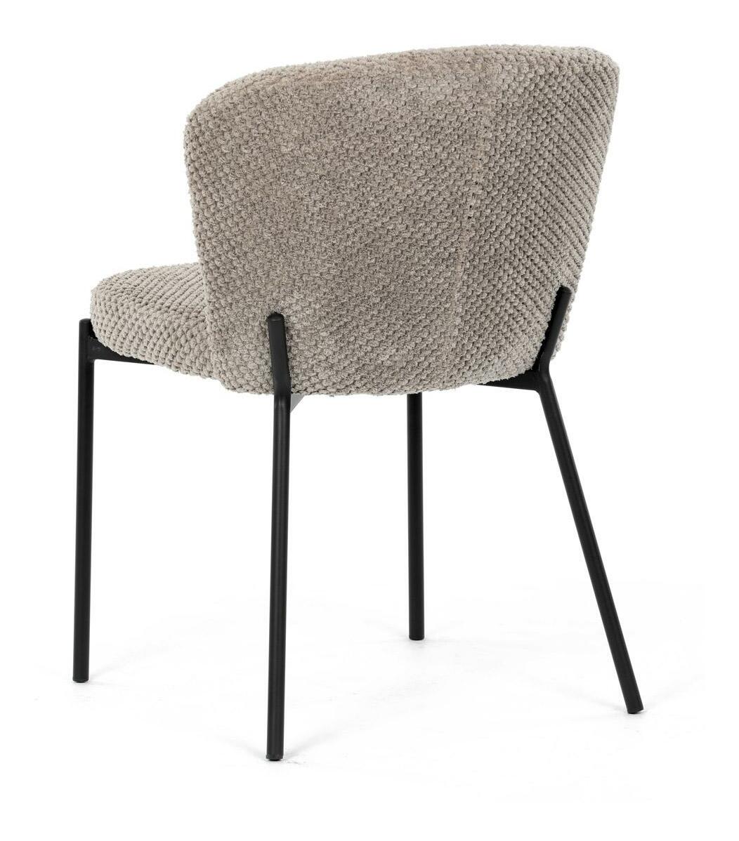 Jídelní židle spojuje eleganci s praktickými vlastnostmi. Čalounění z látky Bouclé je nejen moderní, ale také voděodolné a vhodné pro domácnosti s mazlíčky. Komfortní sedák a zaoblené opěradlo zajišťují pohodlné posezení při každém jídle. Stabilní kovové nohy s černým povrchem dodávají židli industriální vzhled, který snadno doplní váš interiér. Díky své lehké konstrukci a snadné údržbě je ideální volbou pro jídelny i kuchyně.