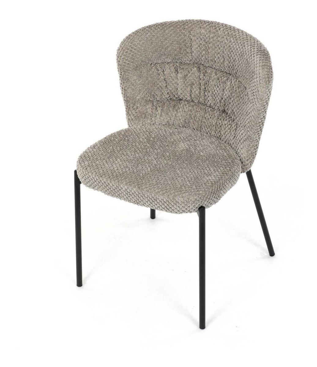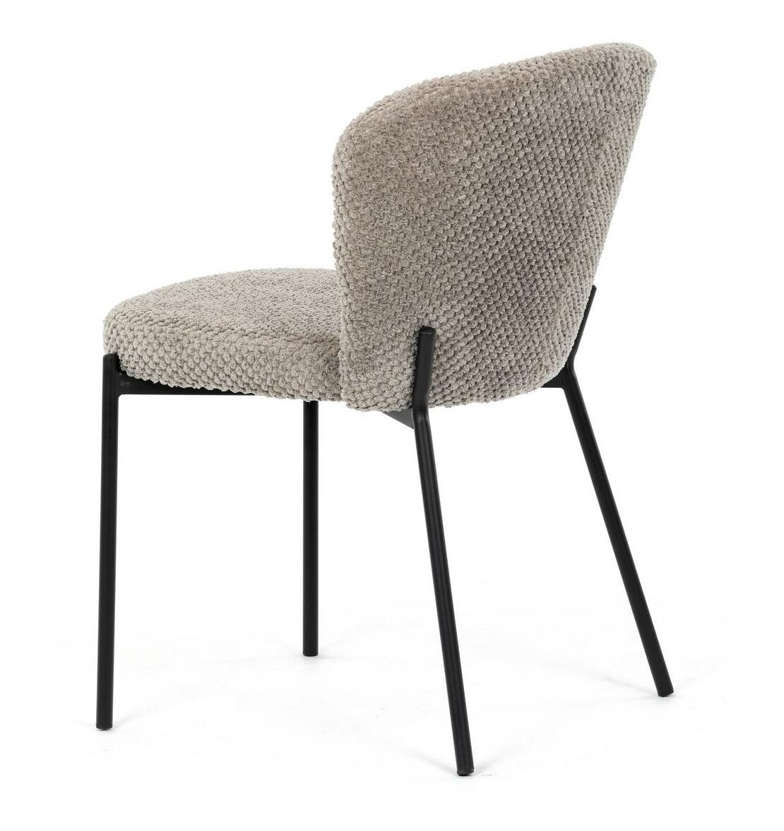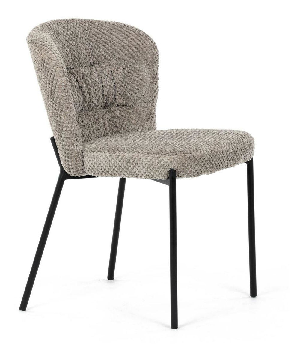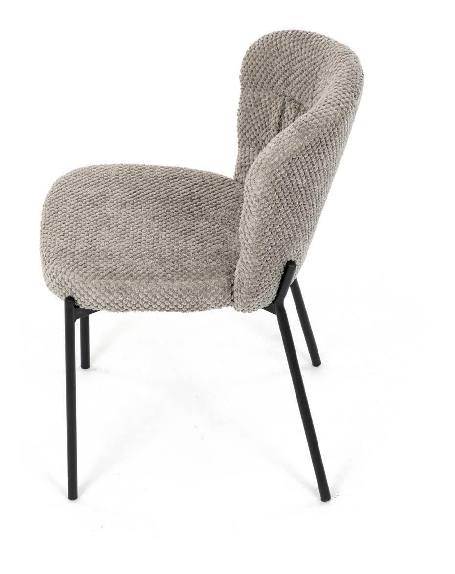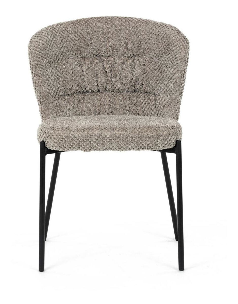 Jídelní židle spojuje eleganci s praktickými vlastnostmi. Čalounění z látky Bouclé je nejen moderní, ale také voděodolné a vhodné pro domácnosti s mazlíčky. Komfortní sedák a zaoblené opěradlo zajišťují pohodlné posezení při každém jídle. Stabilní kovové nohy s černým povrchem dodávají židli industriální vzhled, který snadno doplní váš interiér. Díky své lehké konstrukci a snadné údržbě je ideální volbou pro jídelny i kuchyně.