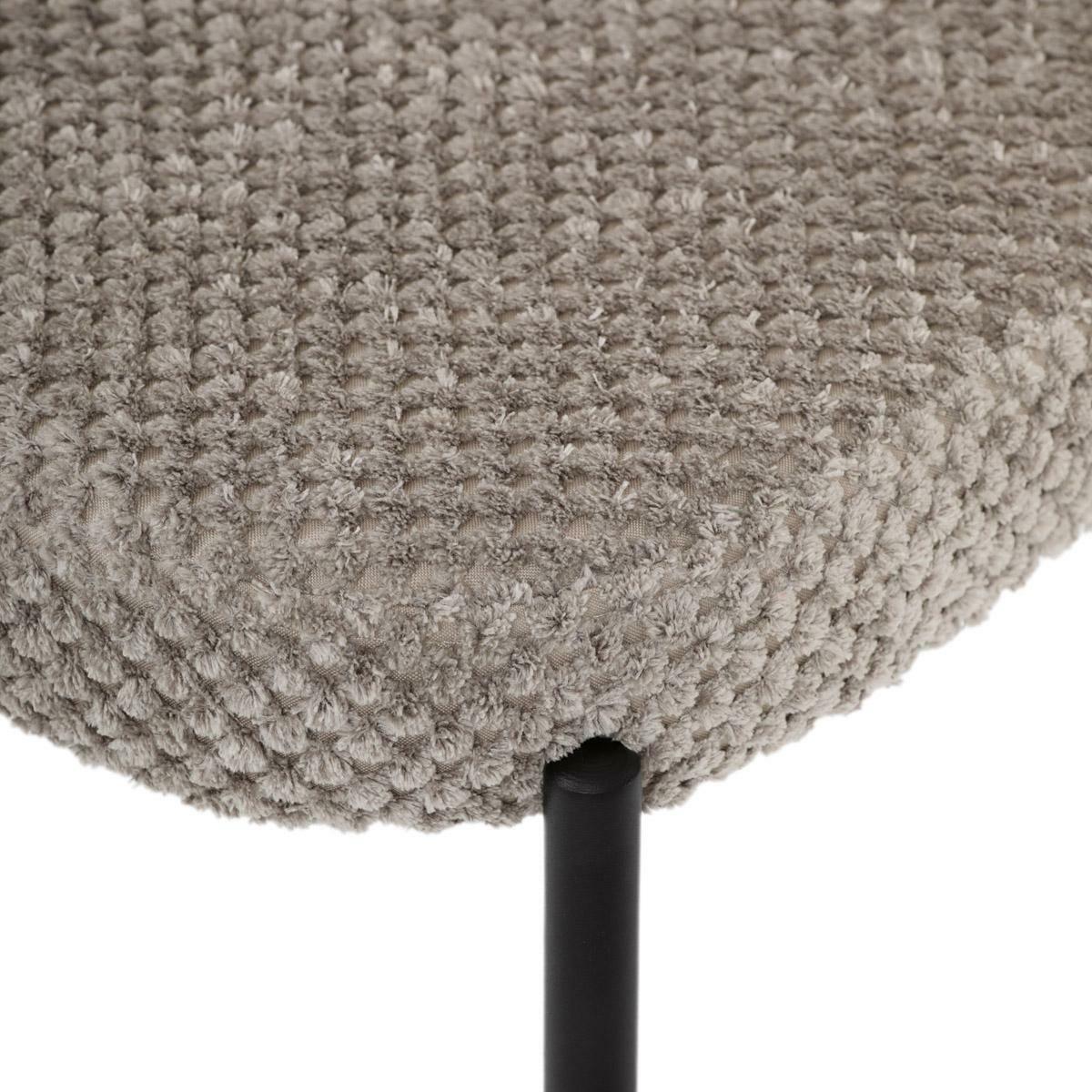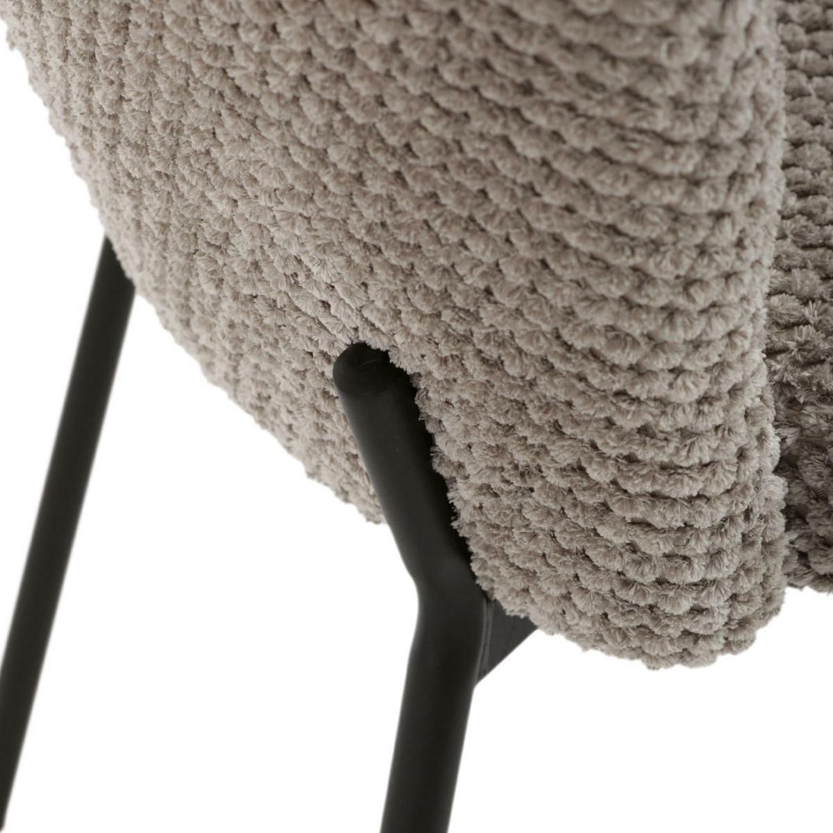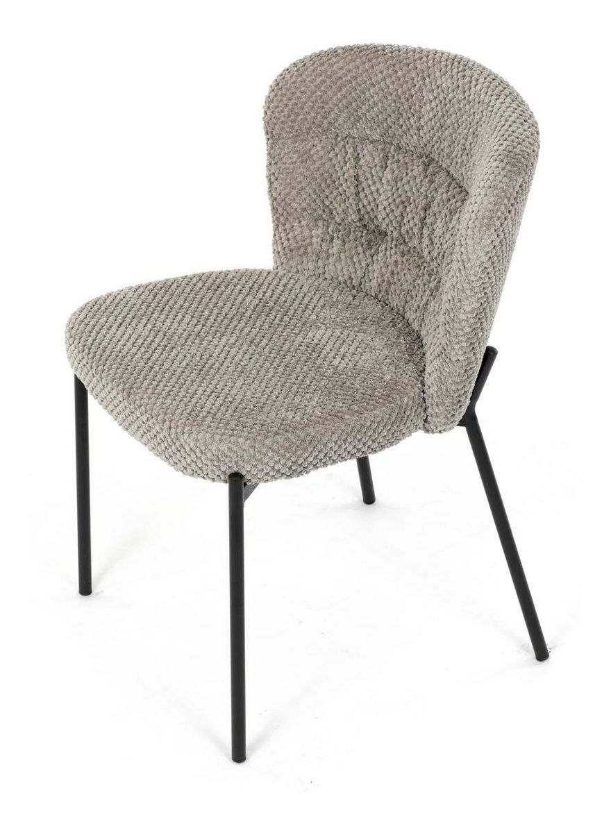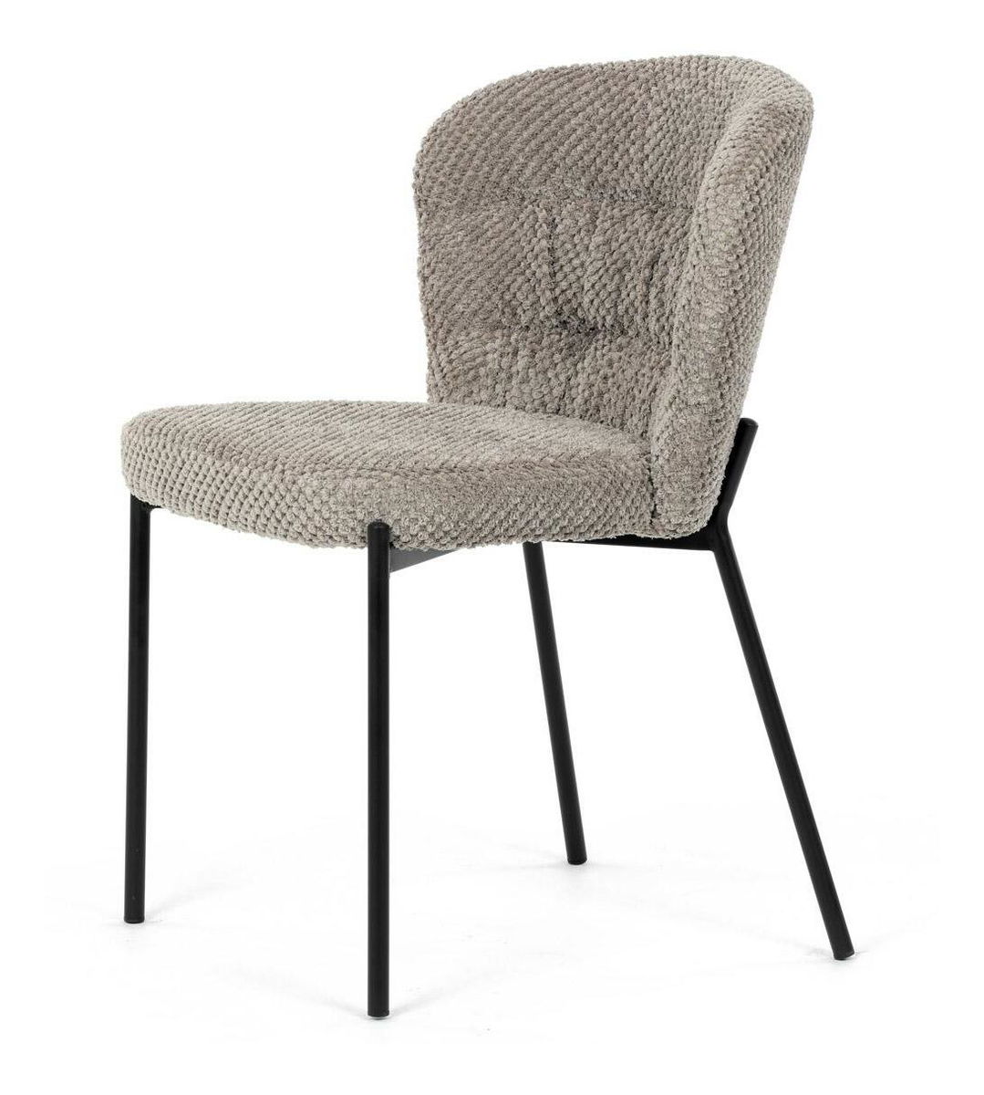 Jídelní židle spojuje eleganci s praktickými vlastnostmi. Čalounění z látky Bouclé je nejen moderní, ale také voděodolné a vhodné pro domácnosti s mazlíčky. Komfortní sedák a zaoblené opěradlo zajišťují pohodlné posezení při každém jídle. Stabilní kovové nohy s černým povrchem dodávají židli industriální vzhled, který snadno doplní váš interiér. Díky své lehké konstrukci a snadné údržbě je ideální volbou pro jídelny i kuchyně.