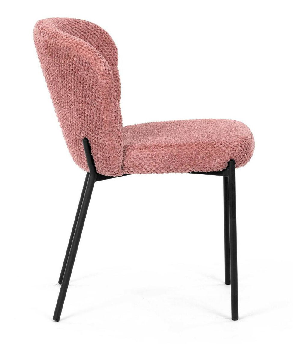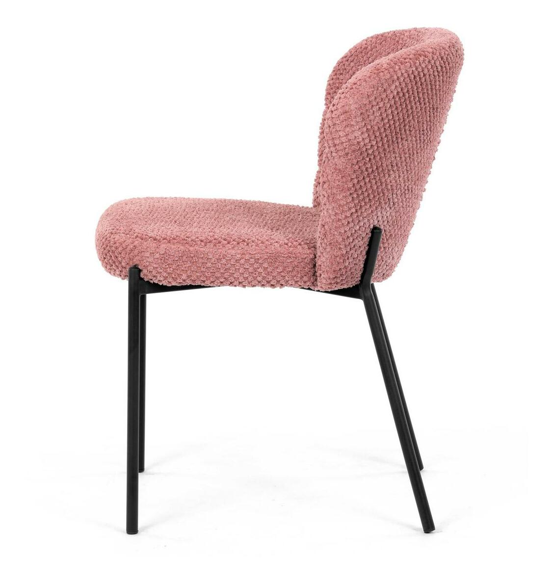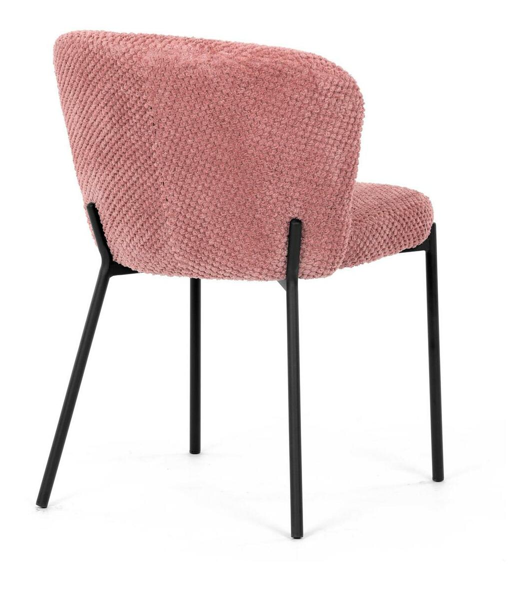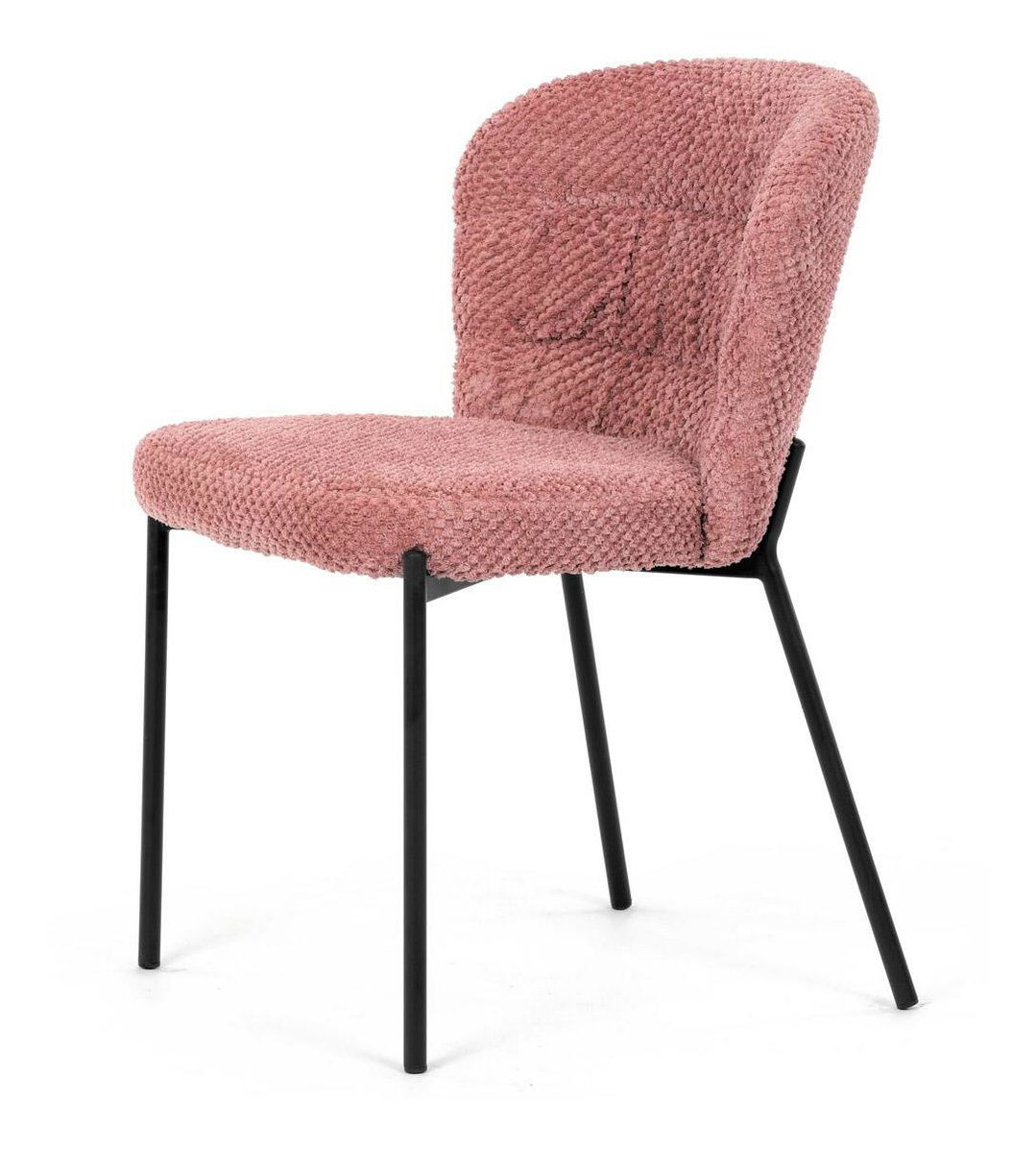 Jídelní židle spojuje eleganci s praktickými vlastnostmi. Čalounění z látky Bouclé je nejen moderní, ale také voděodolné a vhodné pro domácnosti s mazlíčky. Komfortní sedák a zaoblené opěradlo zajišťují pohodlné posezení při každém jídle. Stabilní kovové nohy s černým povrchem dodávají židli industriální vzhled, který snadno doplní váš interiér. Díky své lehké konstrukci a snadné údržbě je ideální volbou pro jídelny i kuchyně.