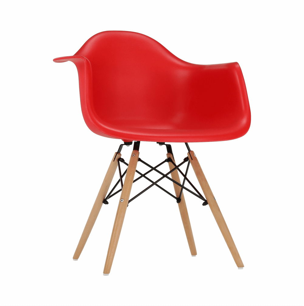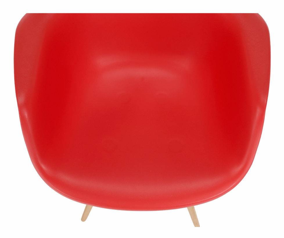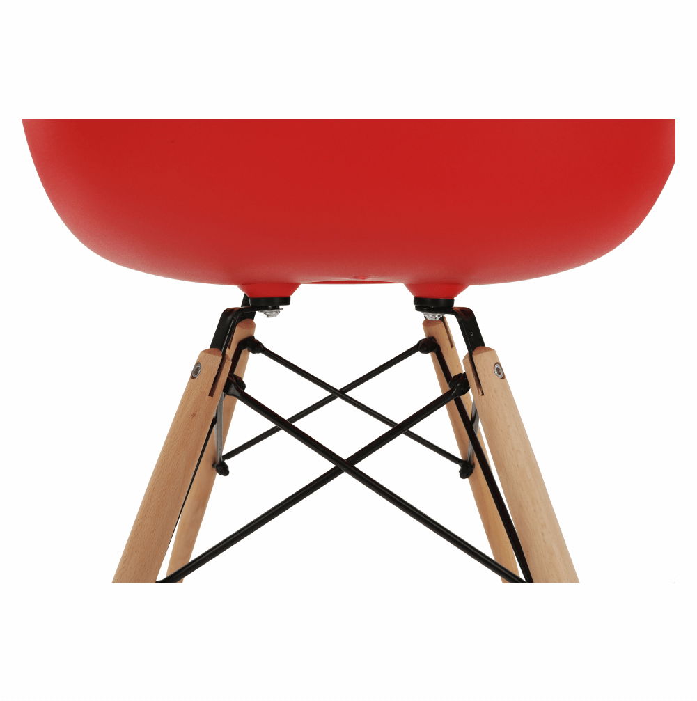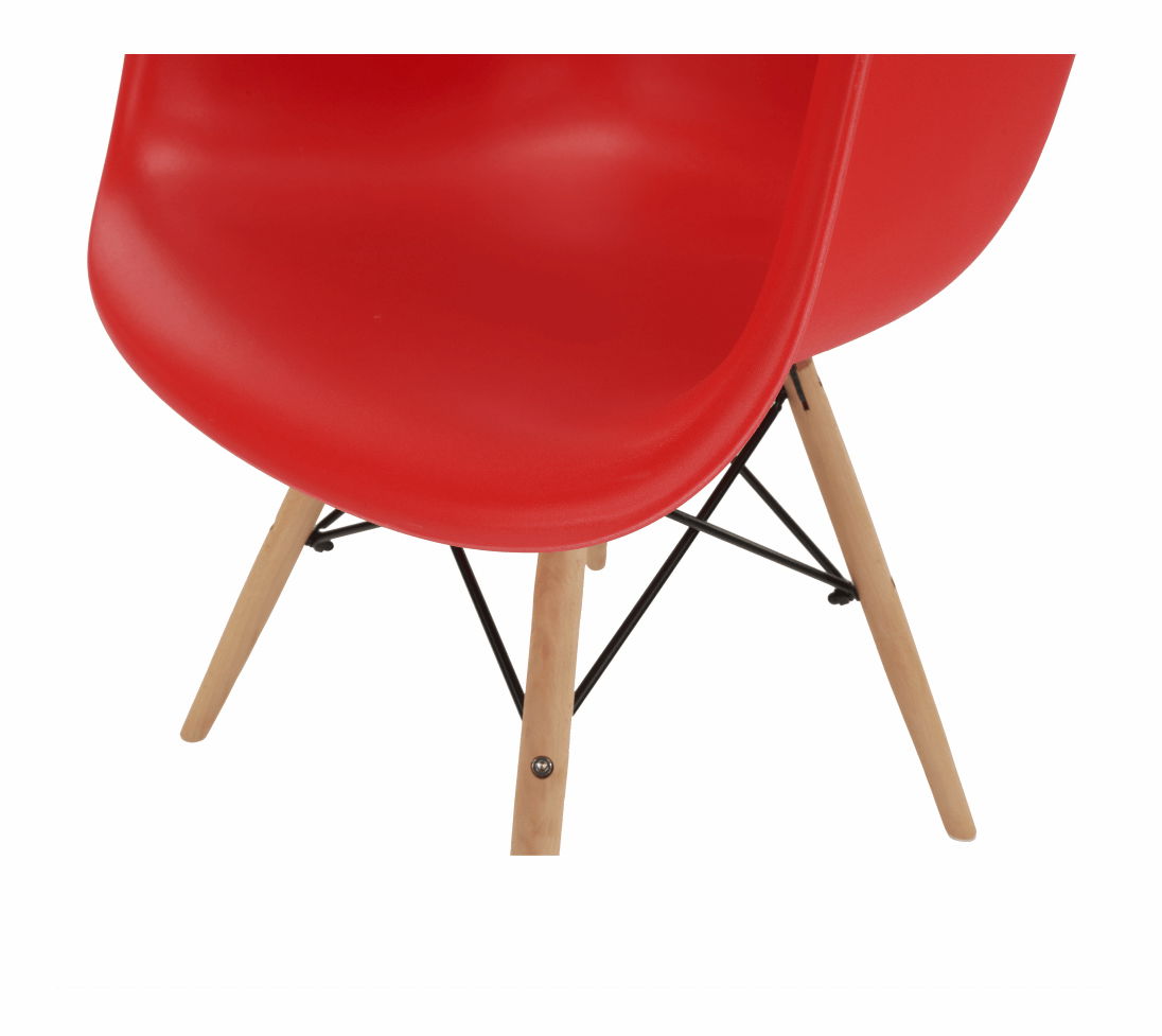 Moderní jídelní židle s retro nádechem a v hezkém červeném barevném provedení bude zpestřením vašich jídelen. Tvarované sedadlo je vyrobeno z plastu. Nohy židle jsou z masivního dřeva a pospojované ocelovými podpěrami.