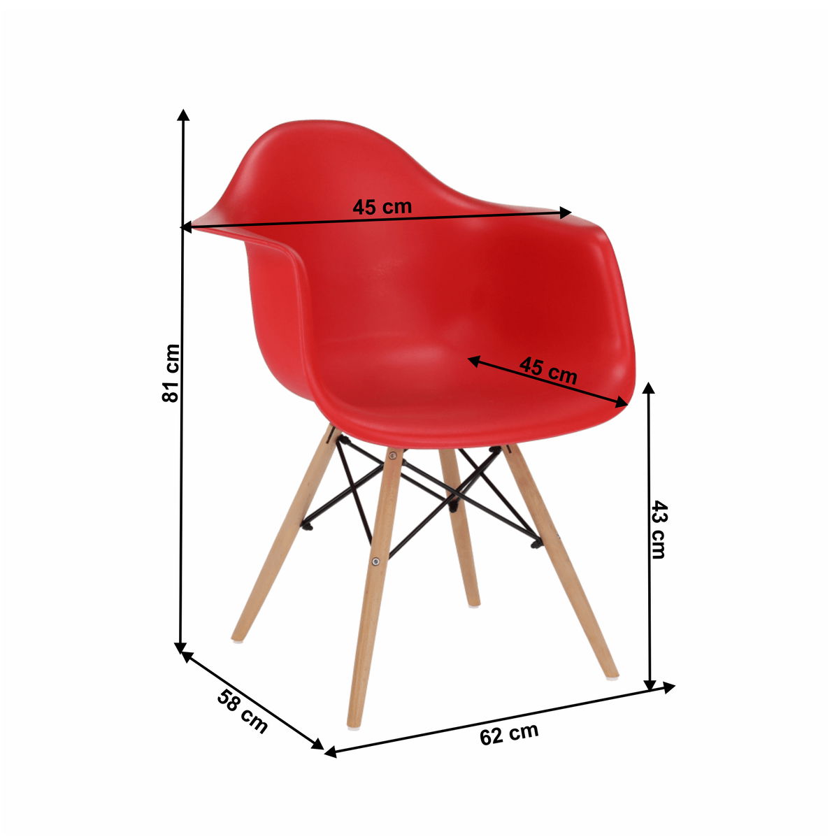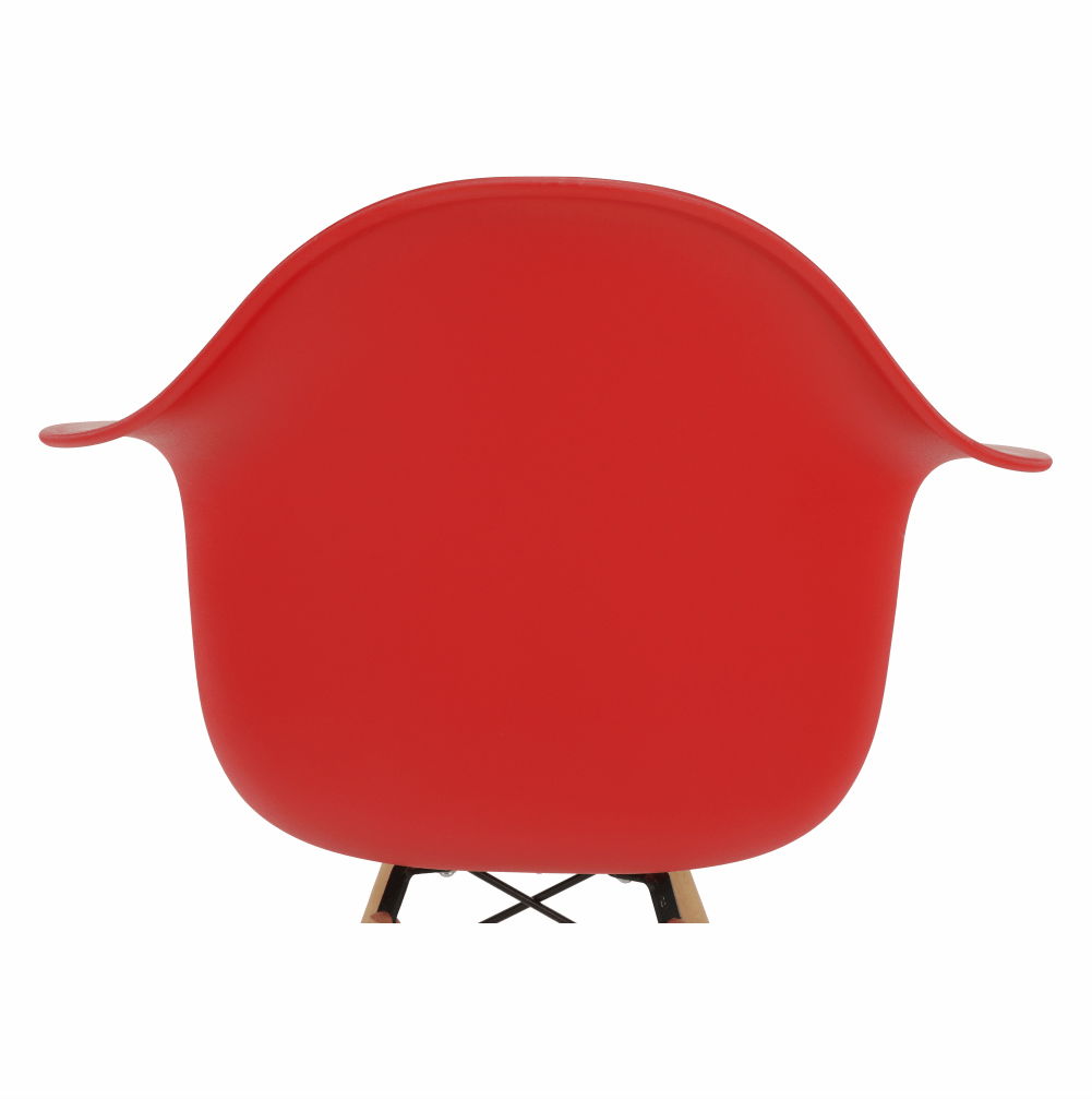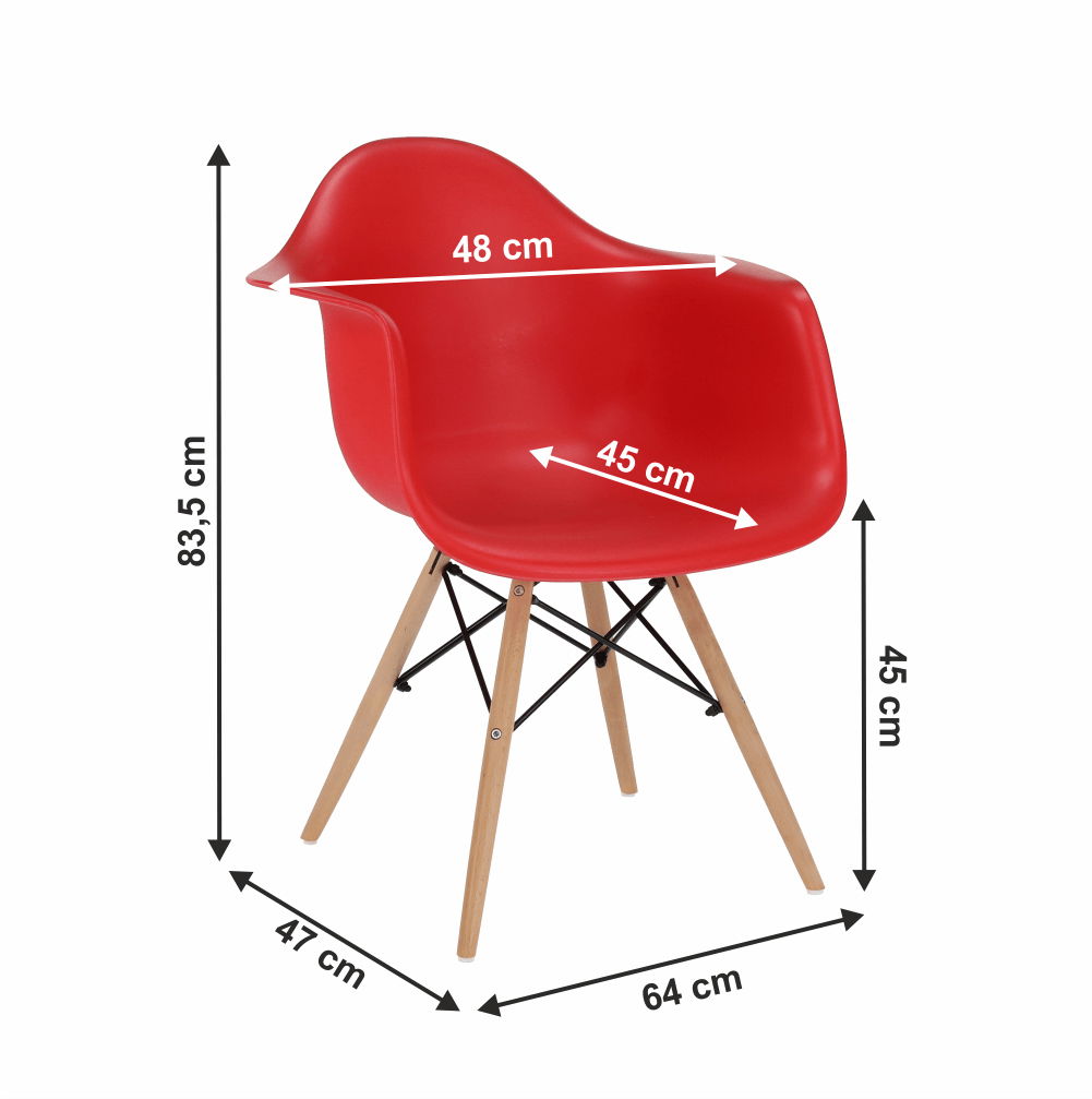 Moderní jídelní židle s retro nádechem a v hezkém červeném barevném provedení bude zpestřením vašich jídelen. Tvarované sedadlo je vyrobeno z plastu. Nohy židle jsou z masivního dřeva a pospojované ocelovými podpěrami.