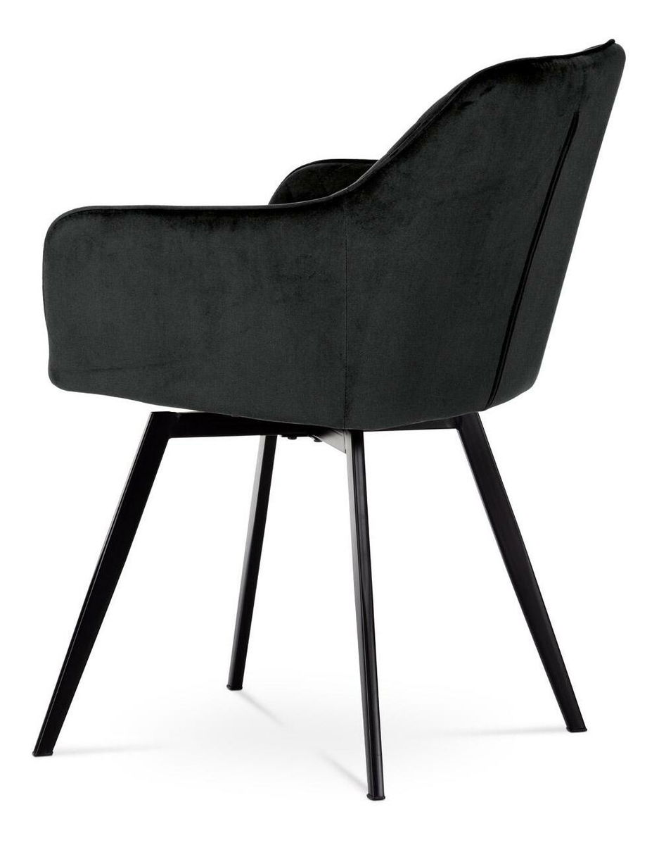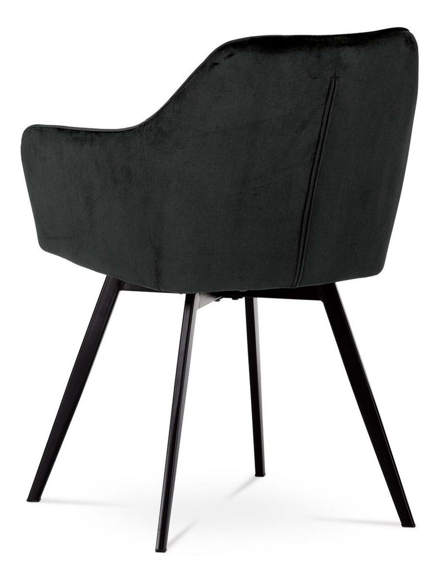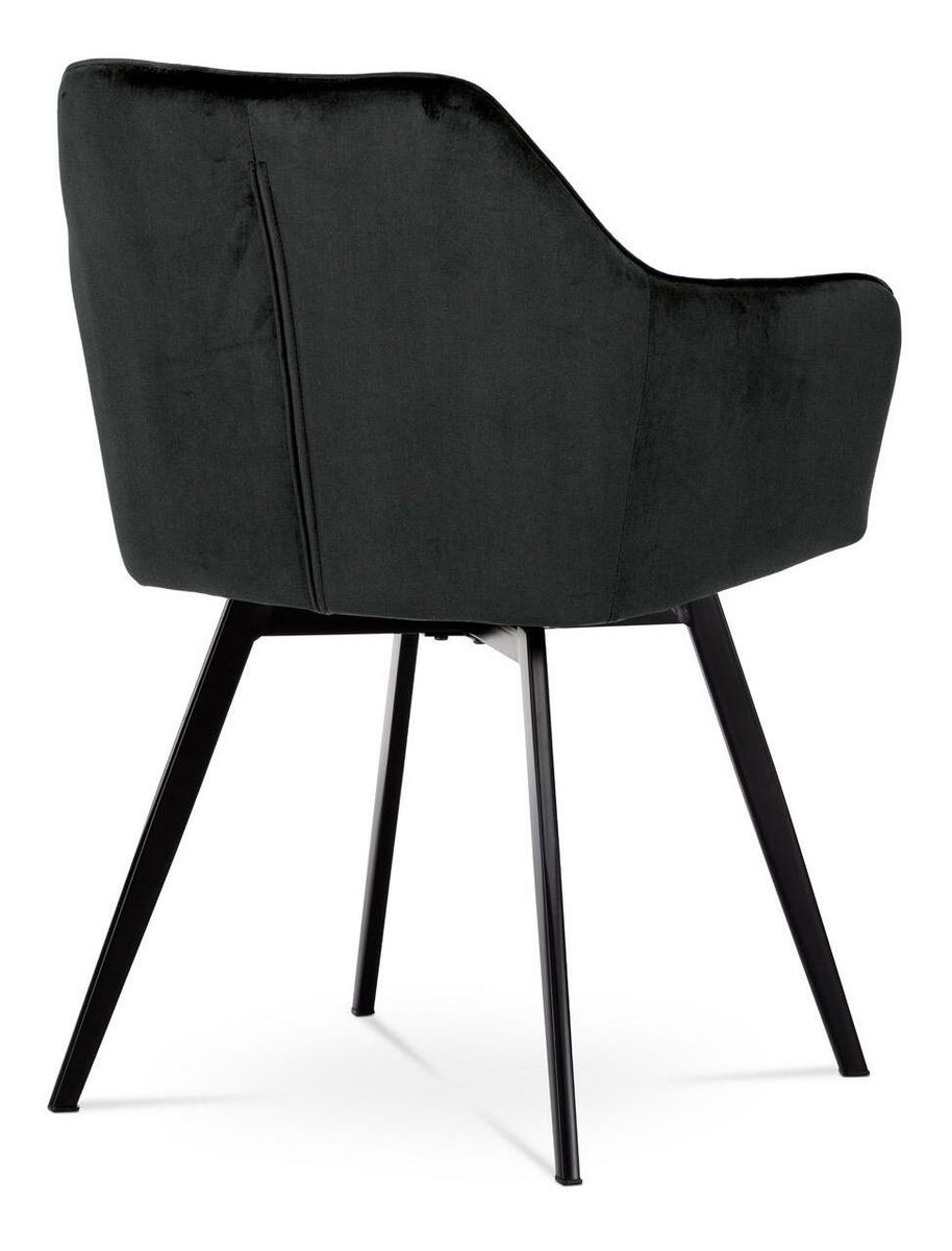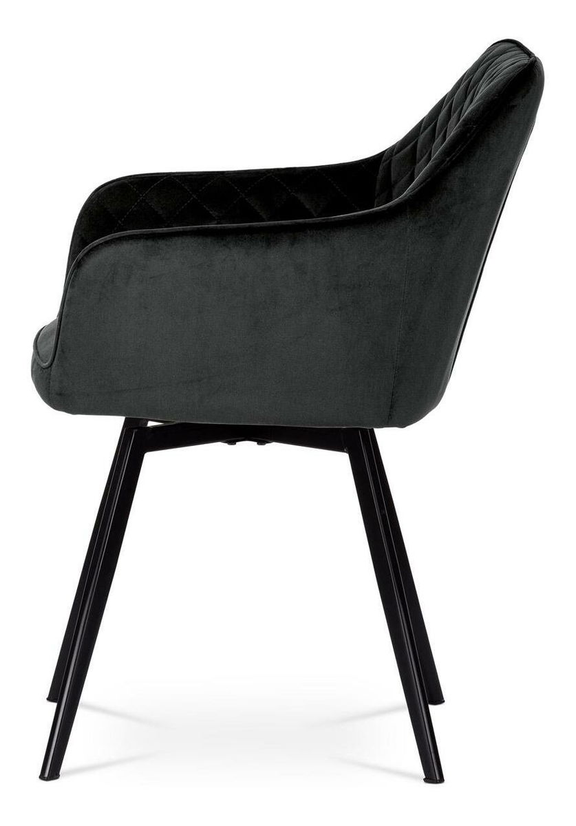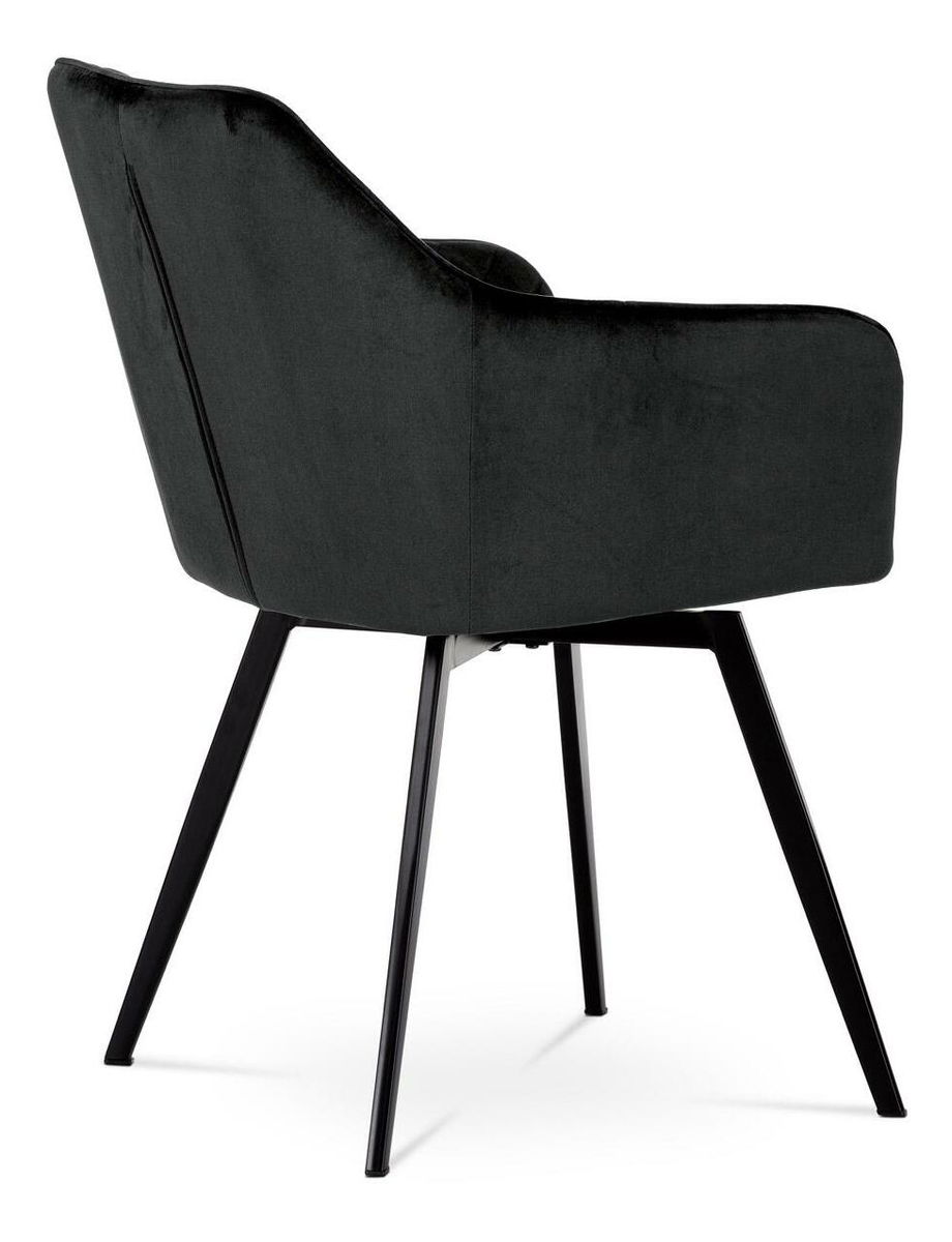 Díky svému dokonalému designu je tato židle v industriálním stylu nezaměnitelná a zároveň velmi pohodlná. Skořepina sedáku a opěradla má potah z kvalitní látky ve vesmírně černém matném sametu. Polstrování je z PU pěny. Velmi dekorativním prvkem je výrazné kosočtverečné prošití vnitřních ploch v barvě potahu a paspule po obvodu celé skořepiny. Vybraná látka se také velmi dobře čistí. Stabilitu židle zajišťují čtyři kónické kovové nohy obdélníkového průřezu s kvalitním práškovým nástřikem v černé matné barvě. Ukončeny jsou černými plastovými kluzáky, zabraňující poškození tvrdých povrchů podlah. Tato provedení produkují z tohoto modelu židle skvělou volbu pro zařízení obývacích či jídelních, ale také zasedacích místností. Nosnost židle je 110 kg. Bonusem této židle je otočný a vratný mechanismus, který umožňuje otáčení o 90° doleva ao 90° doprava a zároveň vždy vrátí sedák do původní polohy. Díky němu židle zůstanou vždy srovnány u stolu.