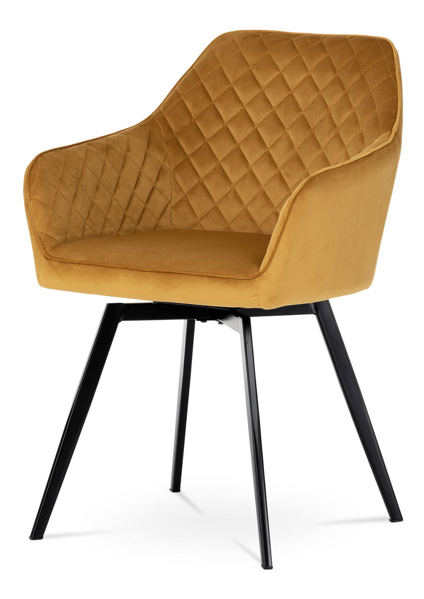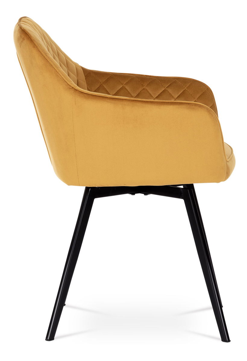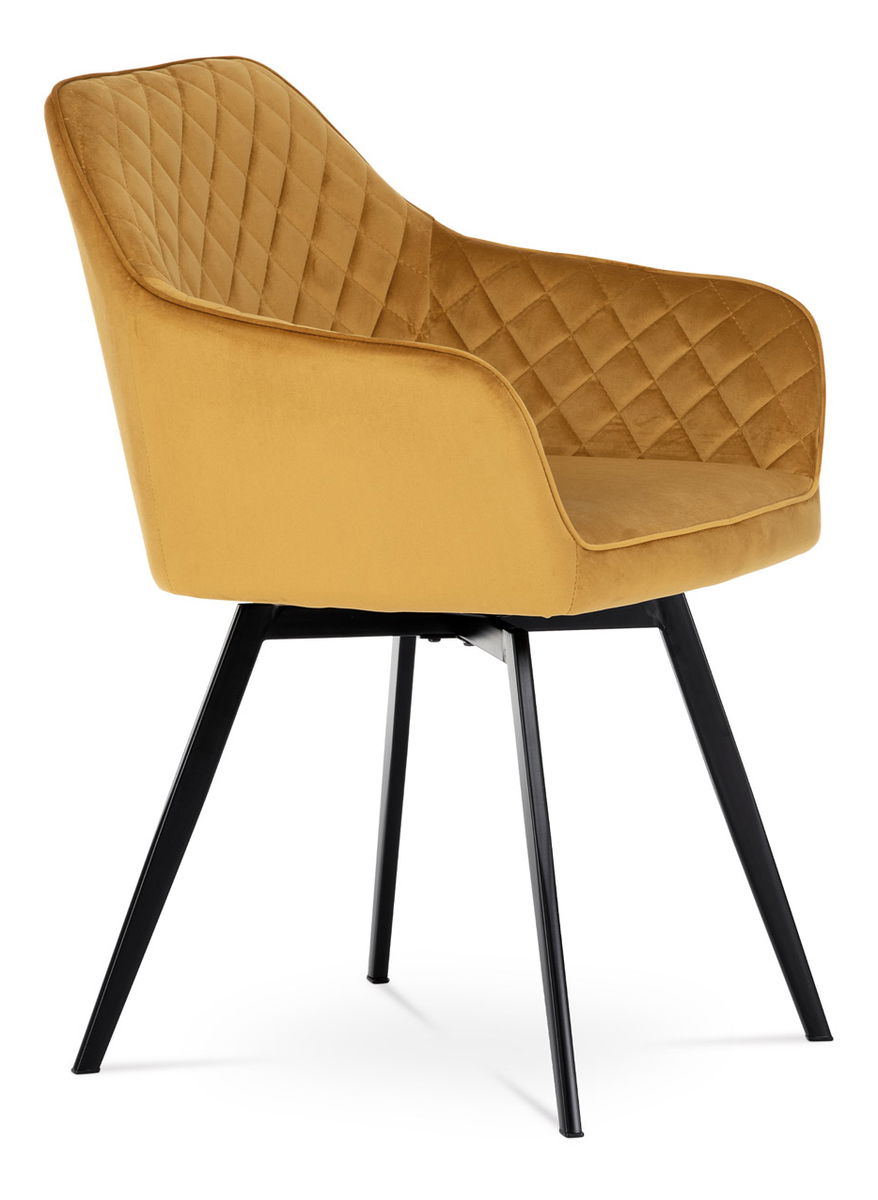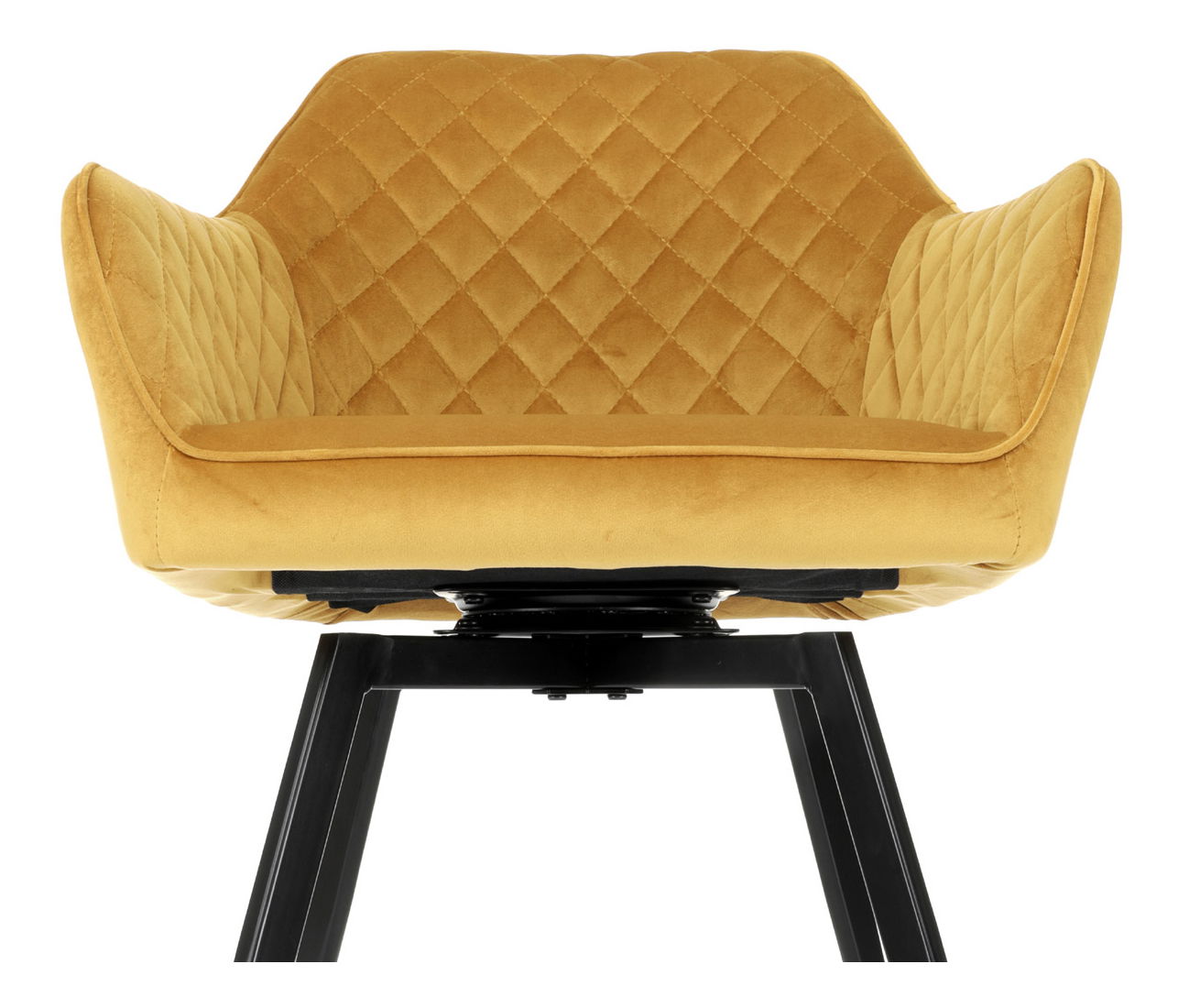 ZobrazitDíky svému dokonalému designu je židle Danarra-425 v industriálním stylu nezaměnitelná a zároveň velmi pohodlná. Sedák a opěrák má potah z kvalitní látky v stylovém hořčicově žlutém matném sametu. Polstrování je vyrobeno z PU pěny. Dekorativním prvkem je výrazné kosočtvercové prošití vnitřních ploch v barvě potahu. Látku lze jednoduše čistit. Stabilitu židle zajišťují čtyři kónické kovové nohy obdélníkového průřezu s kvalitním práškovým nástřikem v černé matné barvě. Nohy jsou ukončené černými plastovými kluzáky, zabraňující poškození tvrdých povrchů podlah. Tato provedení produkují z tohoto modelu židle skvělou volbu pro zařízení obývacích či jídelních, ale také zasedacích místností. Židle má otočný a vratným mechanismus, který umožňuje otáčení o 90° doleva a o 90° doprava a zároveň vždy vrátí sedák do původní polohy. Díky němu žiidle zůstanou vždy srovnané u stolu.