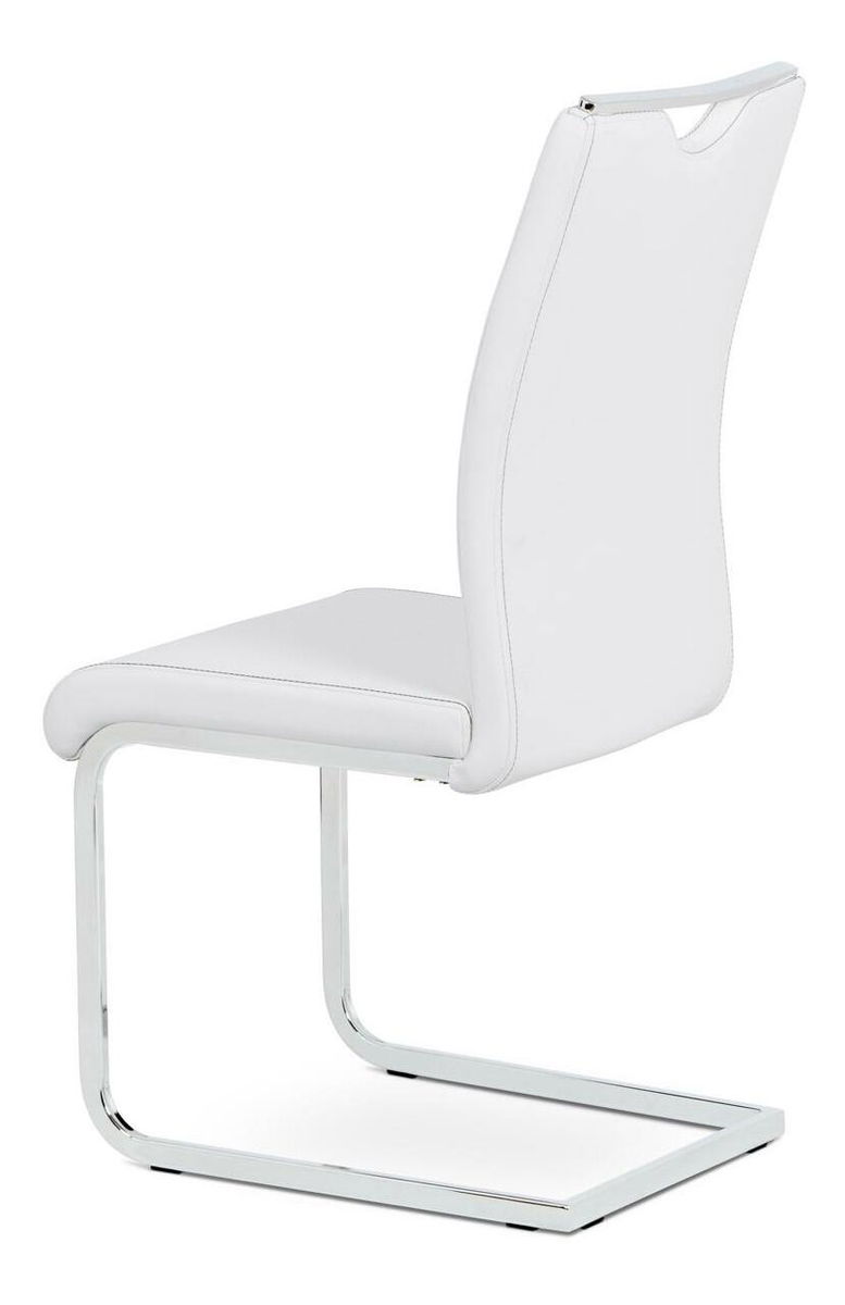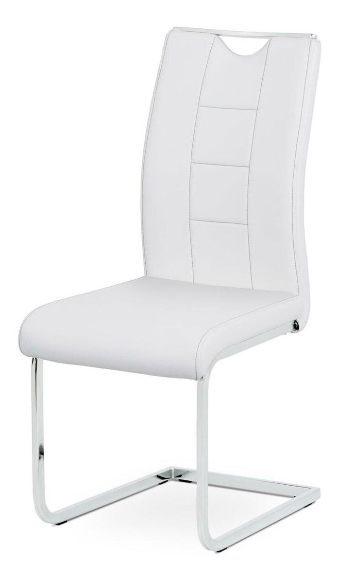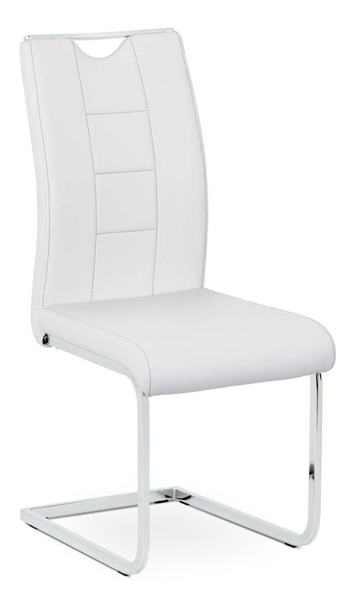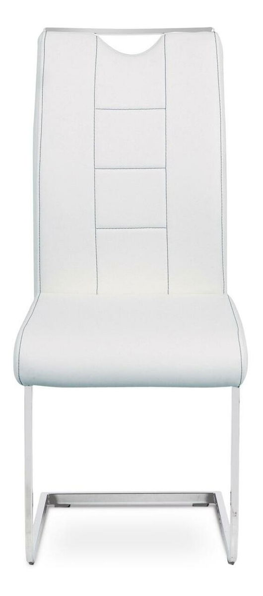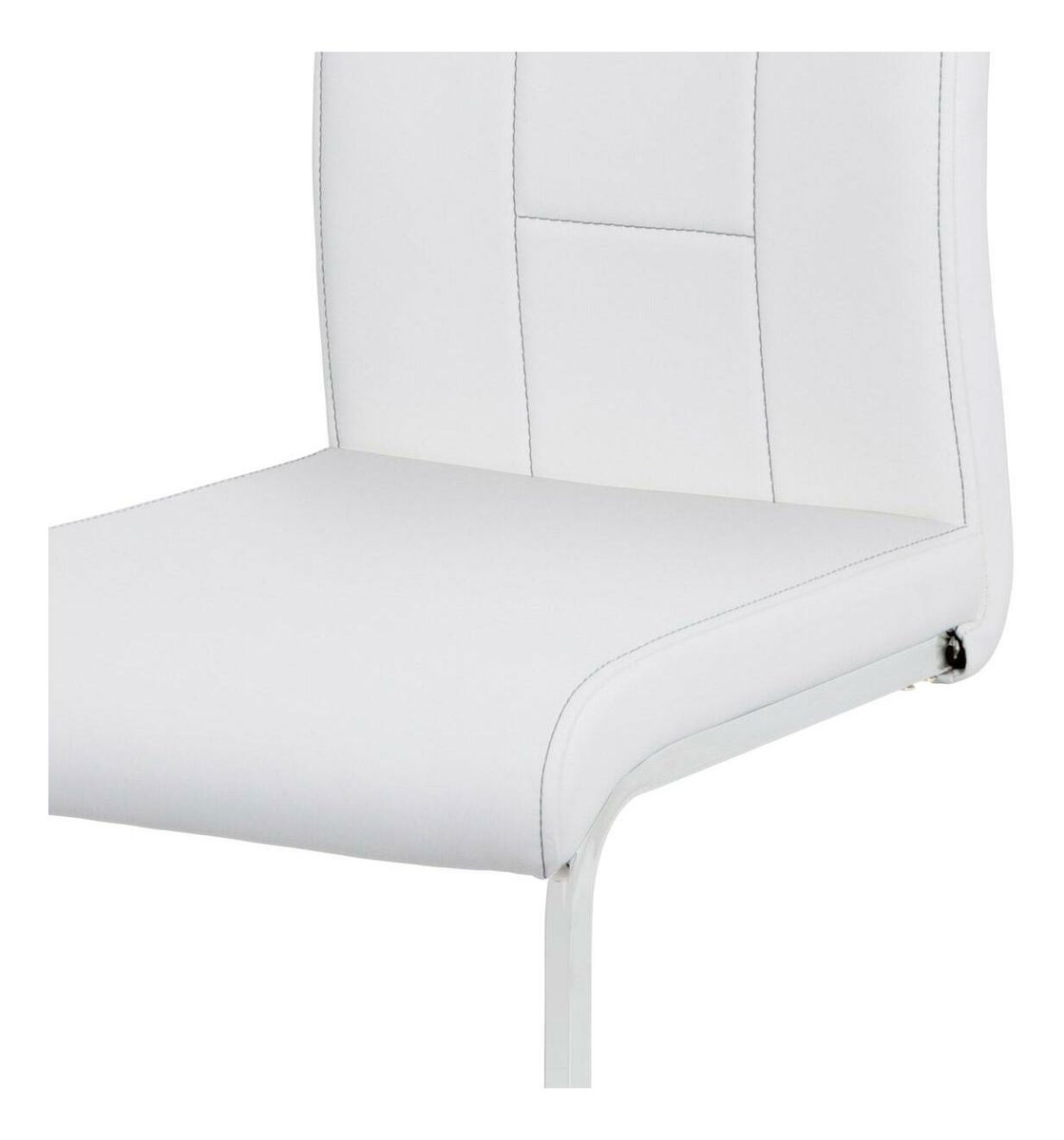Atraktivní židle bude ozdobou každé jídelny či kuchyně. Provedení koženka v bílé barvě s dekorativním prošitím v kombinaci s pochromovaným madlem a podnoží. Praktické madlo zajistí snadnou manipulaci. Nosnost židle je do 110 kg.