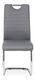 Moderní jídelní židle s dekorativně prošitým opěradlem je očalouněna šedou koženkou. Pochromované madlo a pohupová podnož jsou kruhového průřezu. Díky snadnému prohnutí podnože dochází k posunutí těžiště židle více dozadu, čímž je židle méně náchylná k překlopení dopředu. Lehké prohnutí také plní estetickou funkci, neboť se jedná o design vskutku méně tradiční. Díky praktickému madlu je manipulace se židlí snadná, stejně jako údržba je bezproblémovou záležitostí. Nosnost do 110 kg.