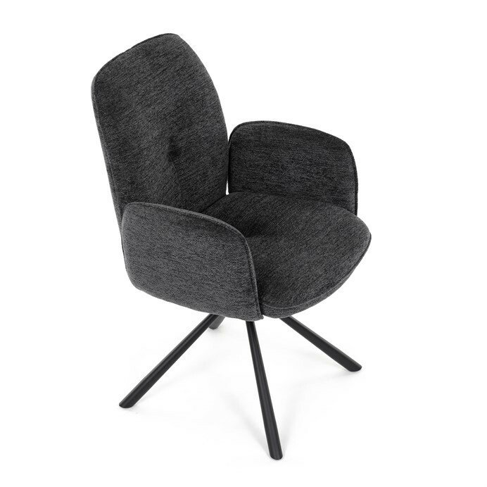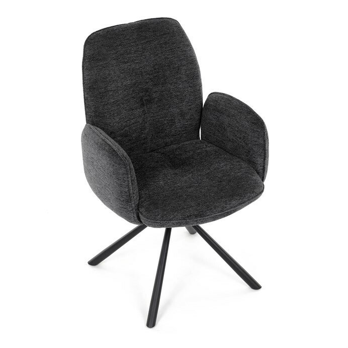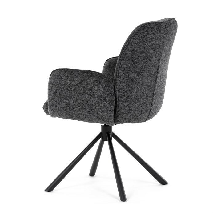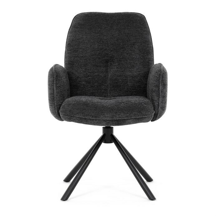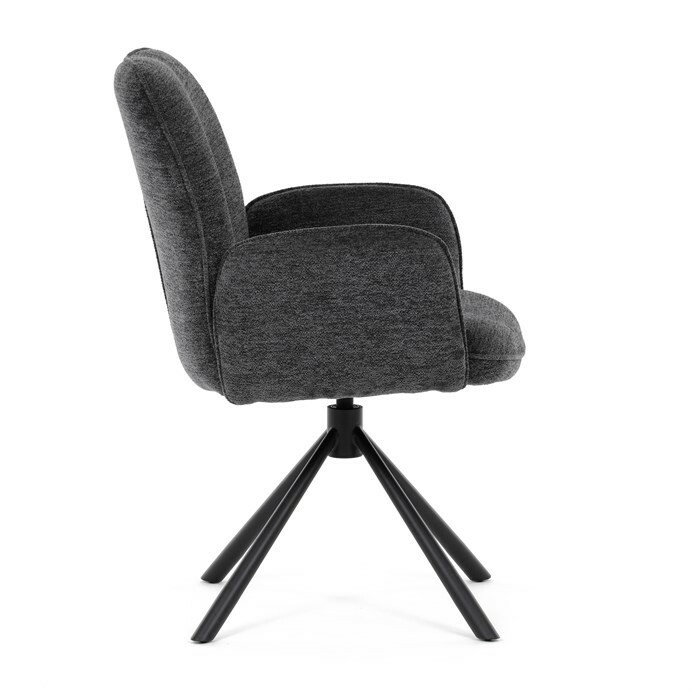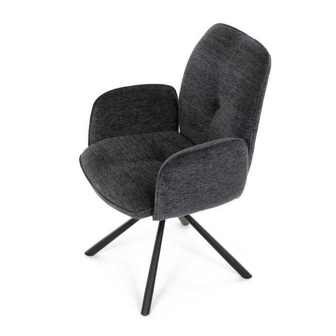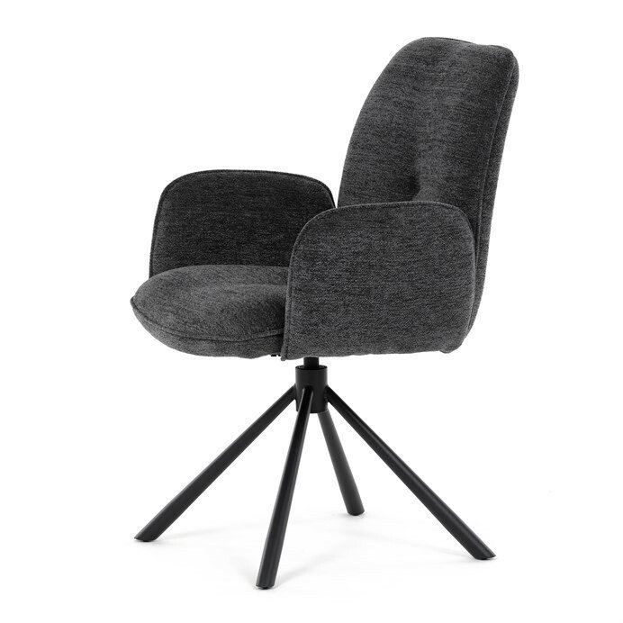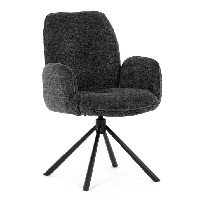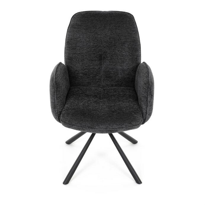 Elegantní jídelní židle v industriálním stylu přináší maximální pohodlí a moderní design. Čalounění z hladké látky v antracitovém odstínu je nejen stylové, ale také příjemné na dotek. Stabilní kovová podnož v černé barvě dodává židli pevnost a odolnost. Díky otočnému 360° mechanismu nabízí vysokou flexibilitu a komfort při sezení. Pohodlné područky a ergonomicky tvarovaný sedák z PU pěny zajišťují optimální oporu těla. Perfektní volba pro stylové a funkční jídelní prostory.