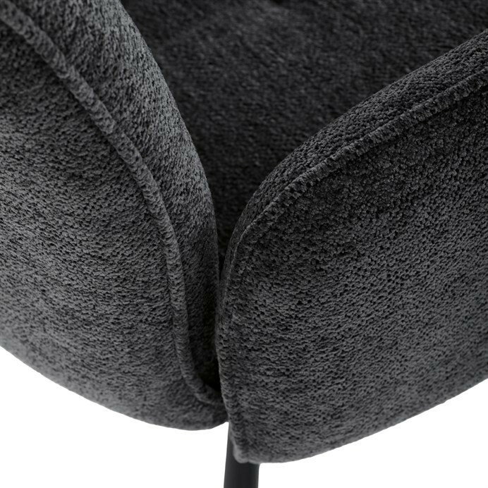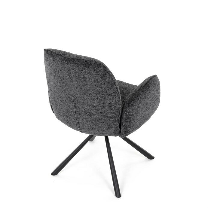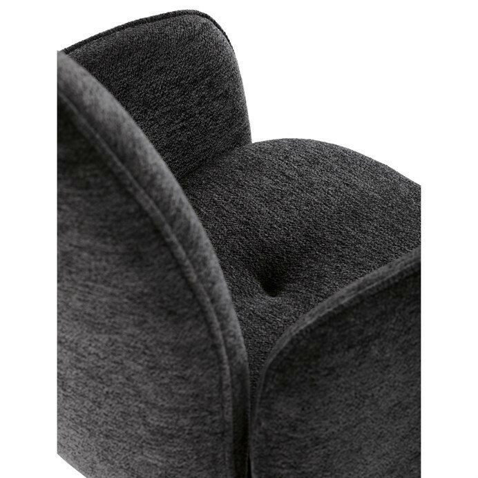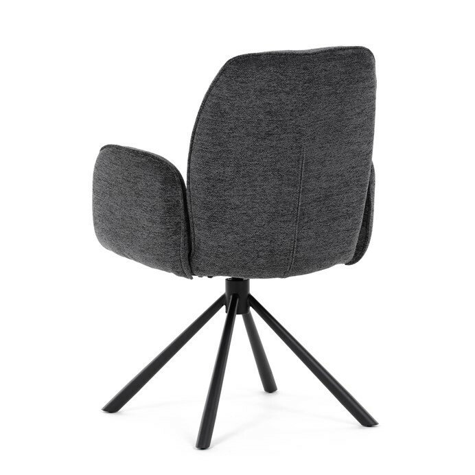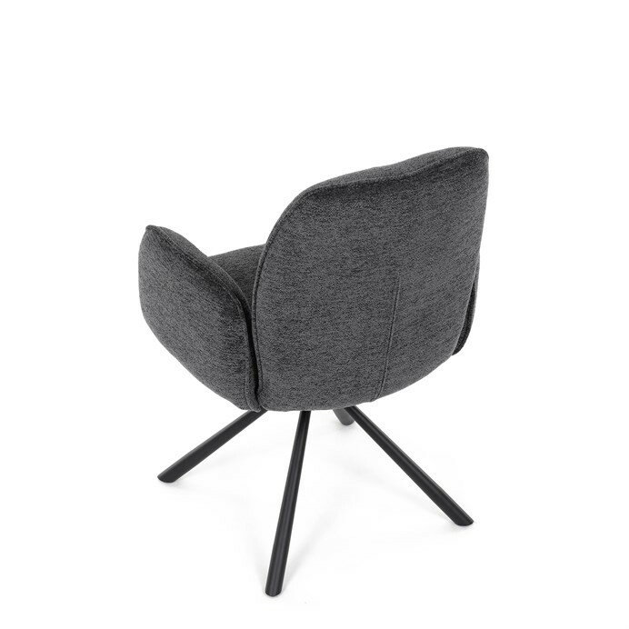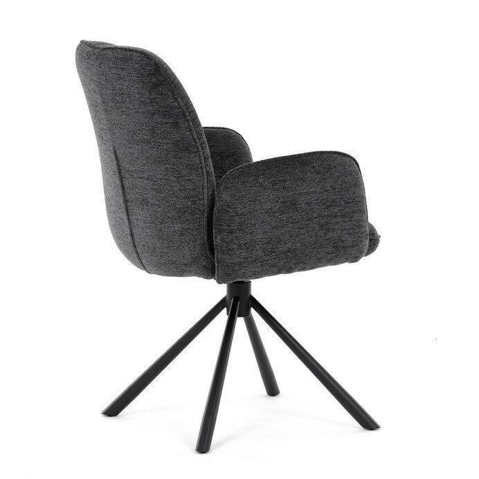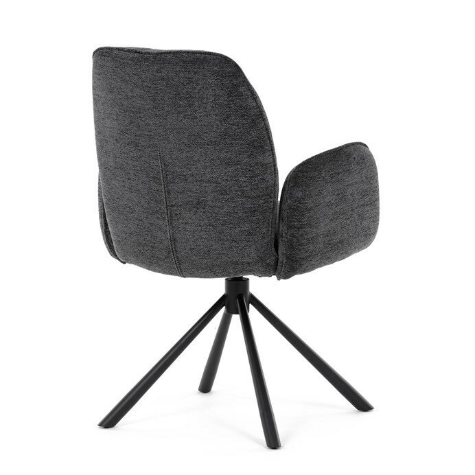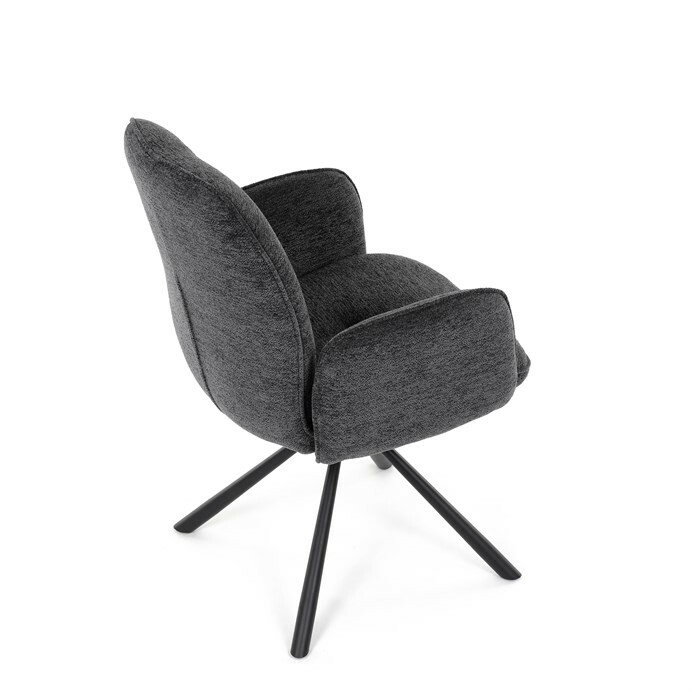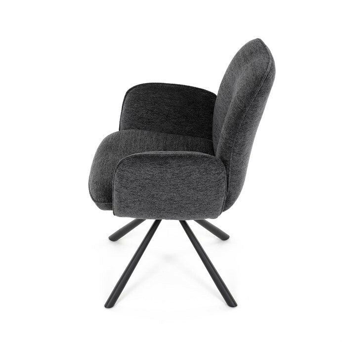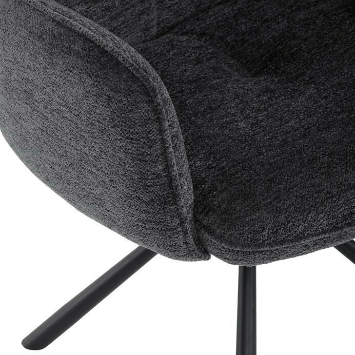 Elegantní jídelní židle v industriálním stylu přináší maximální pohodlí a moderní design. Čalounění z hladké látky v antracitovém odstínu je nejen stylové, ale také příjemné na dotek. Stabilní kovová podnož v černé barvě dodává židli pevnost a odolnost. Díky otočnému 360° mechanismu nabízí vysokou flexibilitu a komfort při sezení. Pohodlné područky a ergonomicky tvarovaný sedák z PU pěny zajišťují optimální oporu těla. Perfektní volba pro stylové a funkční jídelní prostory.