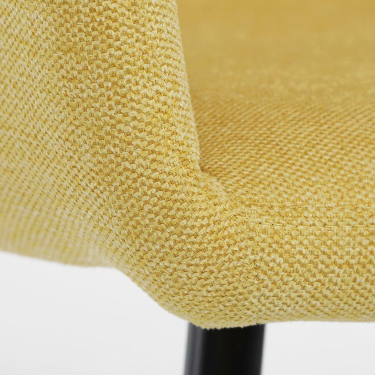 ZobrazitTato židle spojuje pohodlí s industriálním šikem a je výrazným doplňkem každé kanceláře nebo jídelny. Její zářivě žlutá tkanina nejenže dodává šmrnc barvě, ale je také navržena s jemnou tlustou strukturou, která nabízí zajímavý hmatový zážitek. Ve spojení s ozdobným prošitím opěradla povyšuje tento prvek židli z obyčejné funkčnosti na výrazný kousek, který je ukázkou pečlivého přístupu k detailu. Robustní kovové nohy, dokončené v elegantní černé barvě, doplňují industriální styl židle a zároveň zajišťují stabilitu a odolnost. Tento základ podpírá elegantně navržené područky židle, které poskytují větší pohodlí při dlouhém sezení, ať už při intenzivní práci nebo při klidném stolování. Základna se čtyřmi nohama zaručuje bezpečné sezení a je vhodná téměř ke každému pracovnímu nebo jídelnímu stolu. Kombinace plyšové látky, promyšlené ergonomie s područkami pro oporu a estetického vzhledu díky dekorativnímu prošívání zve uživatele k posezení, které přesahuje hranice všednosti. Tato židle, vhodná pro náročné podniky i soukromé zákazníky, slibuje, že svojí kombinací stylu a praktičnosti obohatí jakýkoli prostor.