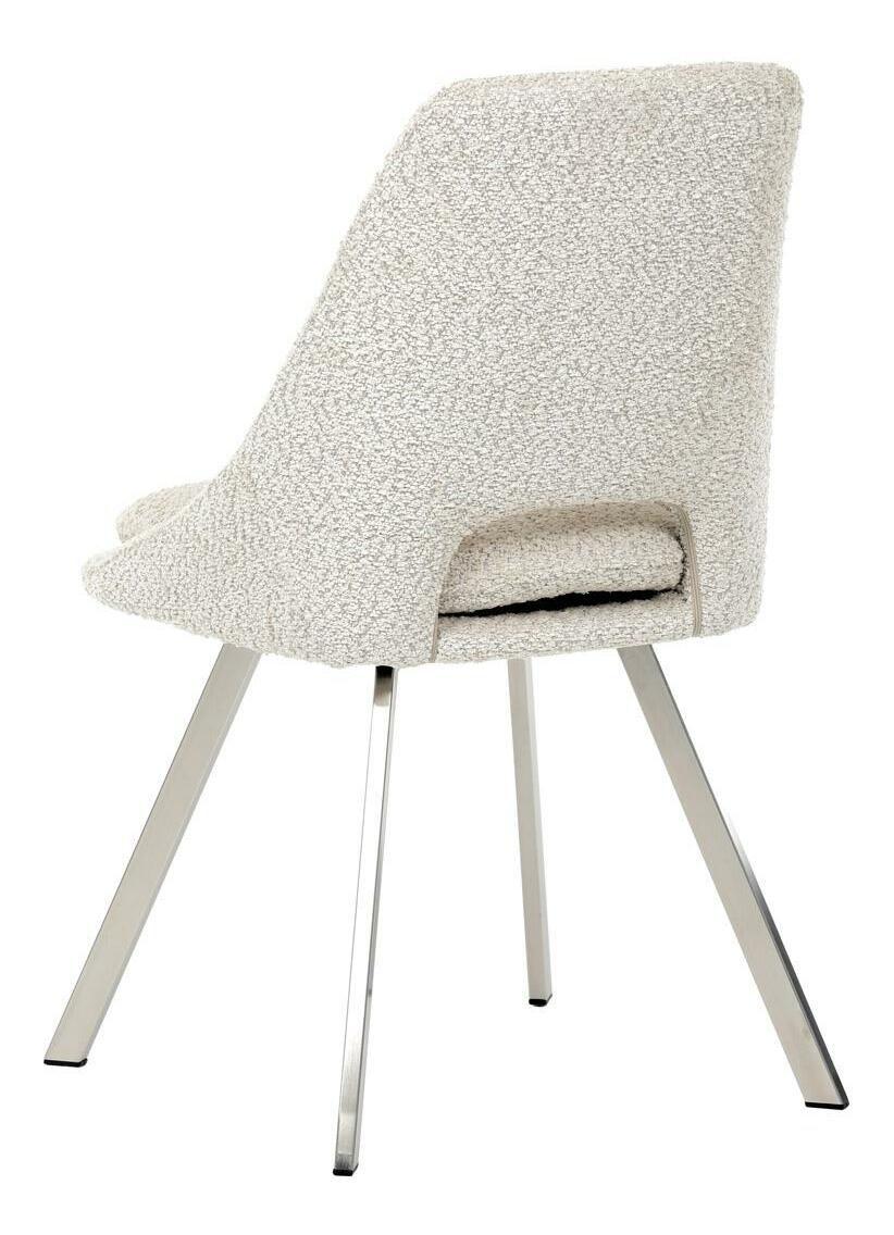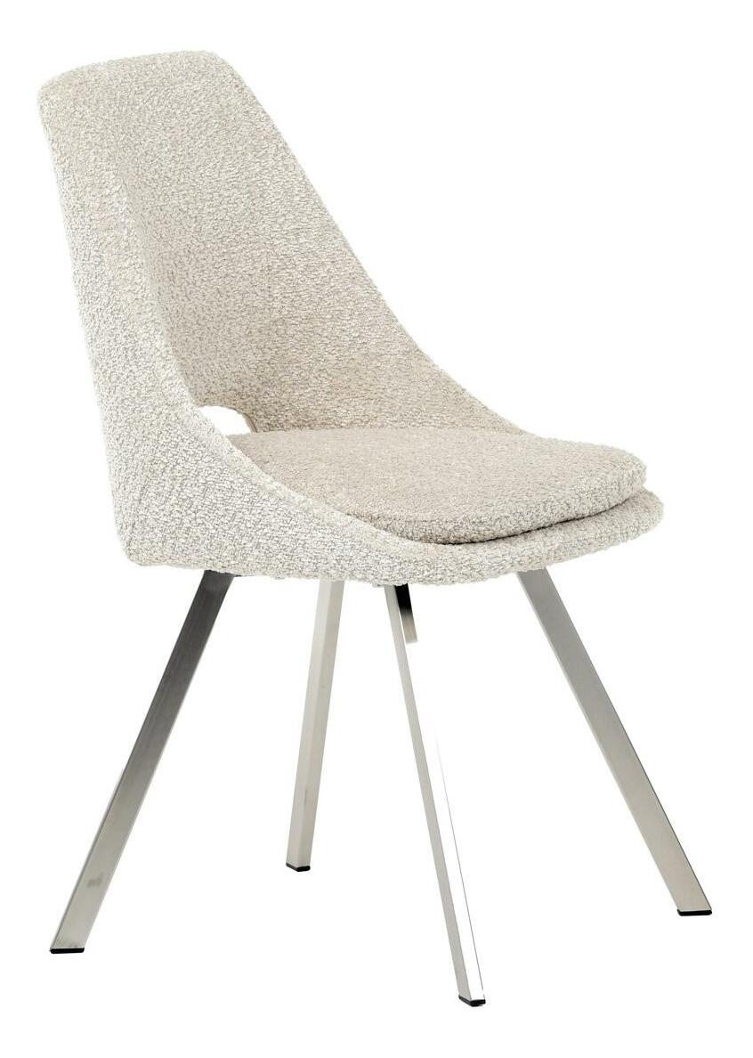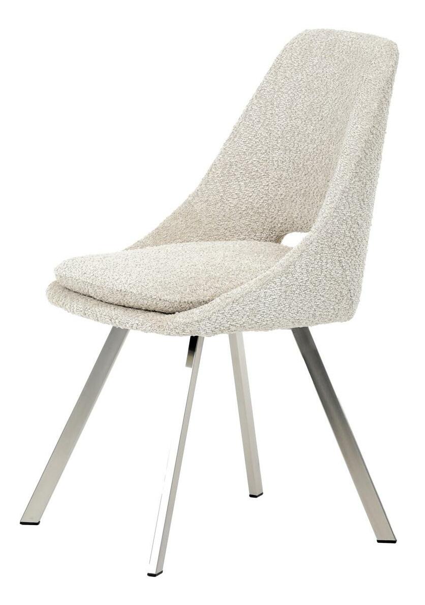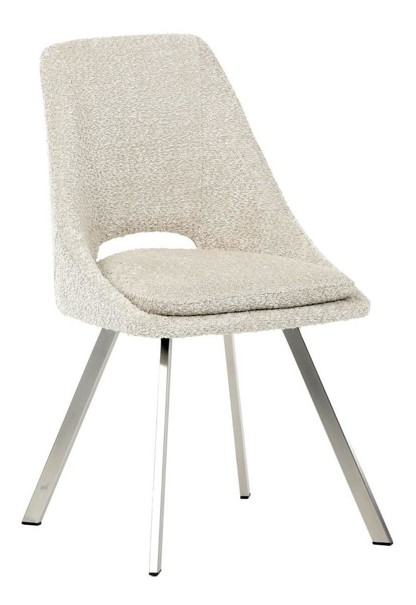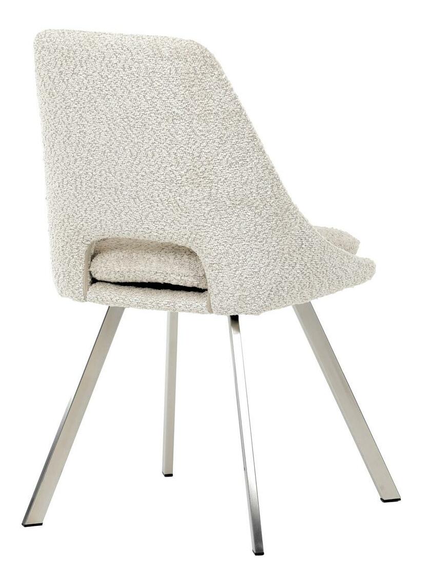 Moderní jídelní židle v elegantním béžovém odstínu kombinuje styl a pohodlí. Potah z měkké látky Bouclé nabízí příjemný a odolný povrch, který se skvěle hodí do moderních interiérů. Čtyři nohy z broušeného nerezu zajišťují stabilitu a moderní vzhled, zatímco výplň z PU pěny poskytuje optimální komfort při sezení. Tato židle je ideální pro jídelny nebo moderní pracovní prostory. Díky svému designu a kvalitním materiálům zajišťuje dlouhou životnost i při každodenním používání. Výrazný kousek, který vynikne v každém interiéru.