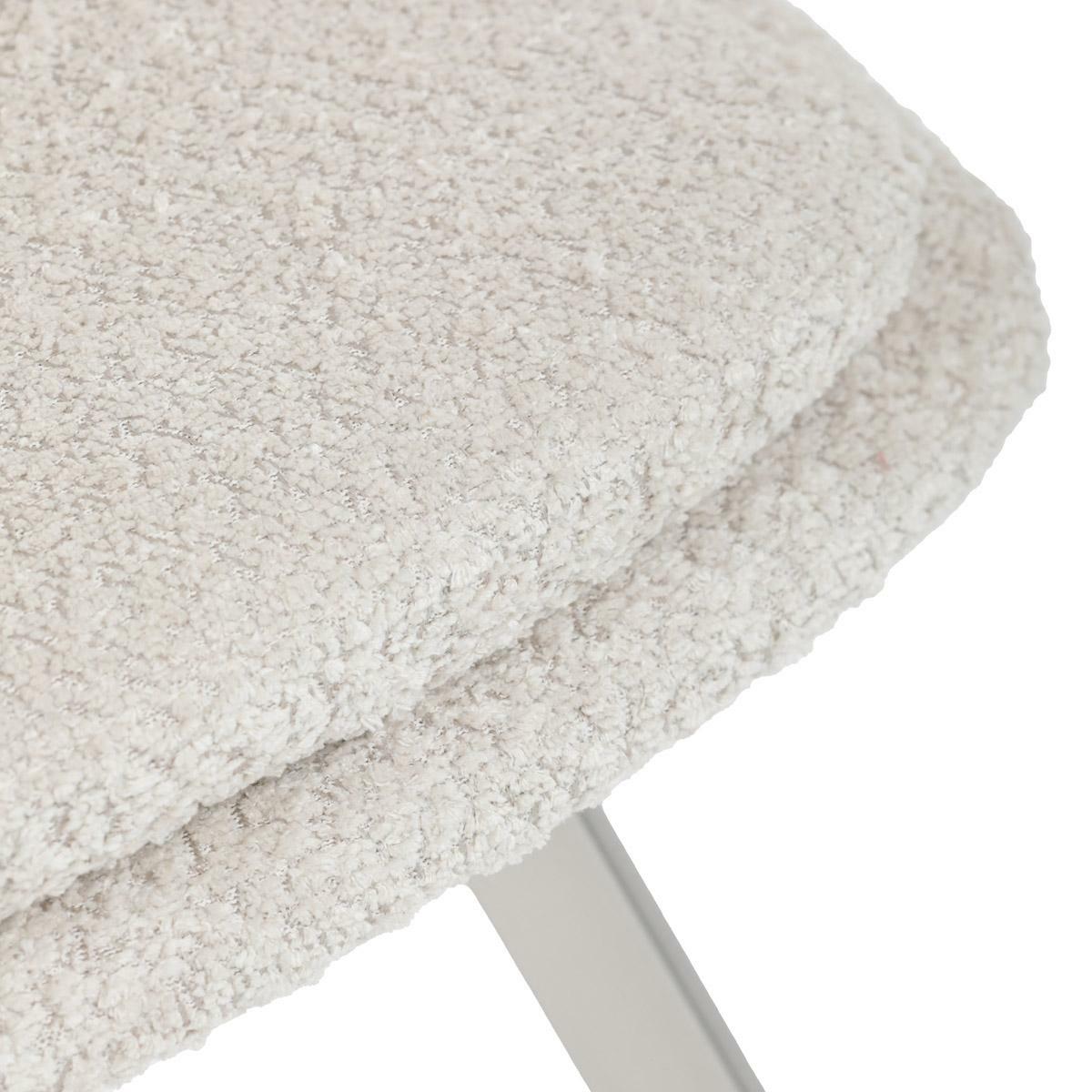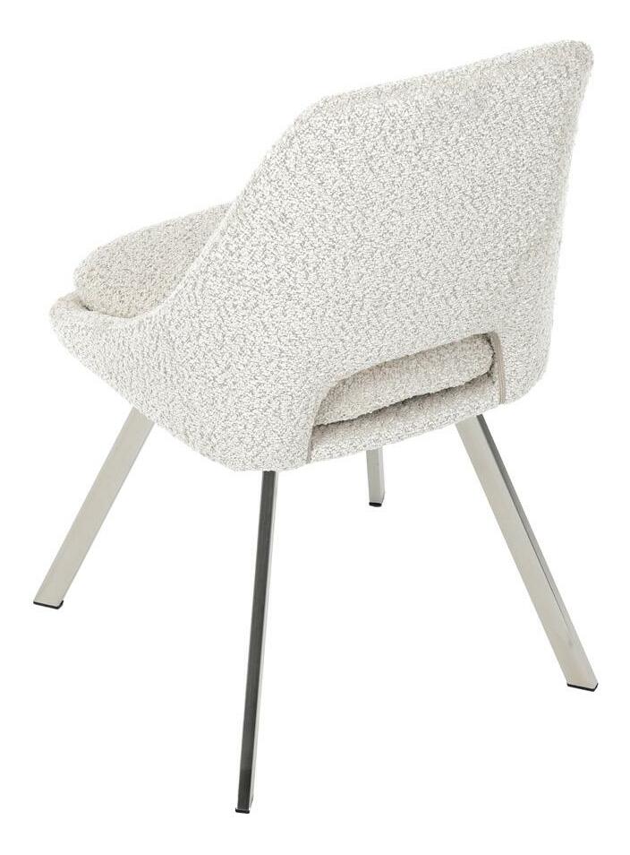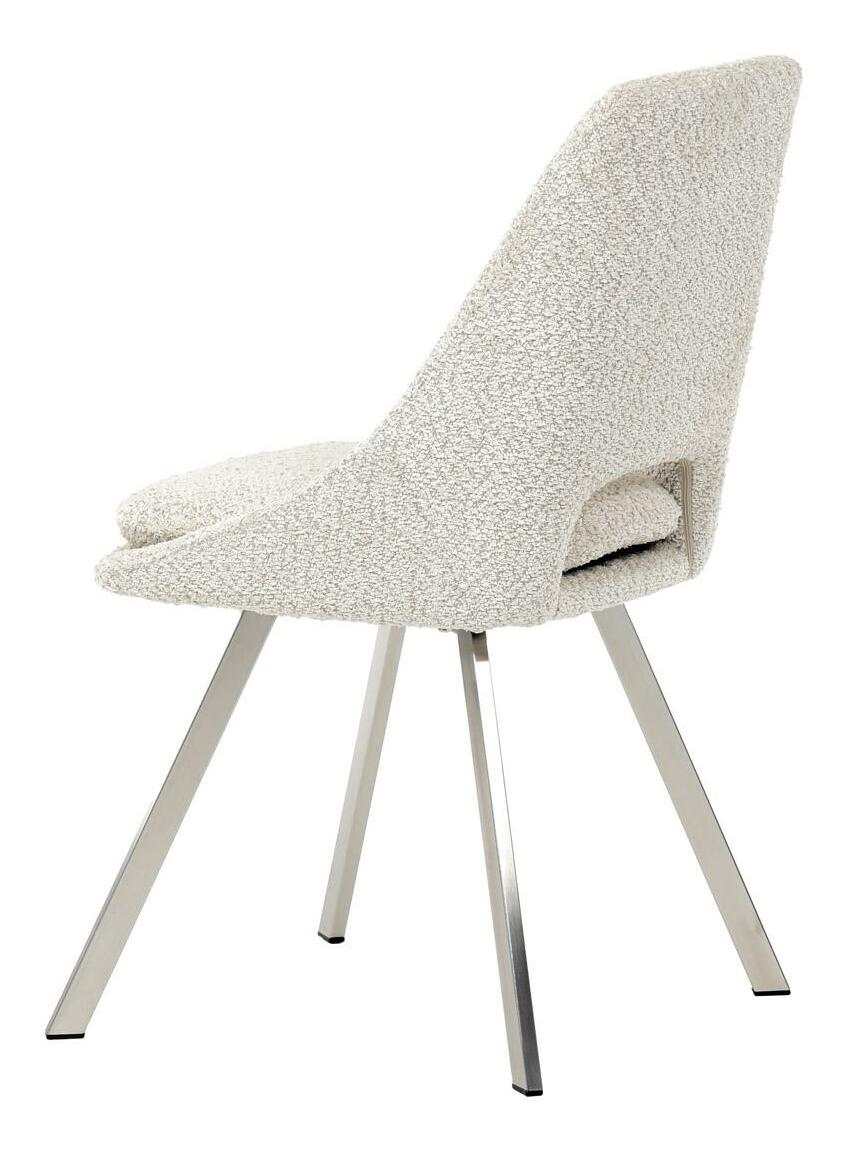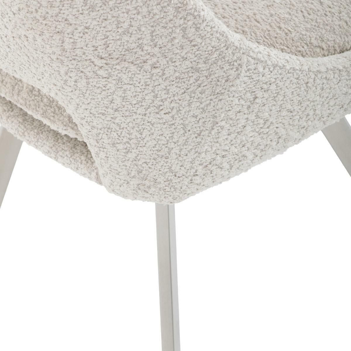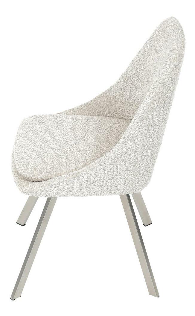 Moderní jídelní židle v elegantním béžovém odstínu kombinuje styl a pohodlí. Potah z měkké látky Bouclé nabízí příjemný a odolný povrch, který se skvěle hodí do moderních interiérů. Čtyři nohy z broušeného nerezu zajišťují stabilitu a moderní vzhled, zatímco výplň z PU pěny poskytuje optimální komfort při sezení. Tato židle je ideální pro jídelny nebo moderní pracovní prostory. Díky svému designu a kvalitním materiálům zajišťuje dlouhou životnost i při každodenním používání. Výrazný kousek, který vynikne v každém interiéru.