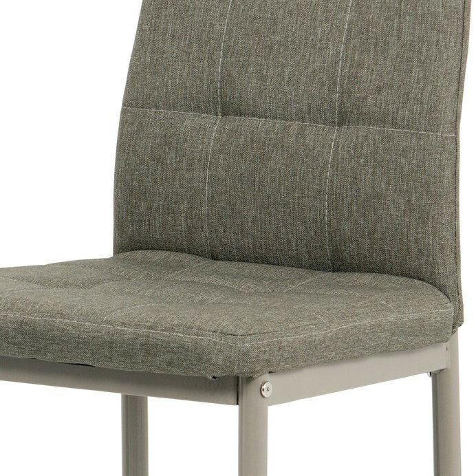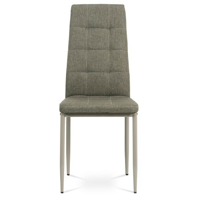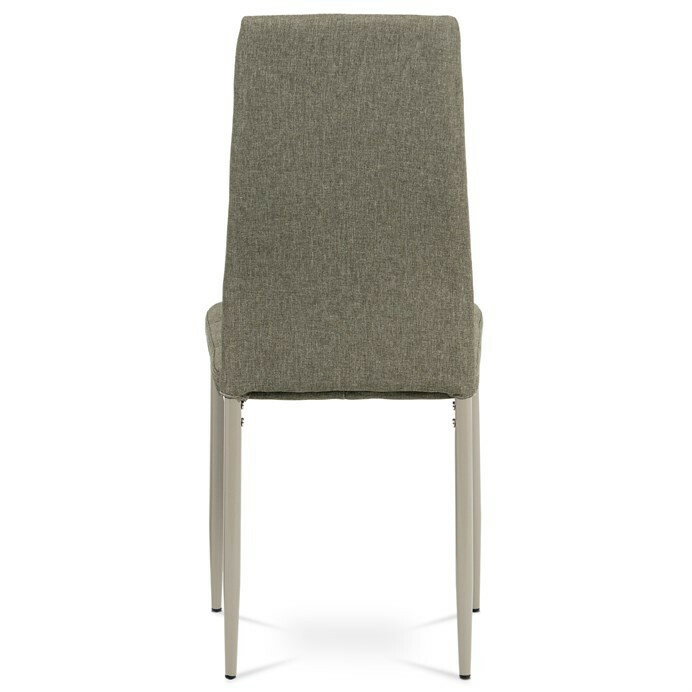 Jídelní židle v industriálním stylu a minimalistickém designu. Je potažena středně hrubou látkou v trendy odstínu dark cappuccino s výrazným čtvercovým prošitím s čalounickými vtahy sedáku i opěradla. Polstrování je z kvalitní PU pěny. Čtyřnohá podnož je kovová, s povrchovou úpravou cappuccino matnou práškovou barvou. Nohy jsou kruhového průřezu a kónické, na koncích jsou opatřeny černými plastovými kluzáky, které minimalizují nebezpečí poškození povrchu podlahy na minimum. Nosnost židle je až 110 kg. Tato židle najde platné využití v prostorách domácí jídelny či kuchyně.