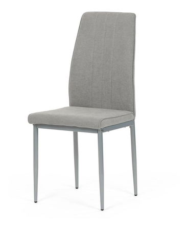 Jídelní židle v industriálním stylu zaujme svým minimalistickým designem a praktickými vlastnostmi. Potah je vyroben z odolné hladké látky v barvě lanýže, který snadno zapadne do různých interiérů. Pohodlí zajišťuje měkká PU pěna ve výplni, zatímco kovové nohy v šedé barvě dodávají stabilitu a pevnost. Elegantní prošívání dodává židli elegantní vzhled. Tento model je skvělou volbou pro moderní i klasické interiéry.